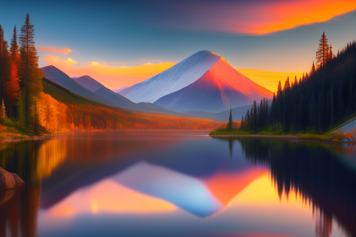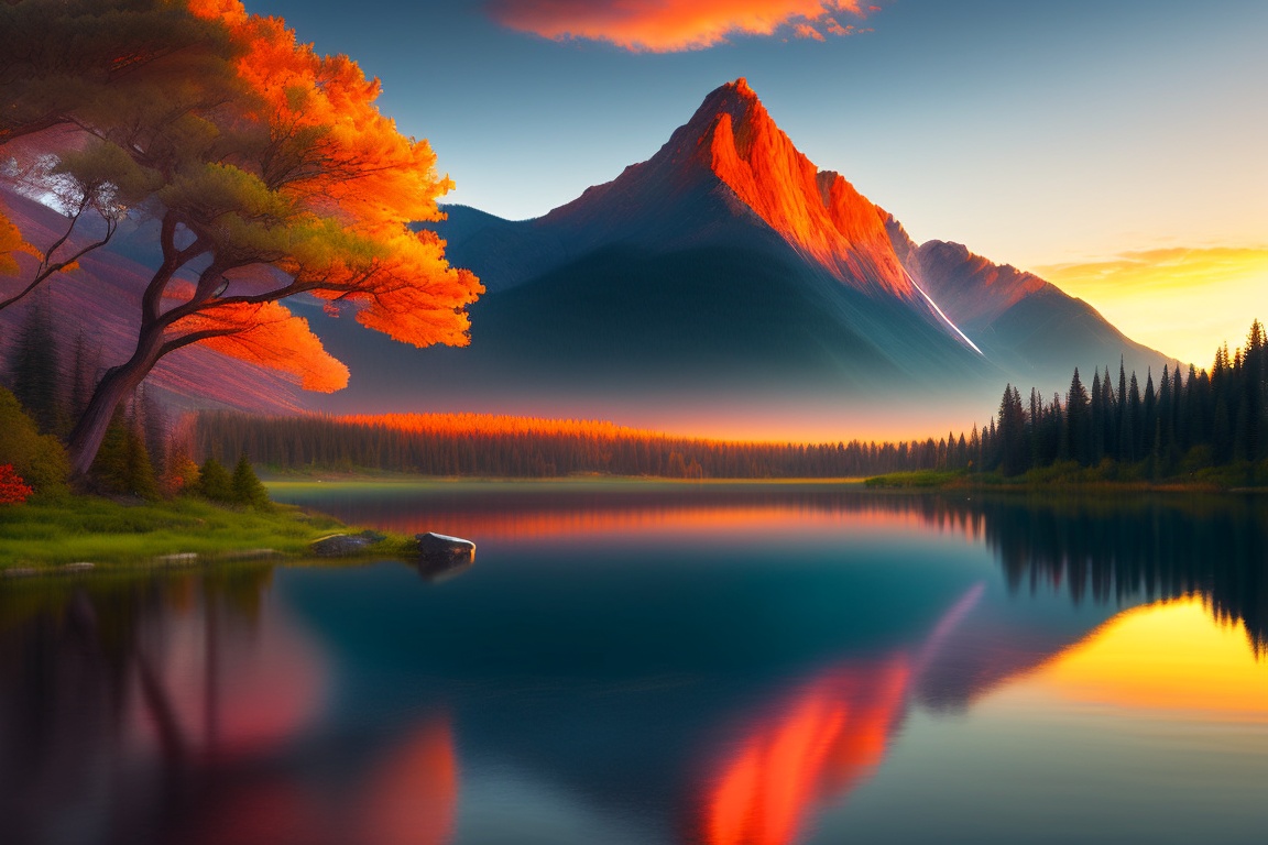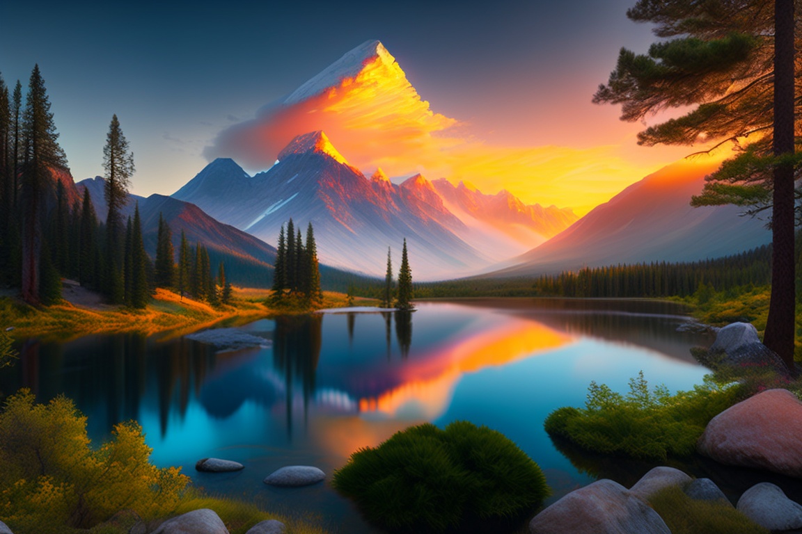 Nature scenes depicting serene landscapes, such as a sunrise over a mountain range or a calm lake surrounded by trees