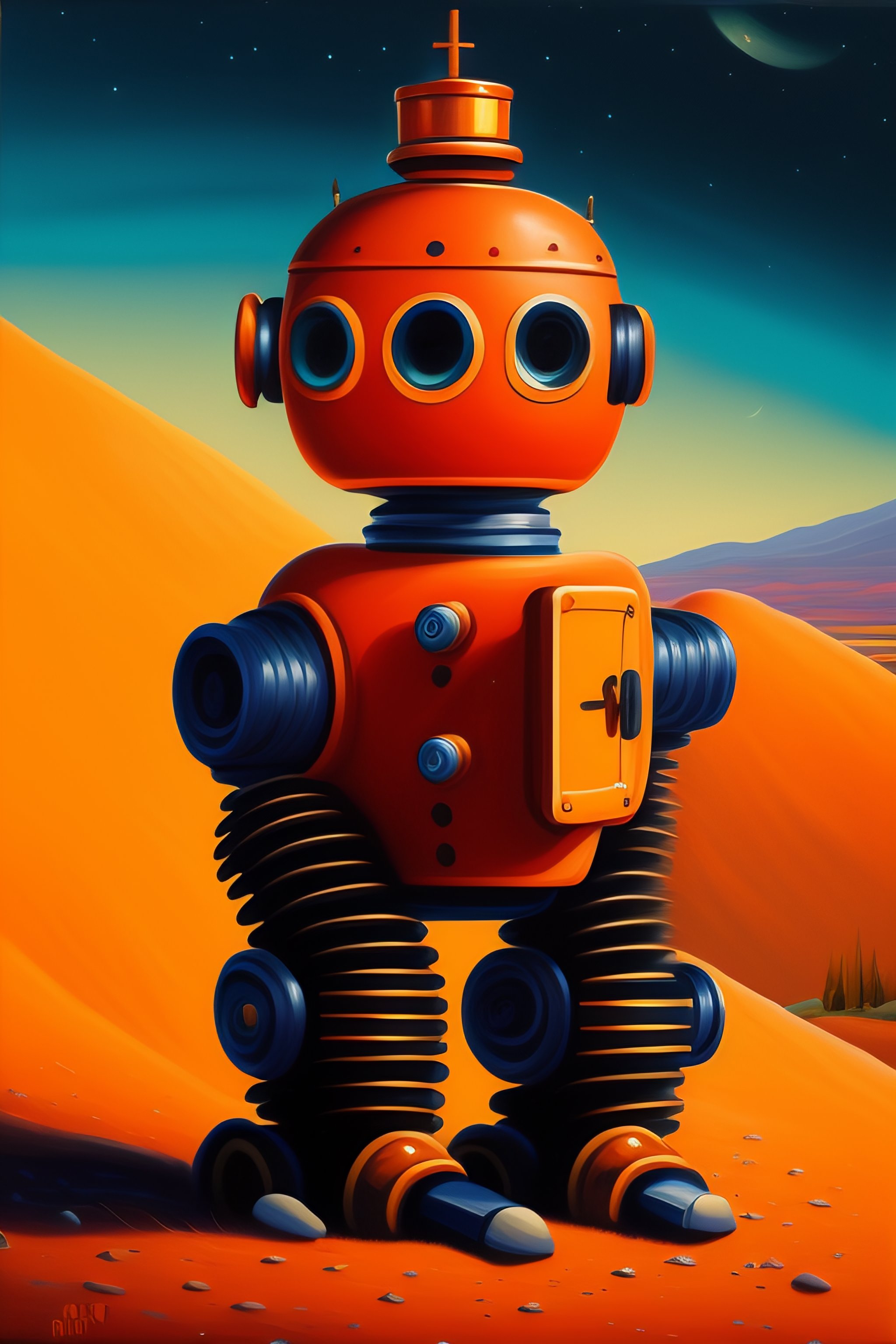 Alone robbot painting night