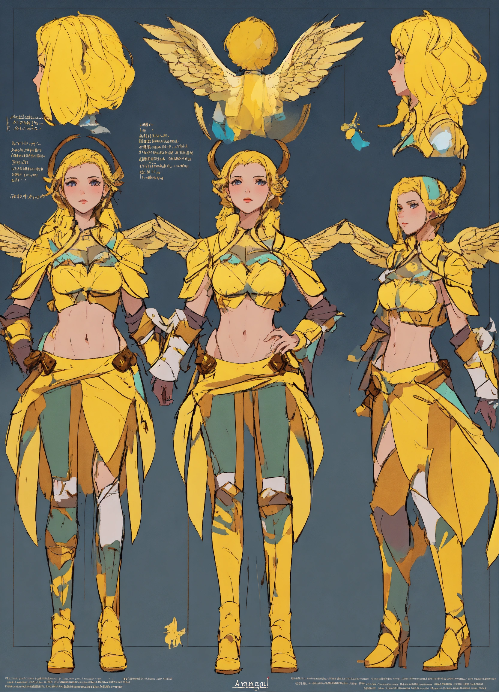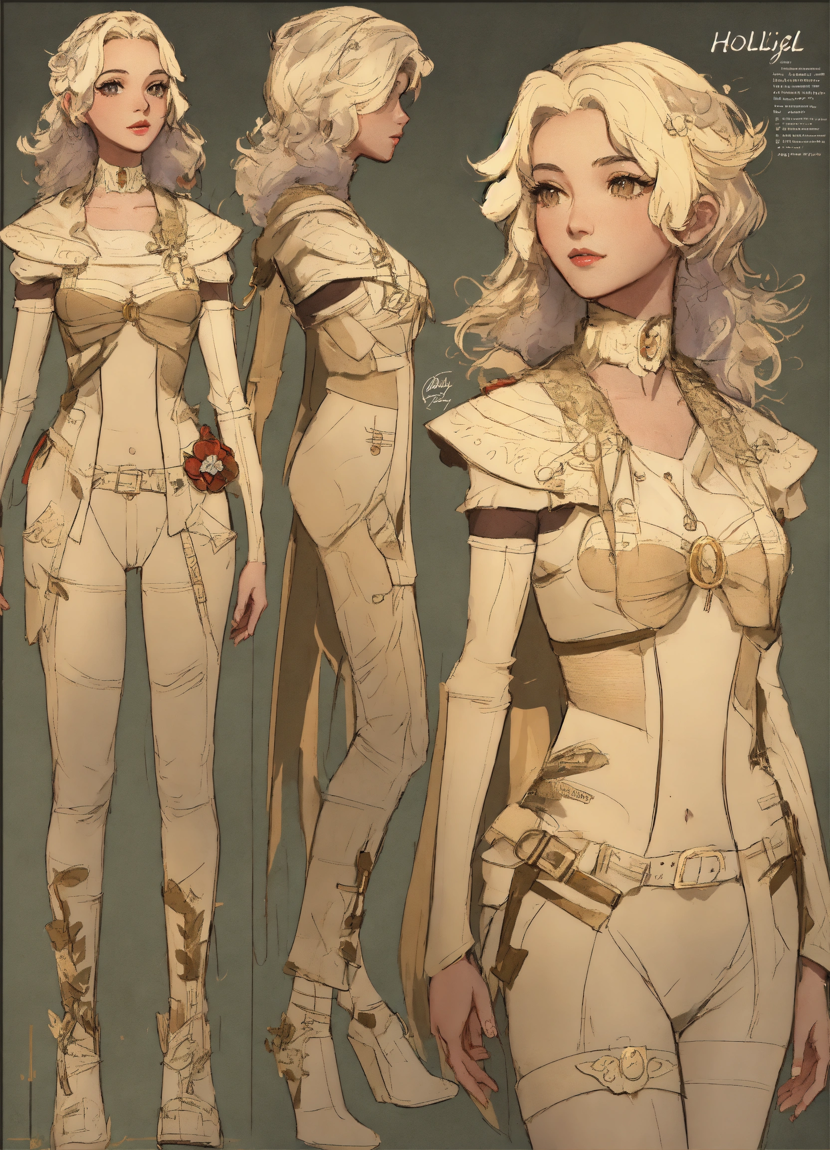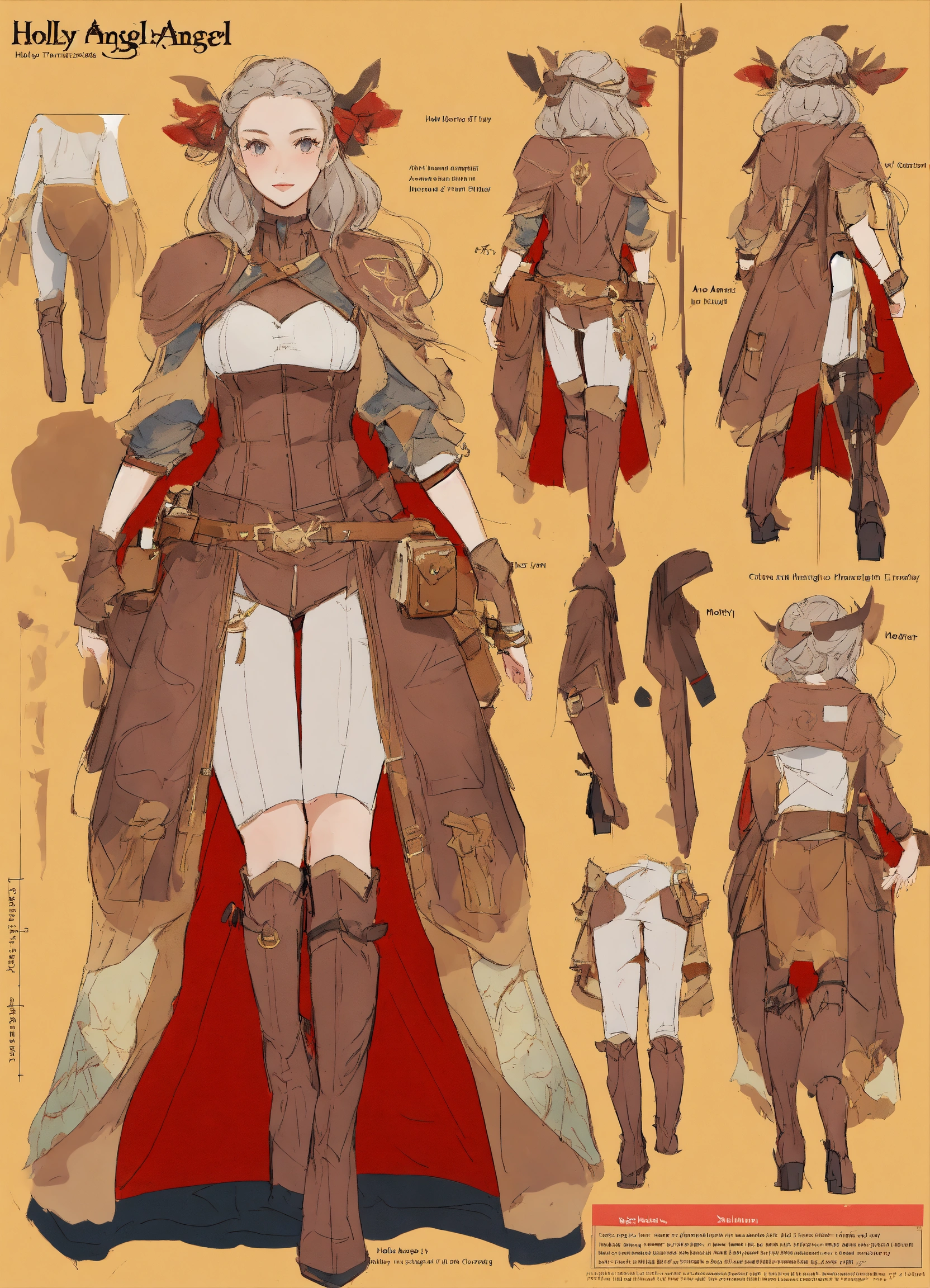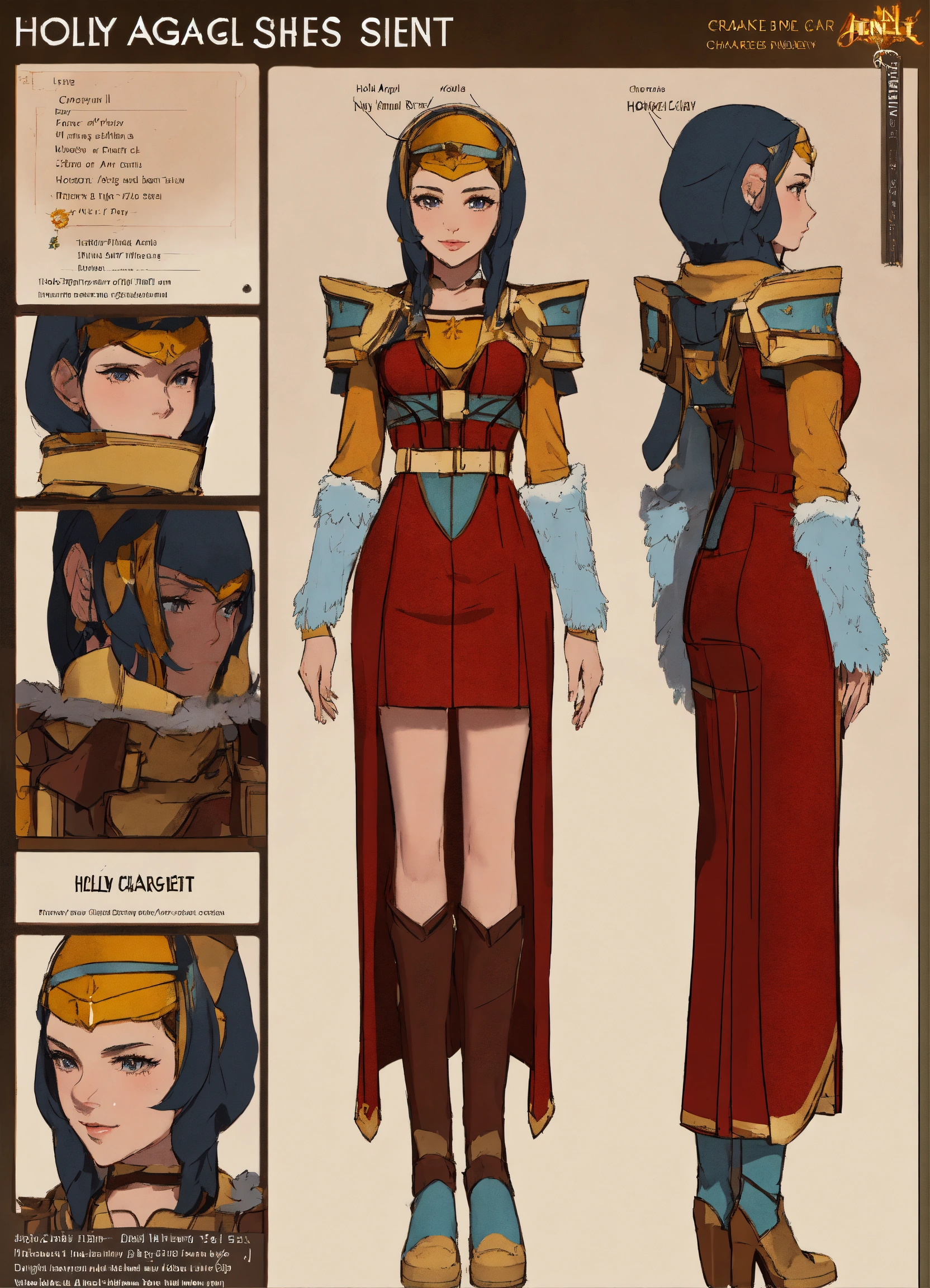 Holly angel, character sheet, character design, chart, reference sheet, multiple views, high detail, fine details, concept art