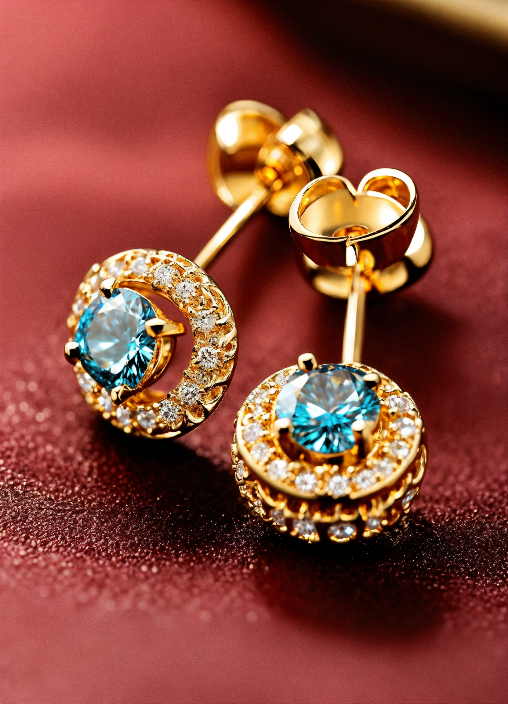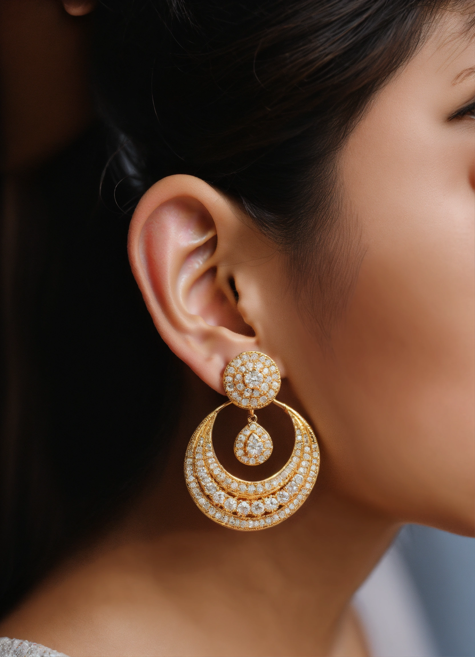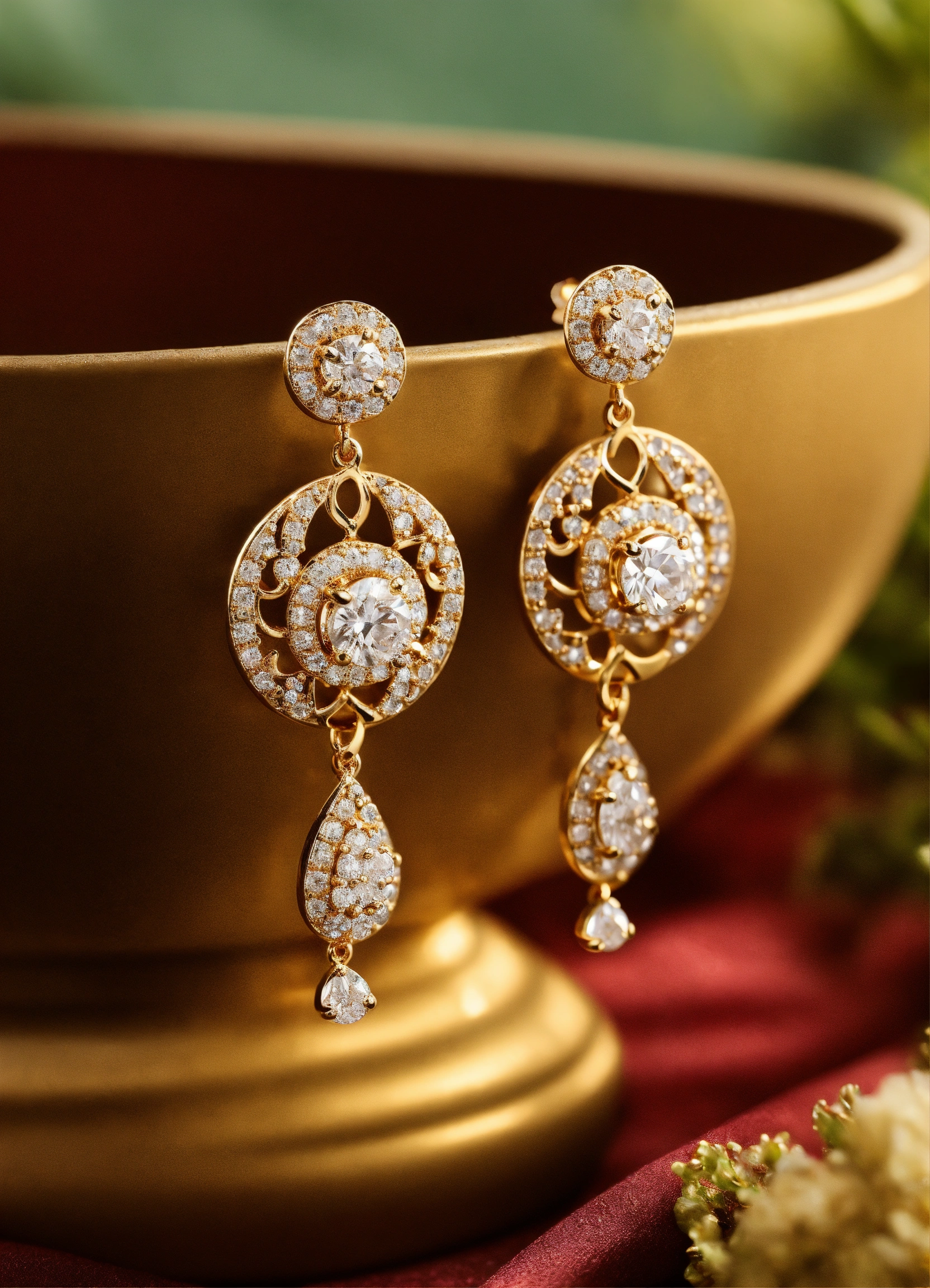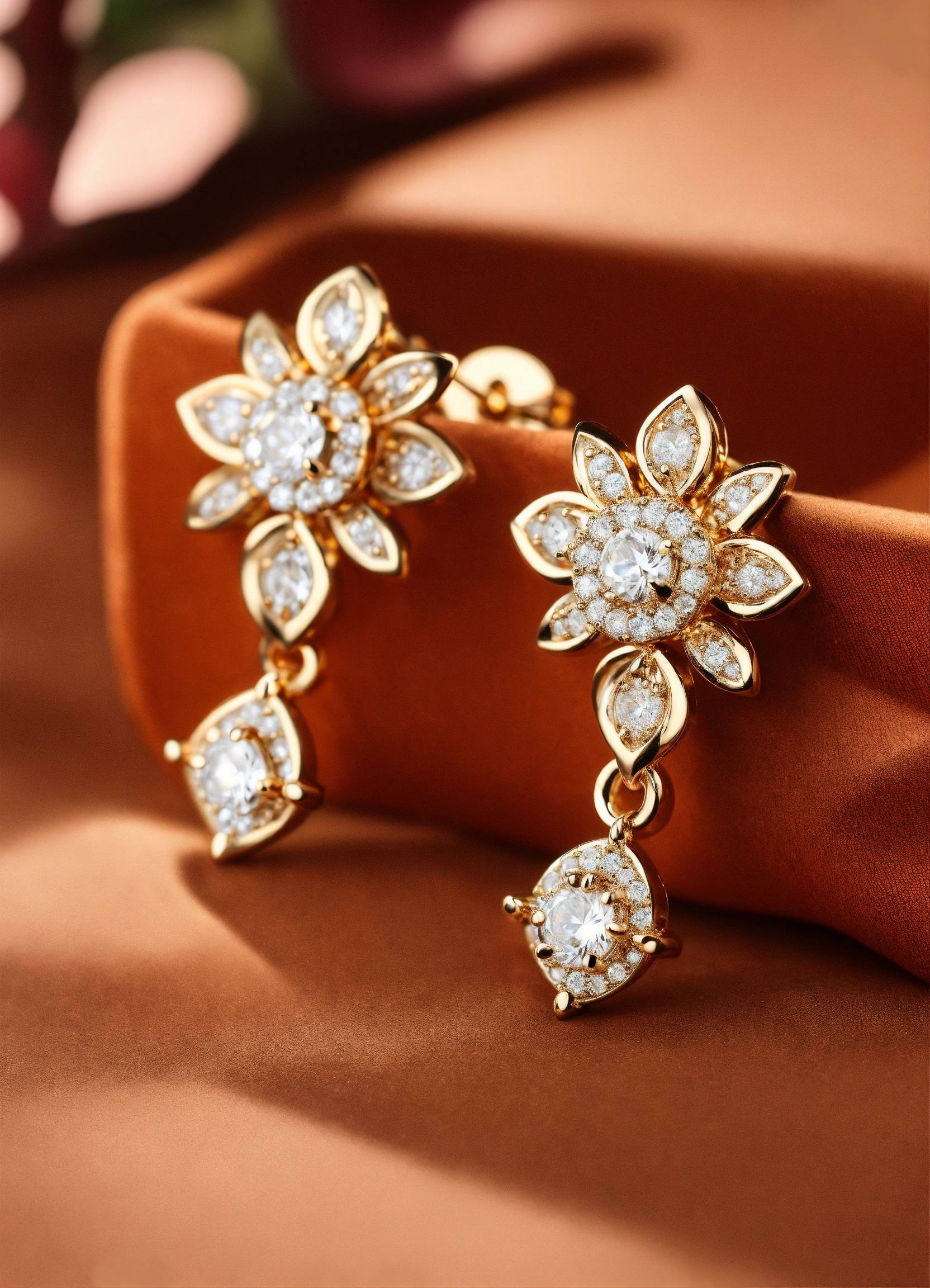 Jewellery design, vintage style, create diamond gold earrings with shiny finish in pave setting, cute, for babies, default-theme, --product-view --ultra-quality