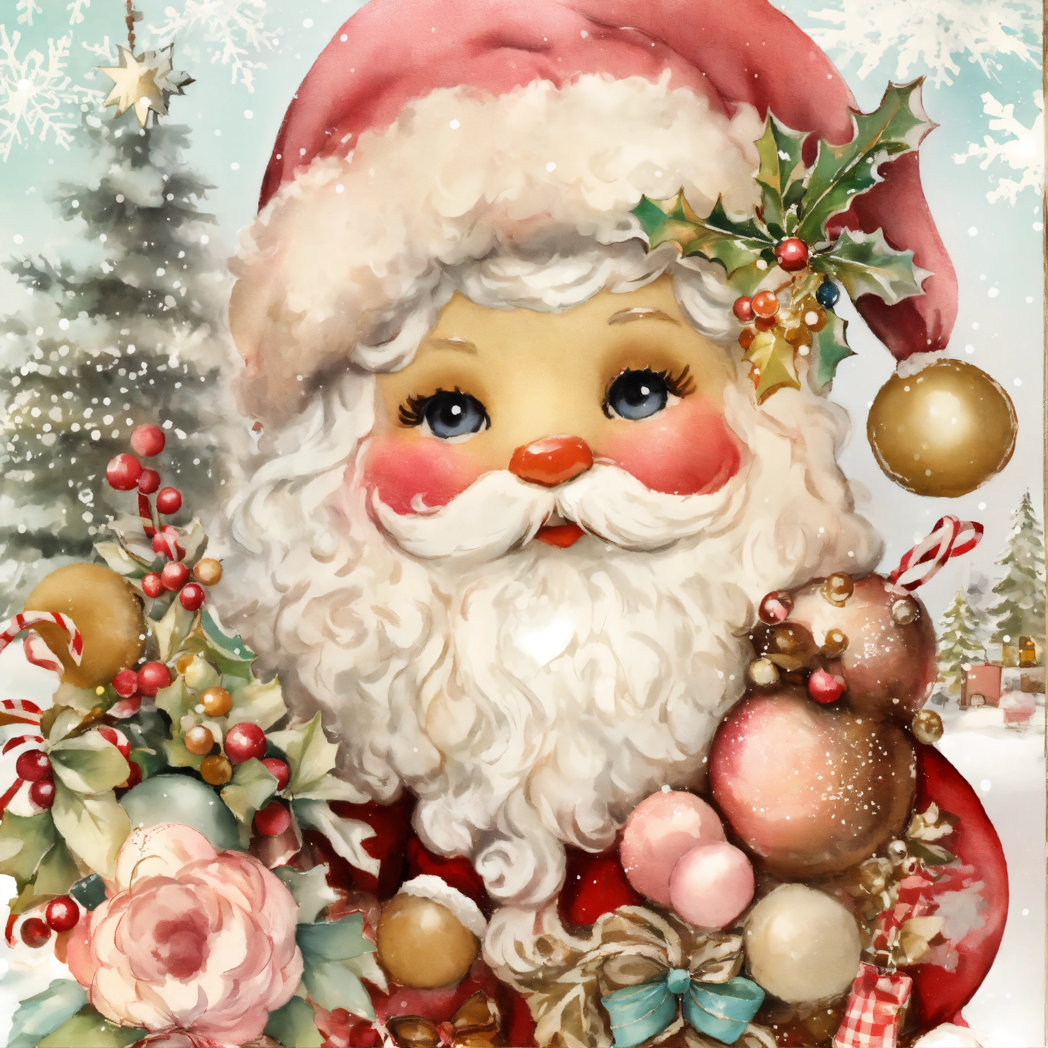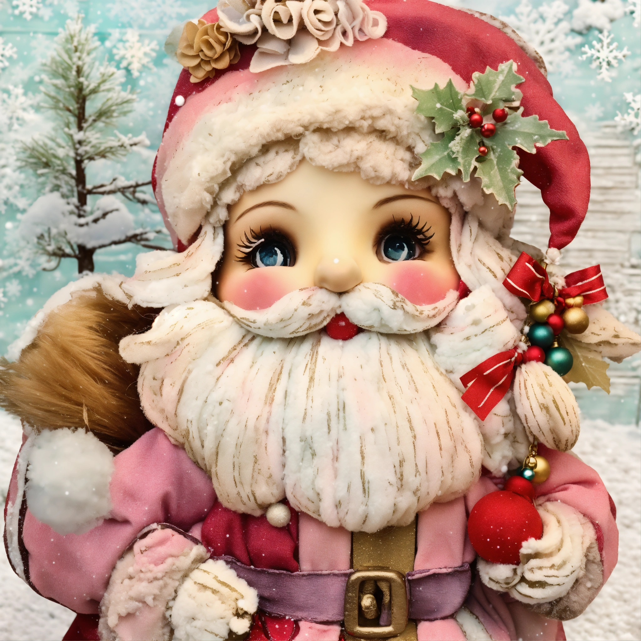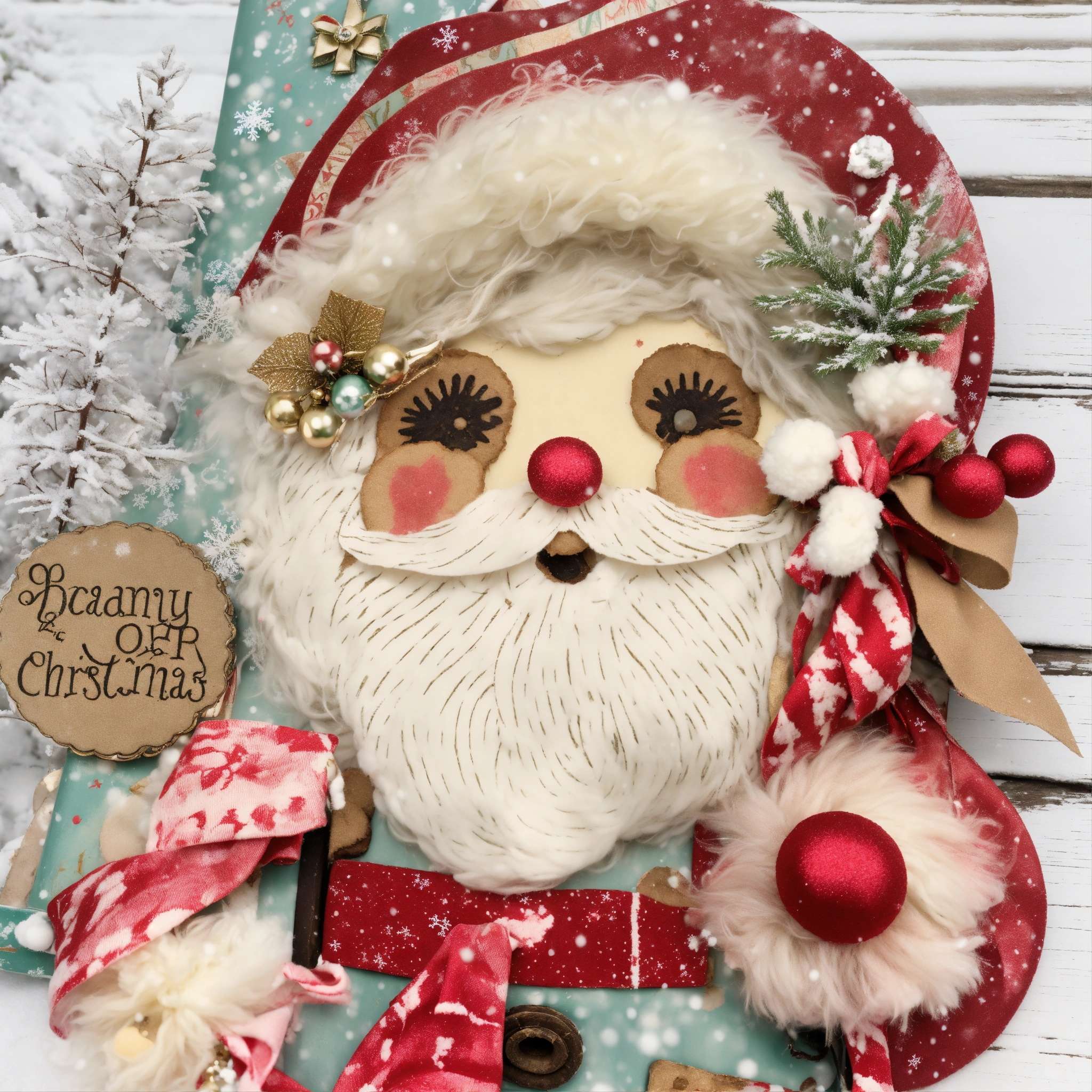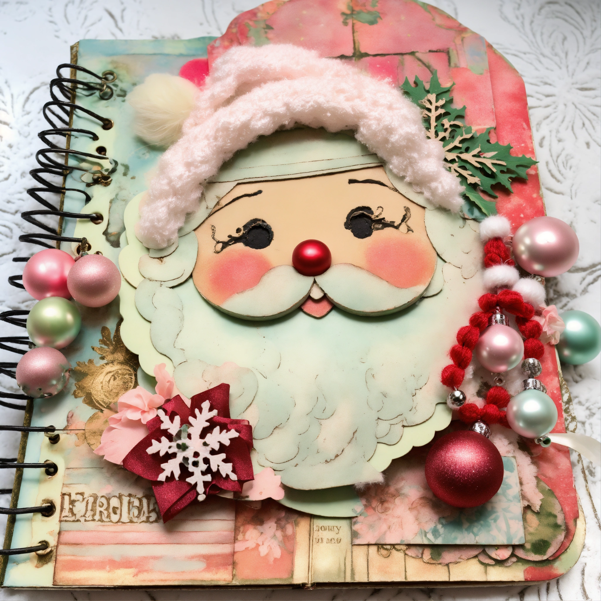 Shabby chic dreamy mist pastel colors junk journal whimsical old santa at snowy christmas wintertime