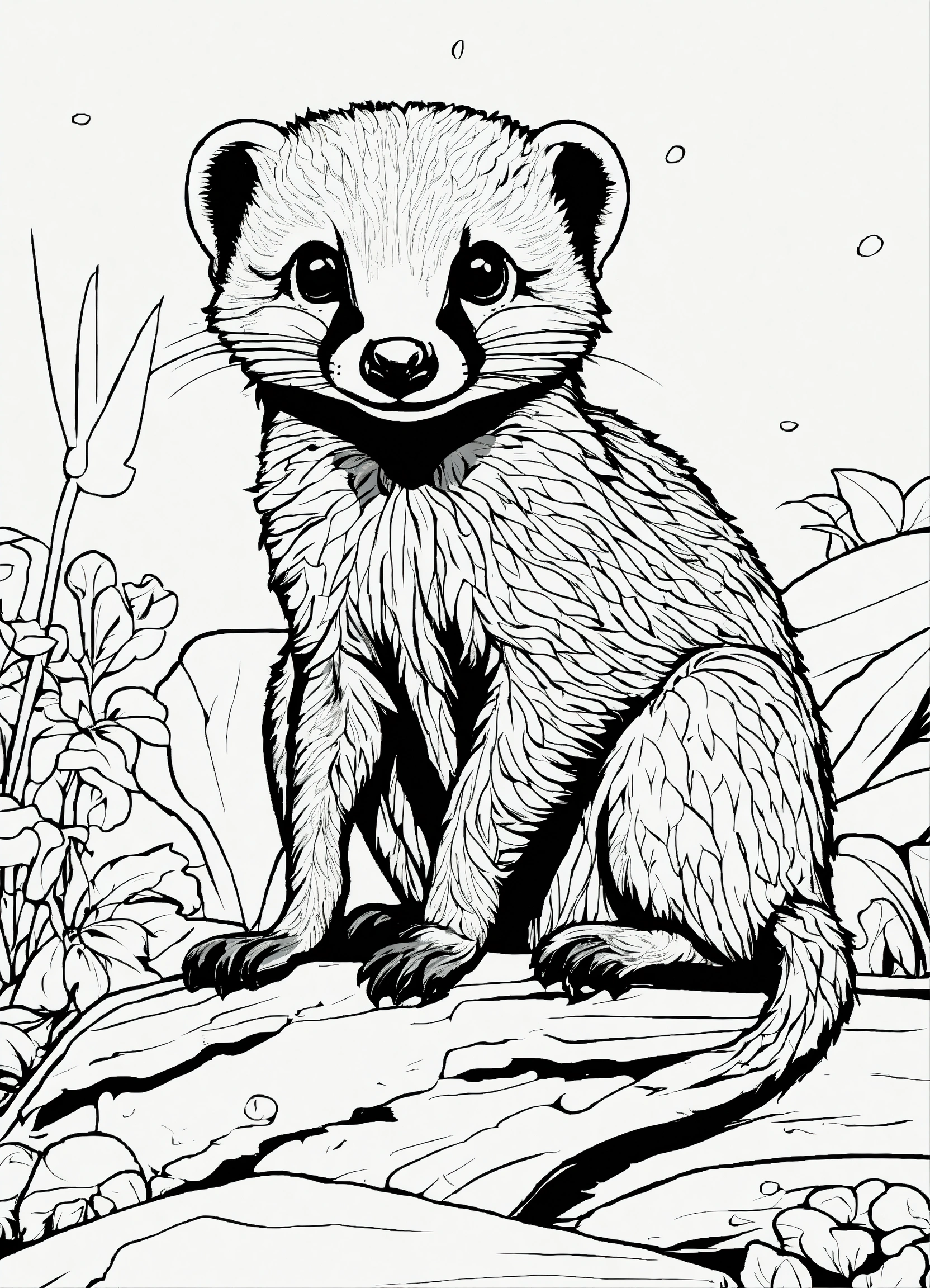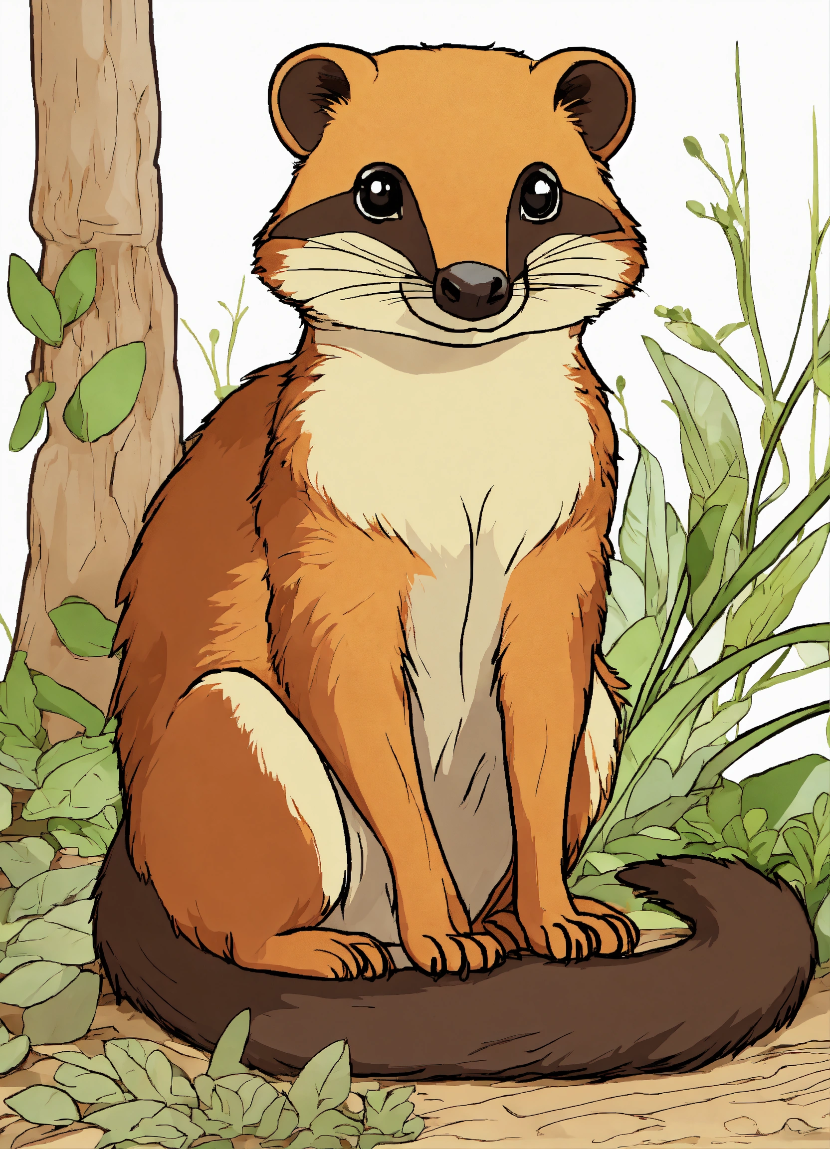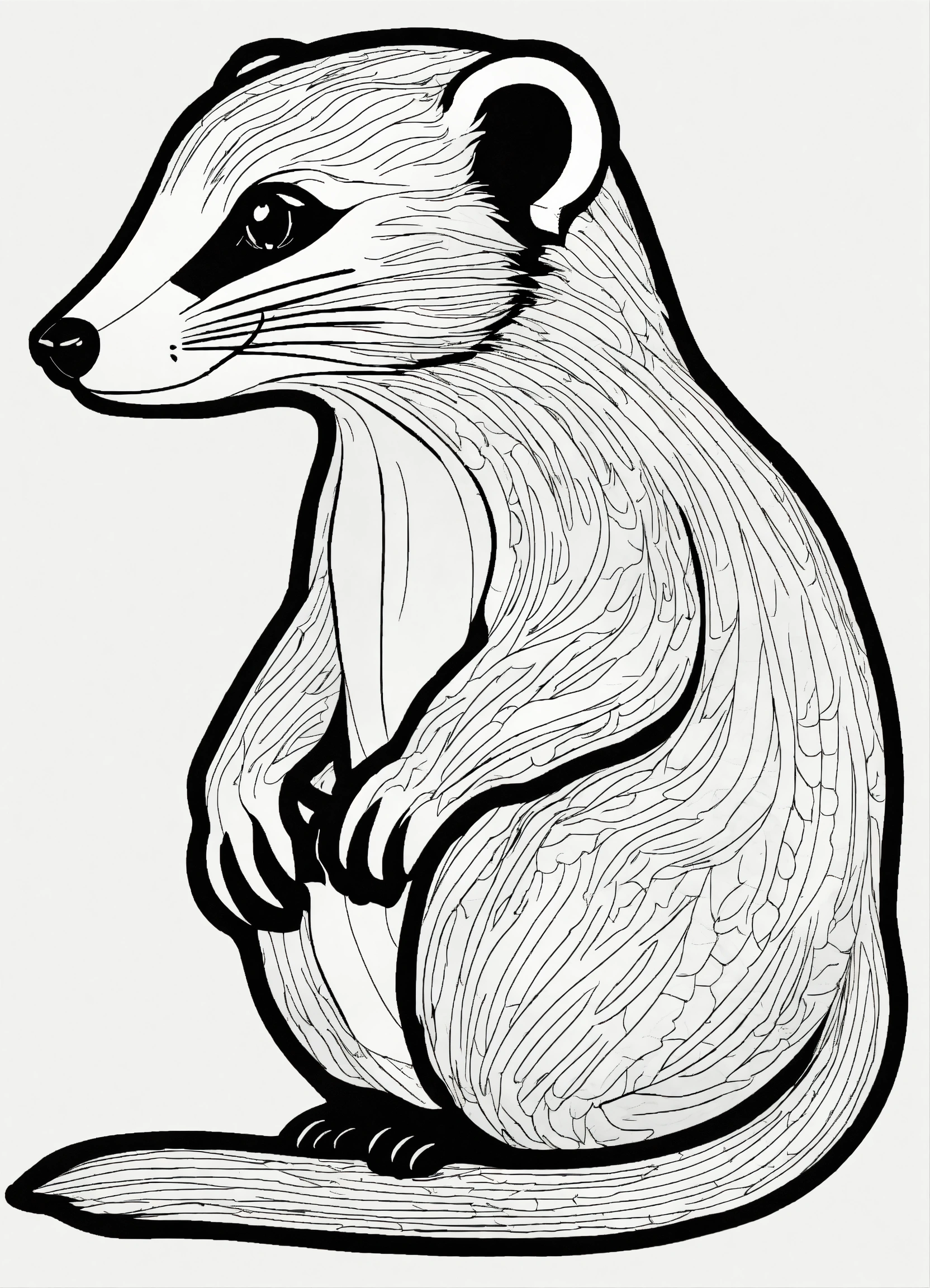 Generate a cute mongoose of the selve, 4k resolution, cartoon-sticker style with clear lines on a pure white background suitable for a children's coloring book.