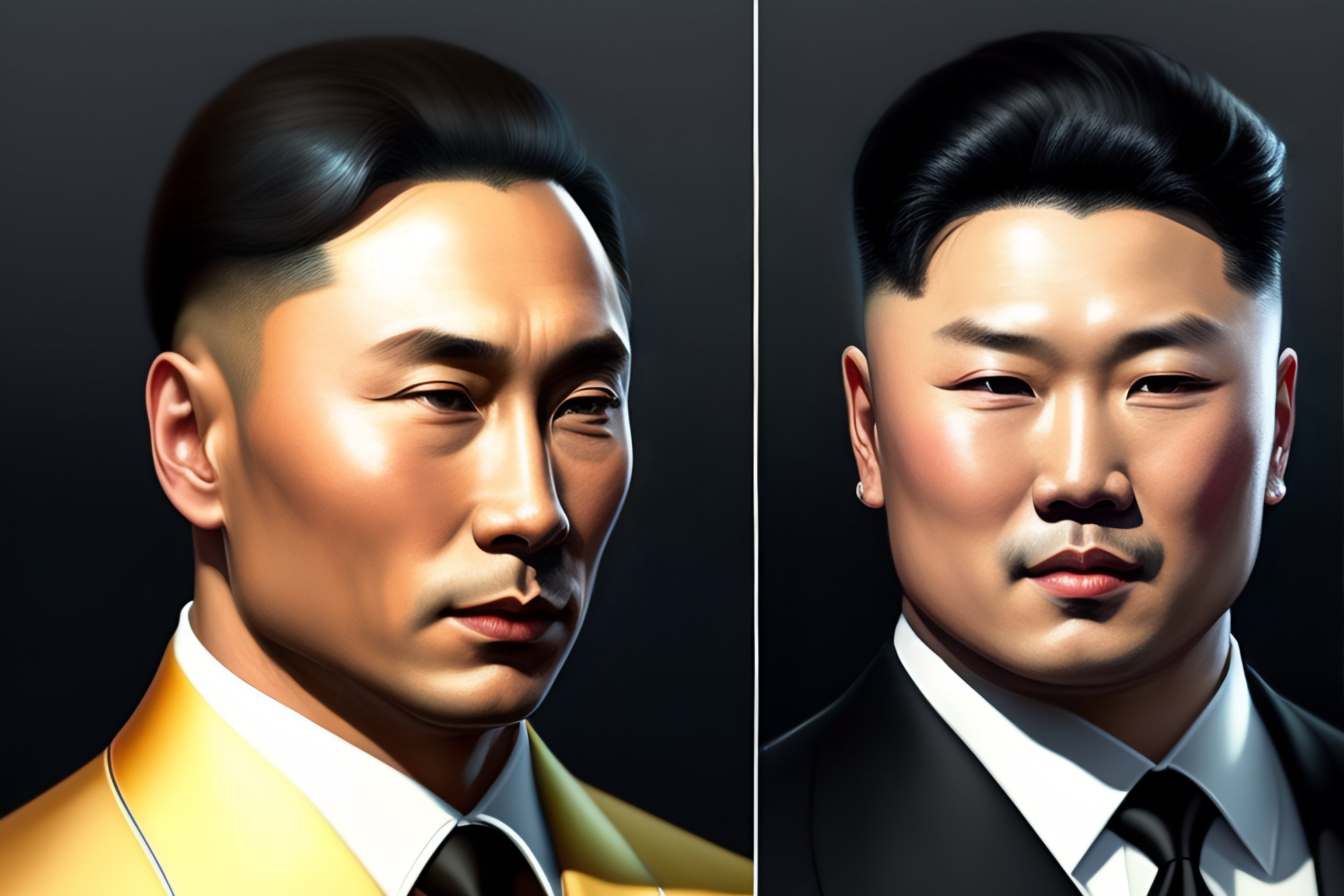 Vladimir putin with the iconic kim jong un hairstyle, realistic portrait, symmetrical, highly detailed, digital painting, artstation, concept art, smooth, sharp focus, illustration, cinematic lighting, art by artgerm and greg rutkowski and alphonse mucha