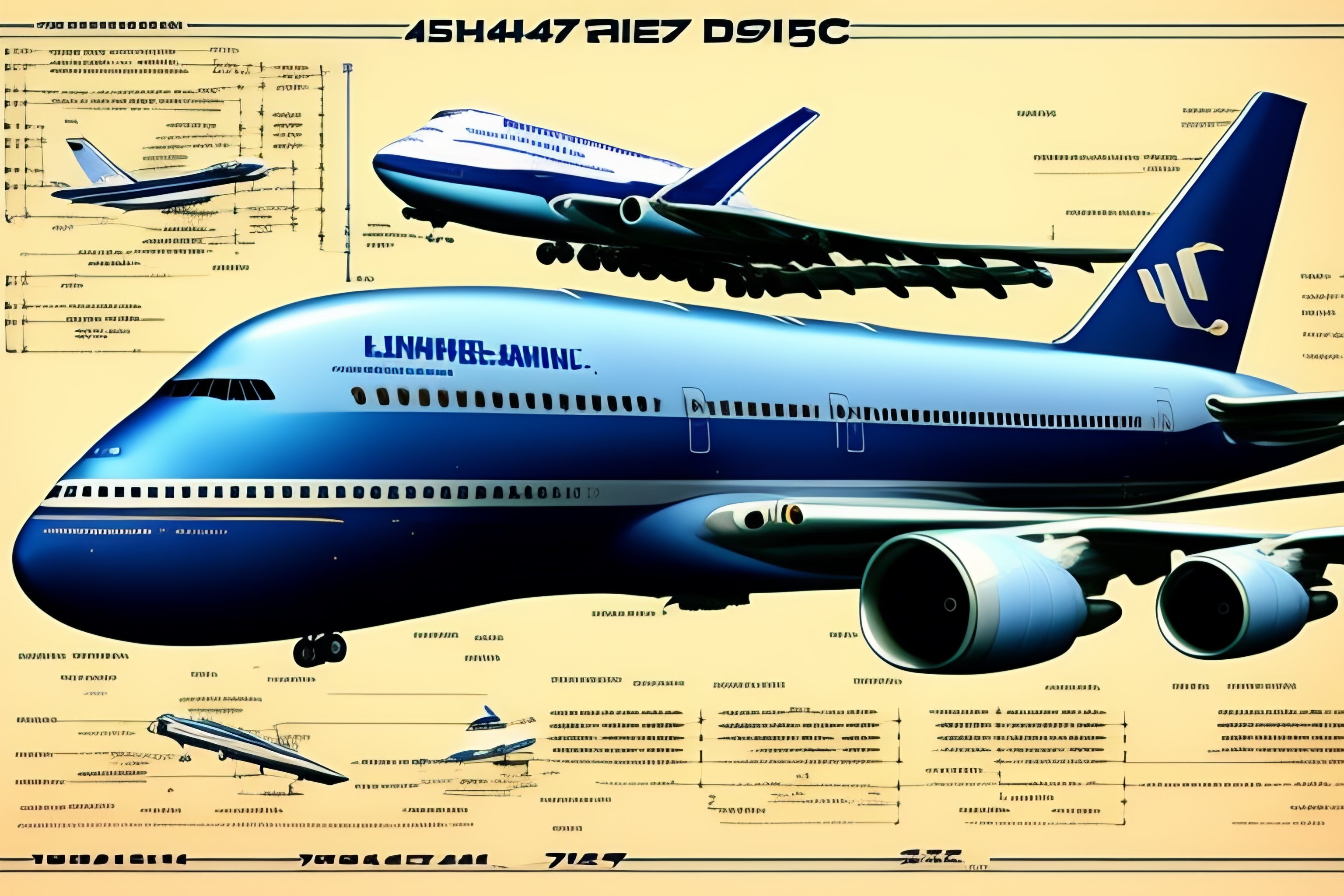 Blueprint design of aircraft boeing 747 in detail with technical details