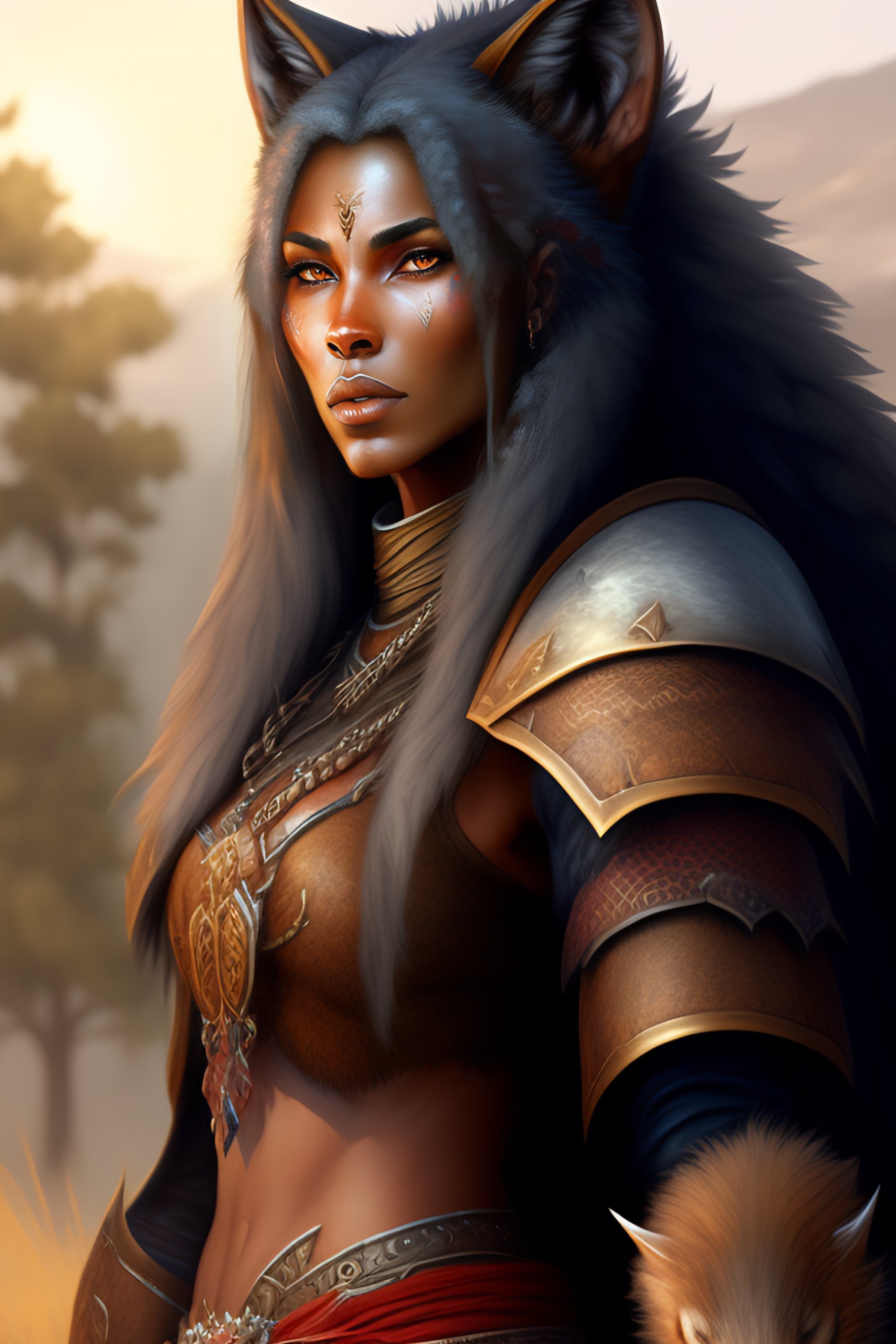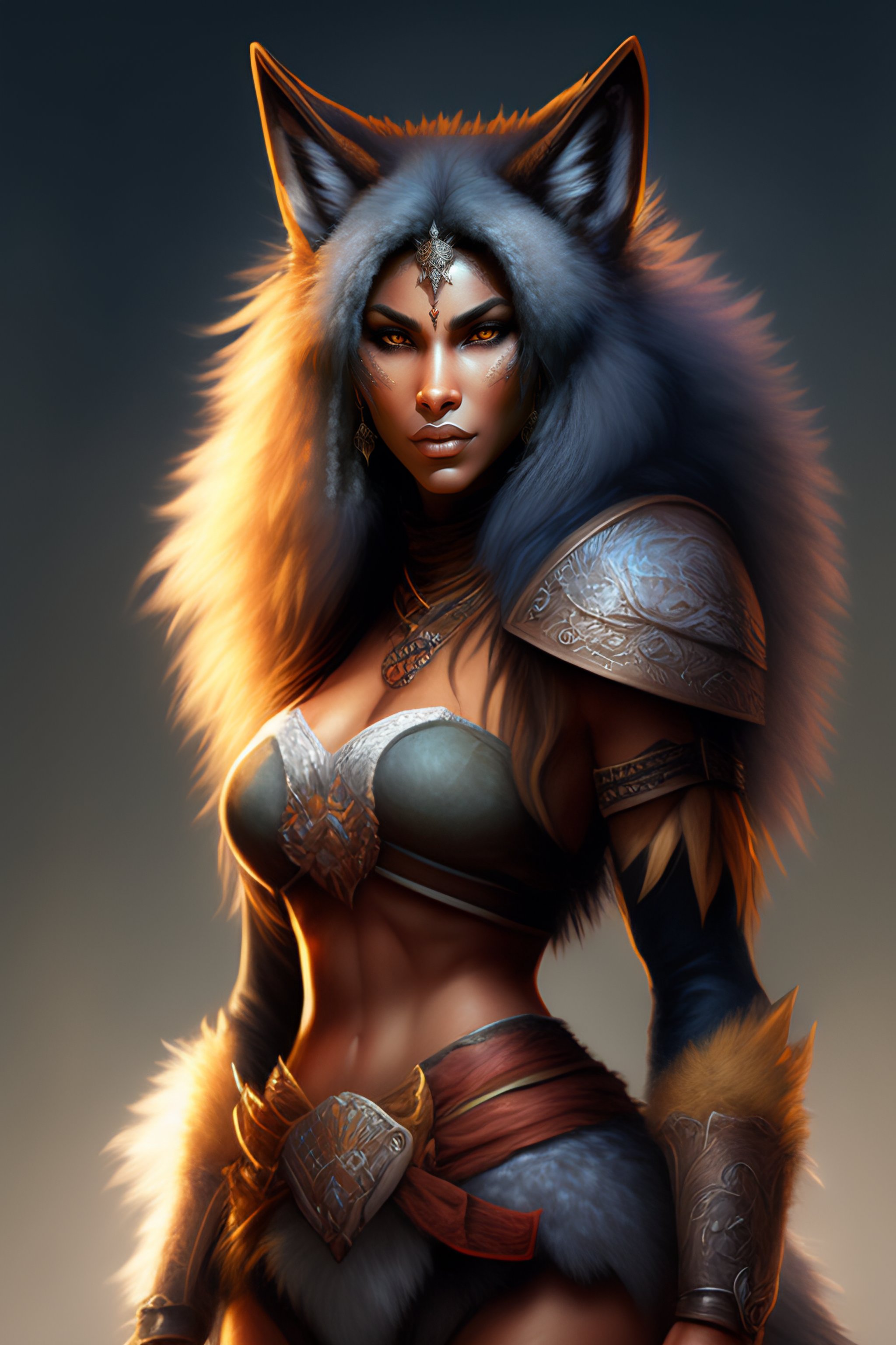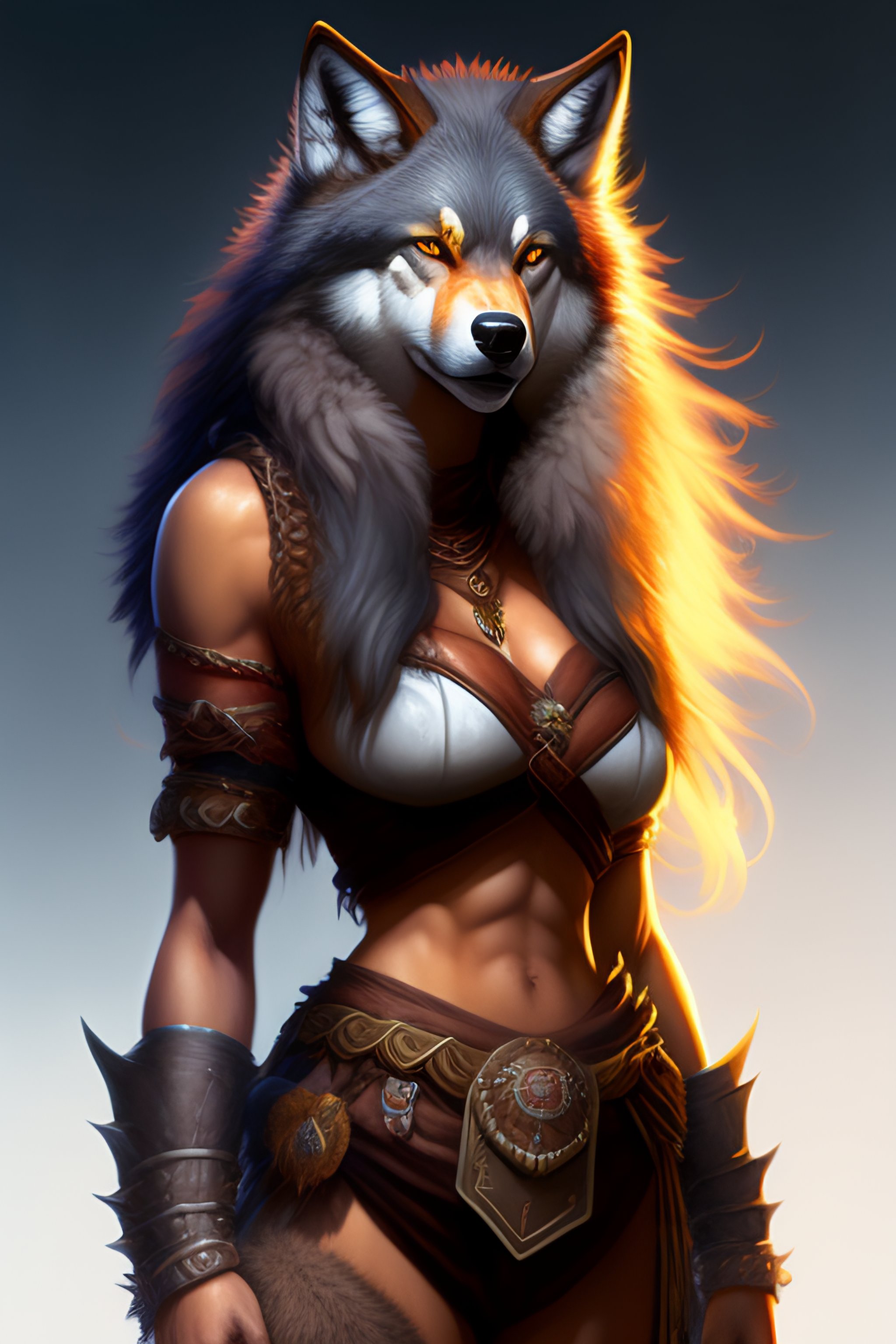 Wolf woman, anthro furry cute, wolf female warrior, werewolf, worgen, character design, fluffy, painted in the style of james gurney, concept art