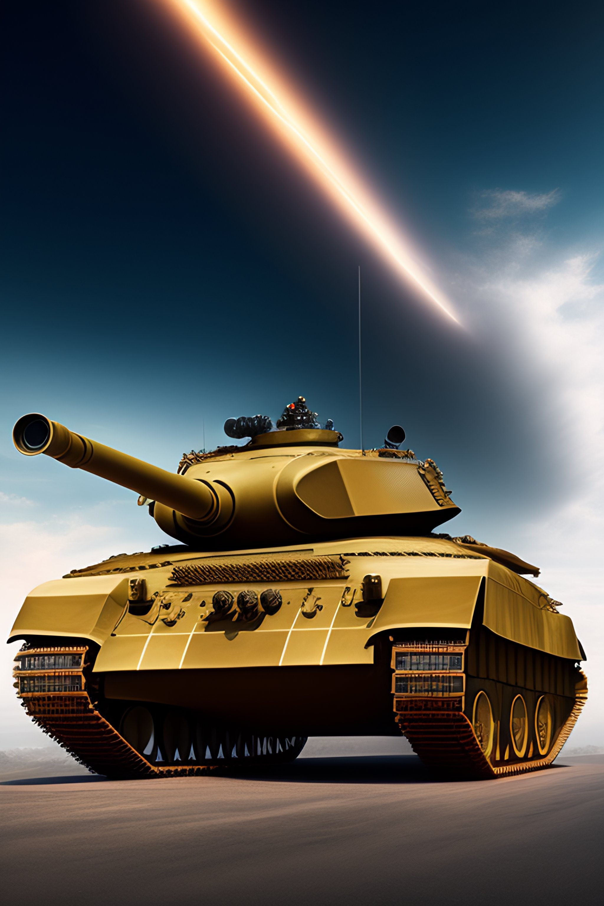 Tank futuriste qui évite des obus et qui tir