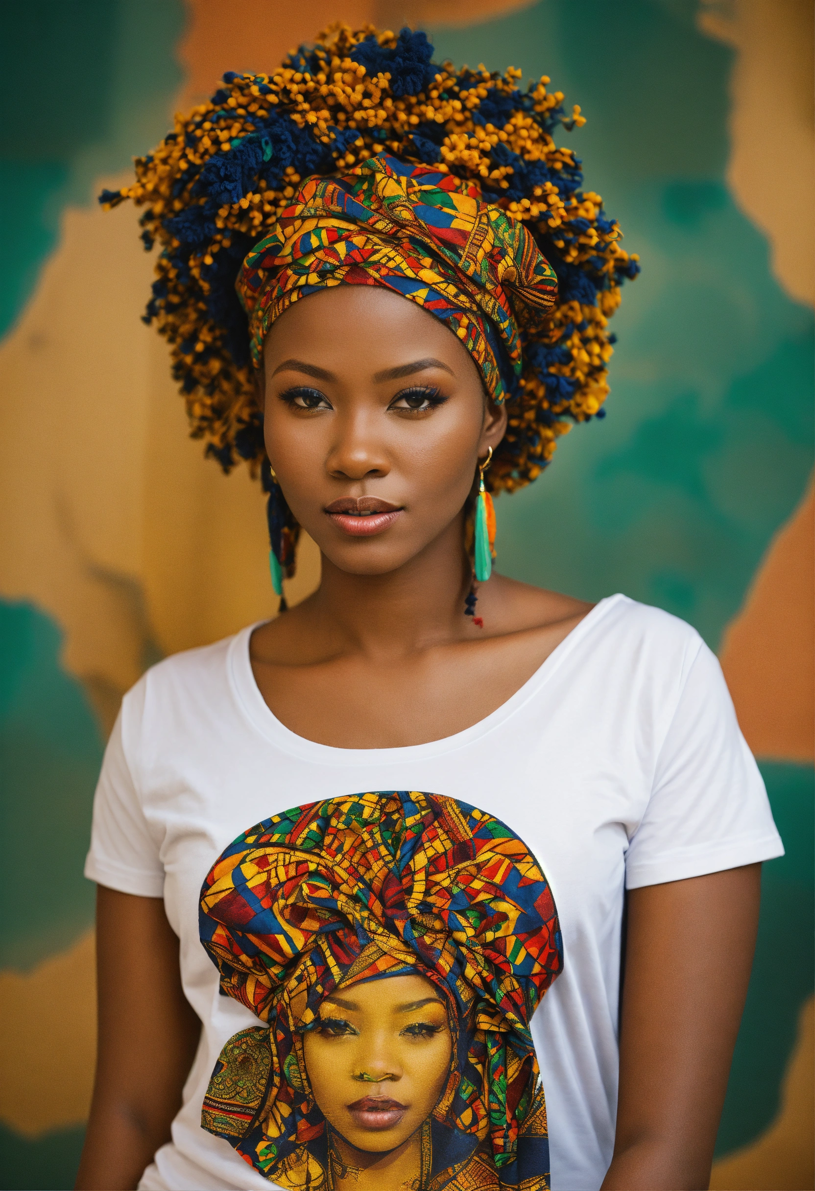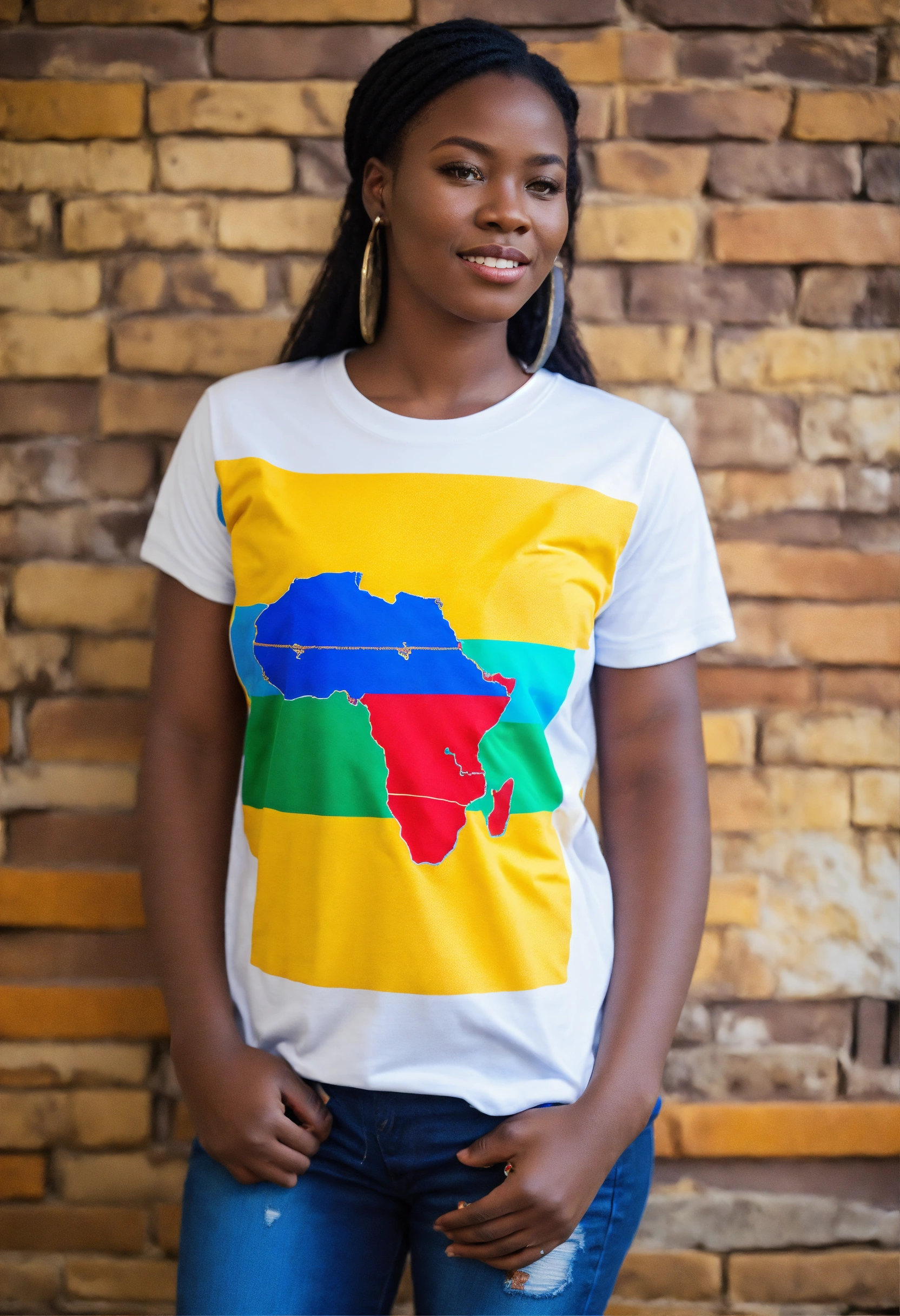 Generate me stylish tshirts, african inspired, featuring the continent, the colors, faces or typical print details on the shirt