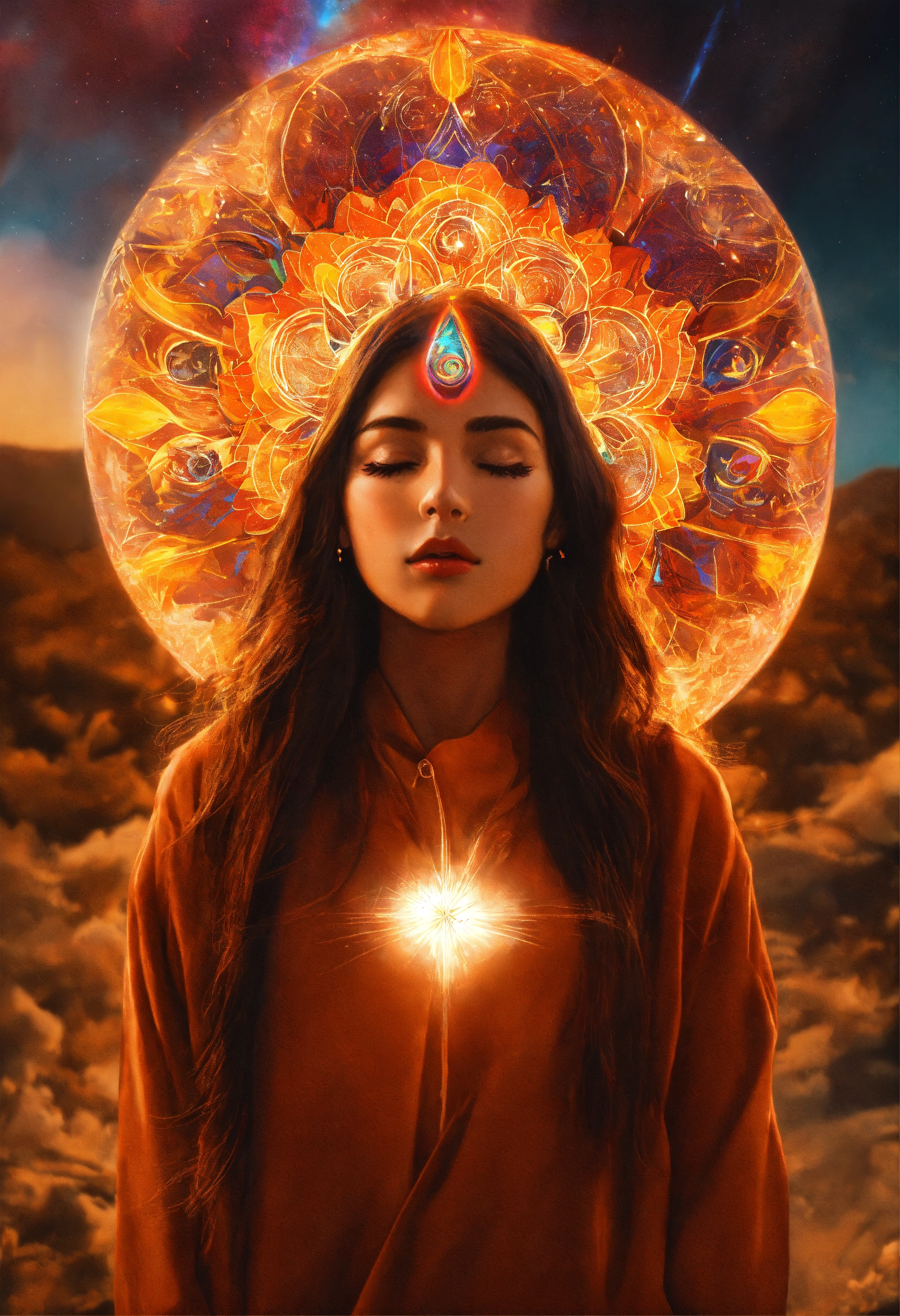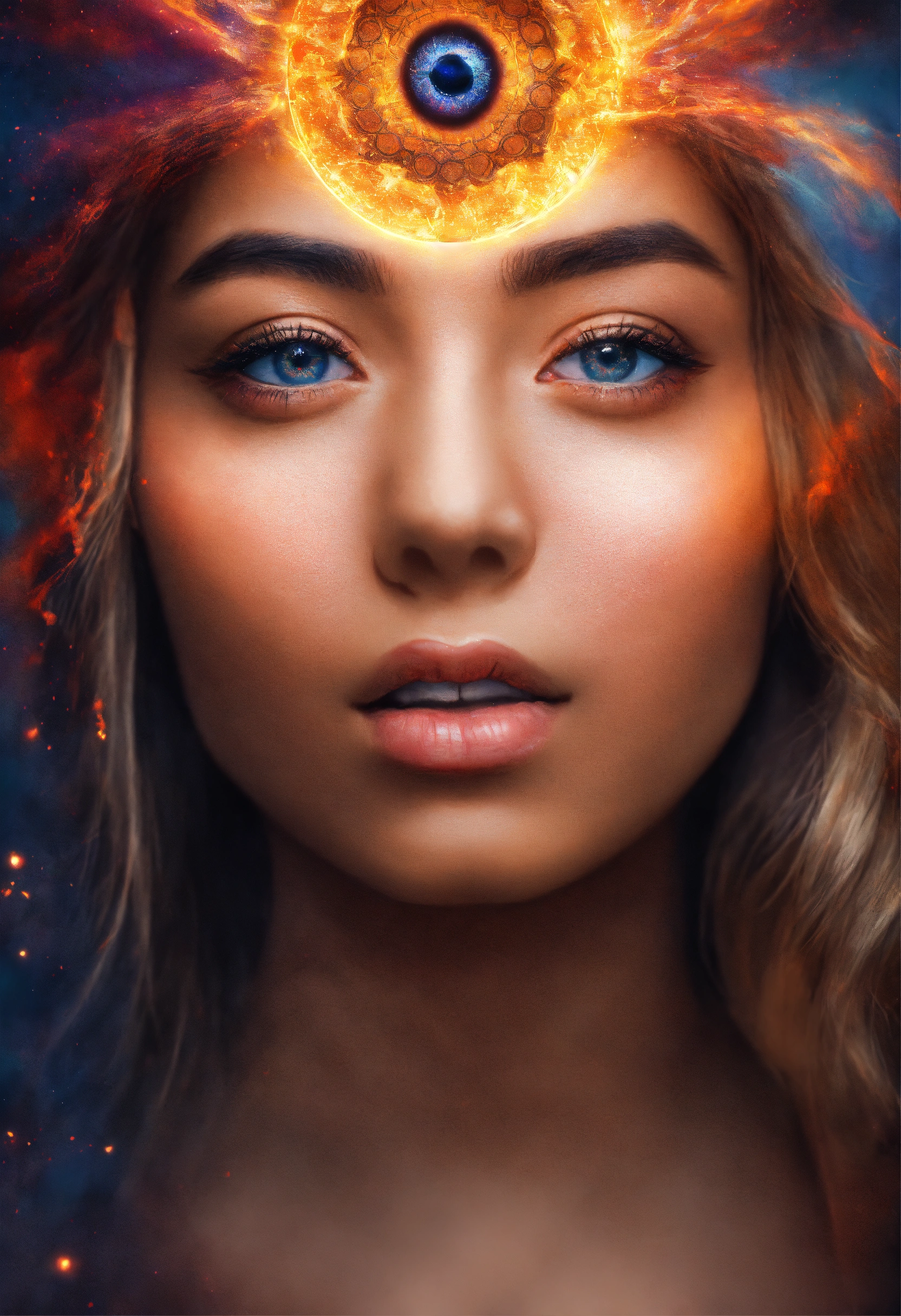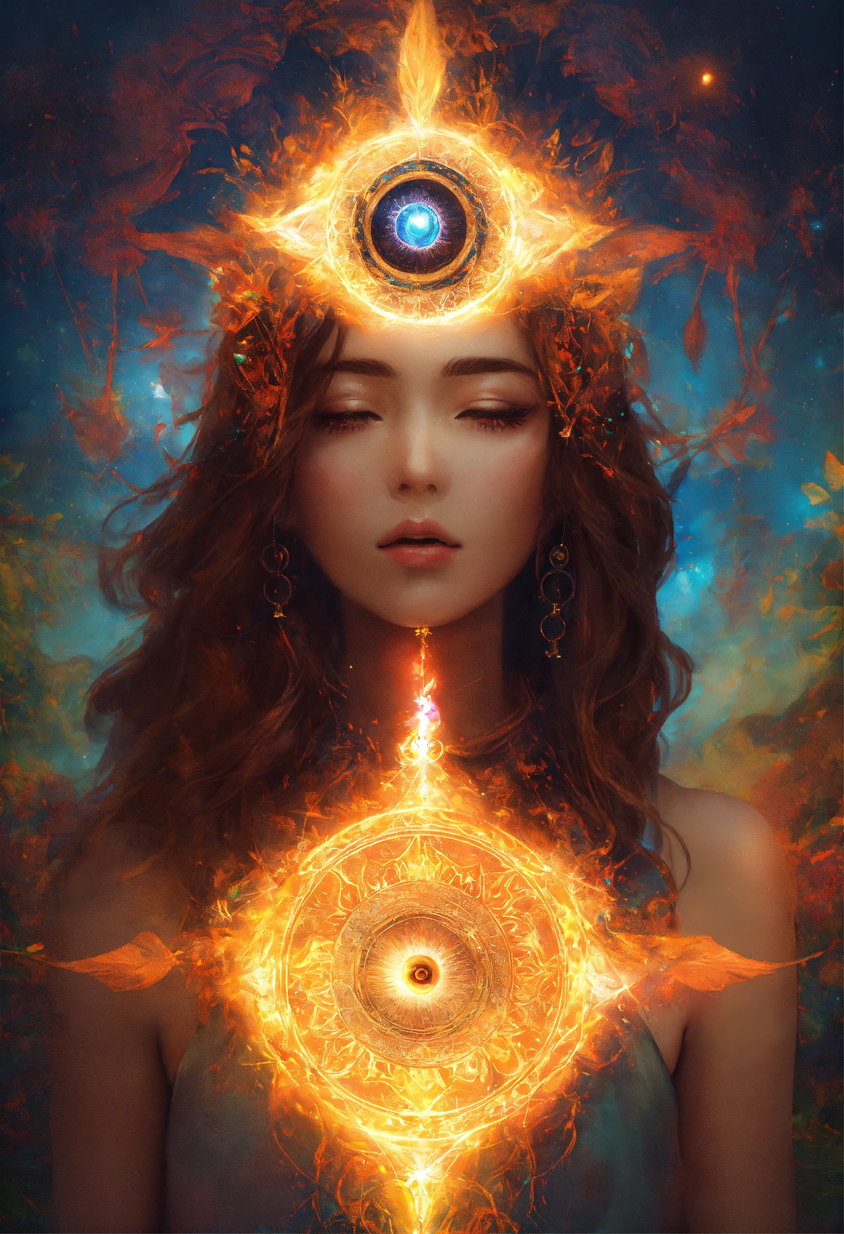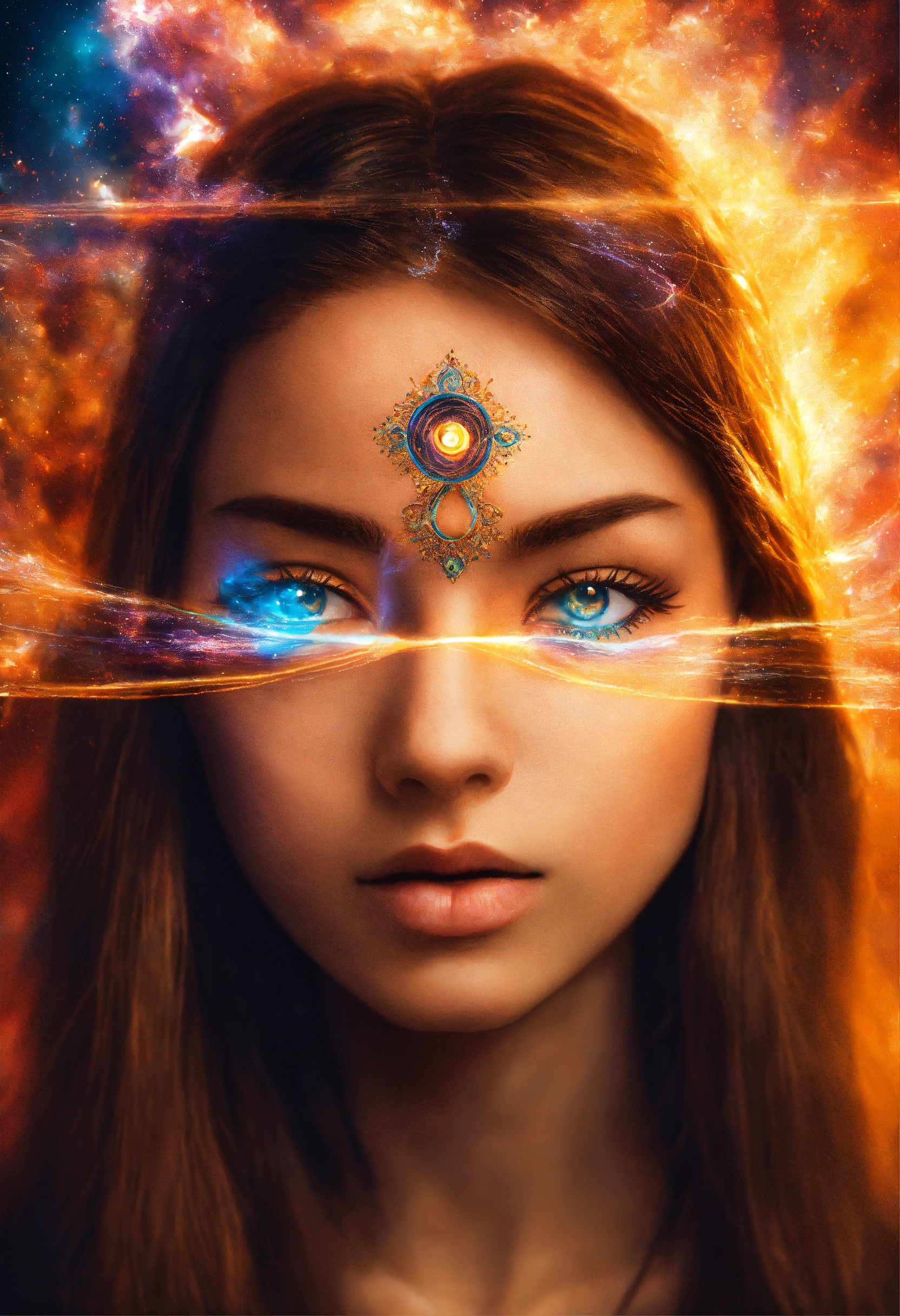 A girl opening her third eye with powerful energy