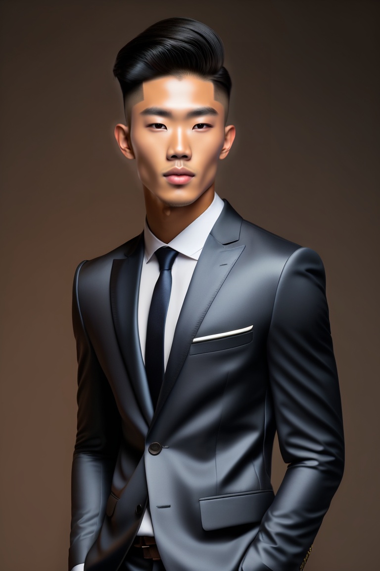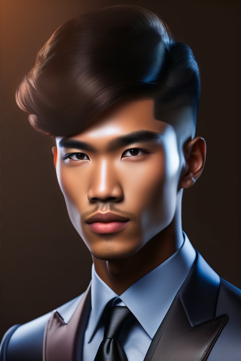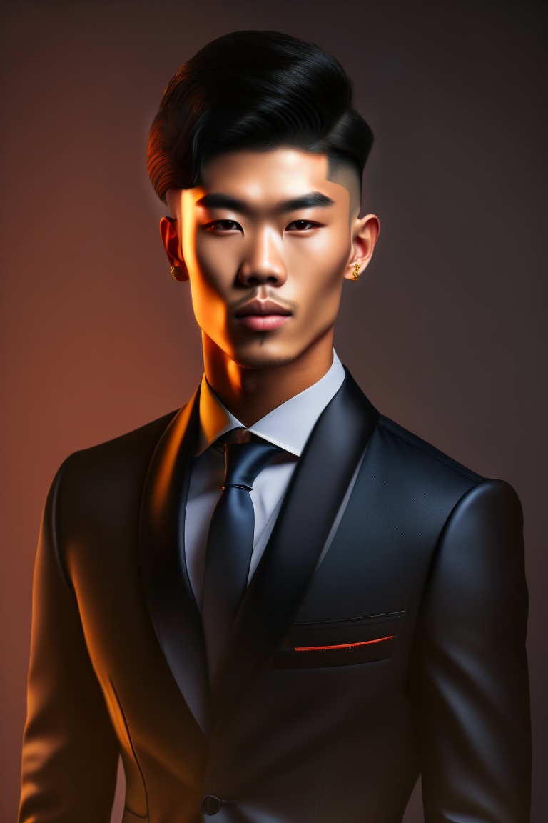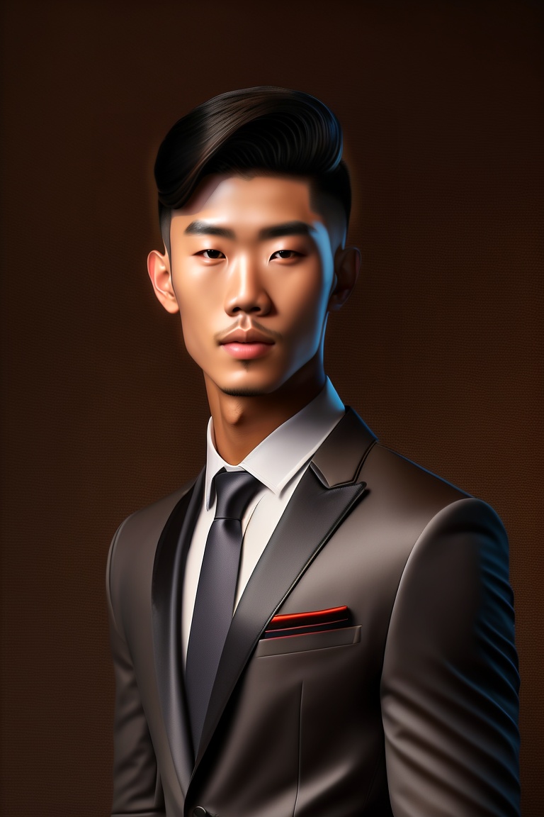 Handsome indonesian man aged 20, thin lips, face facing the camera, wearing a neat suit, a background in the color black