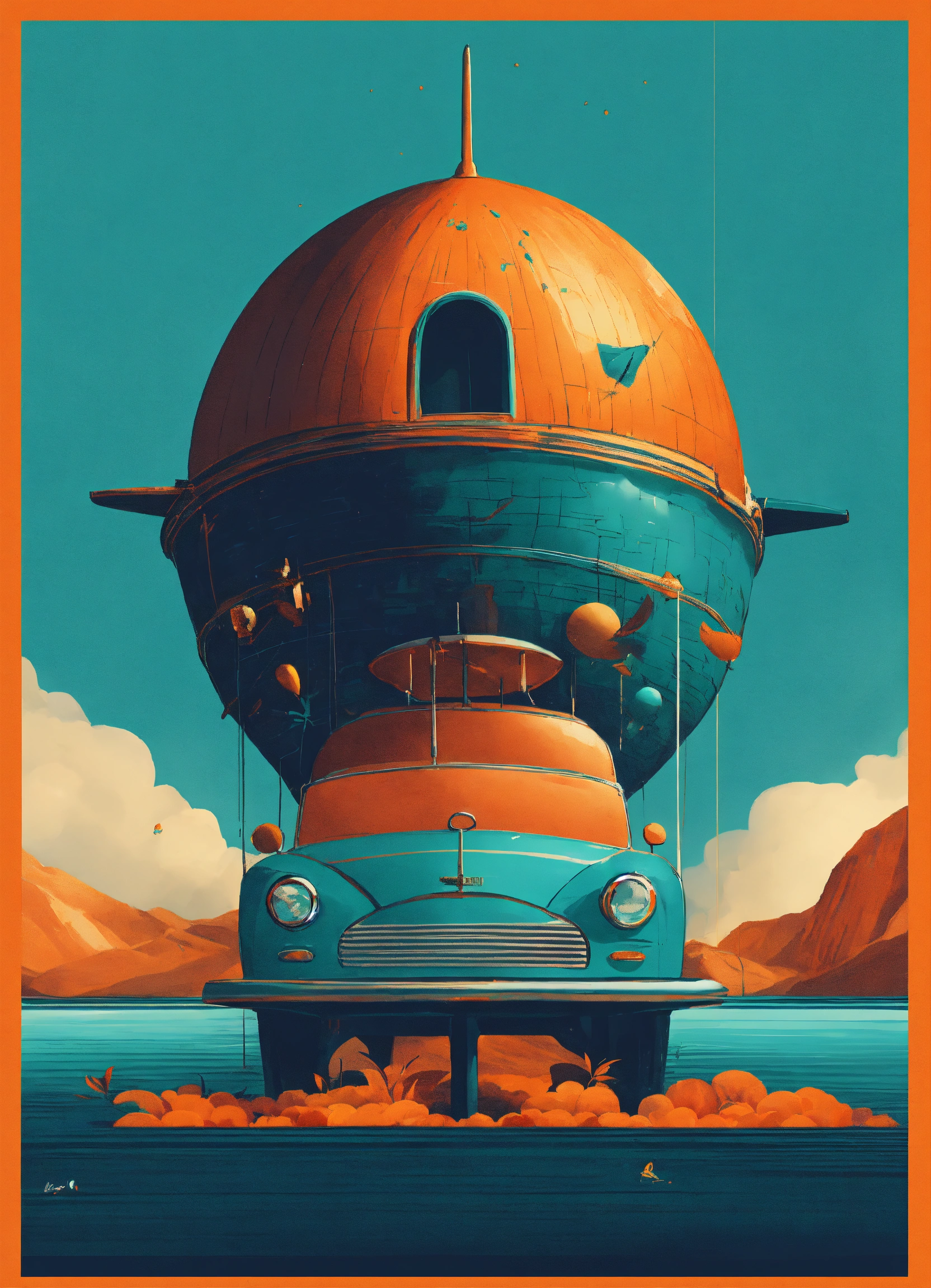 Fondo minimalista para un poster azul turquesa y naranja