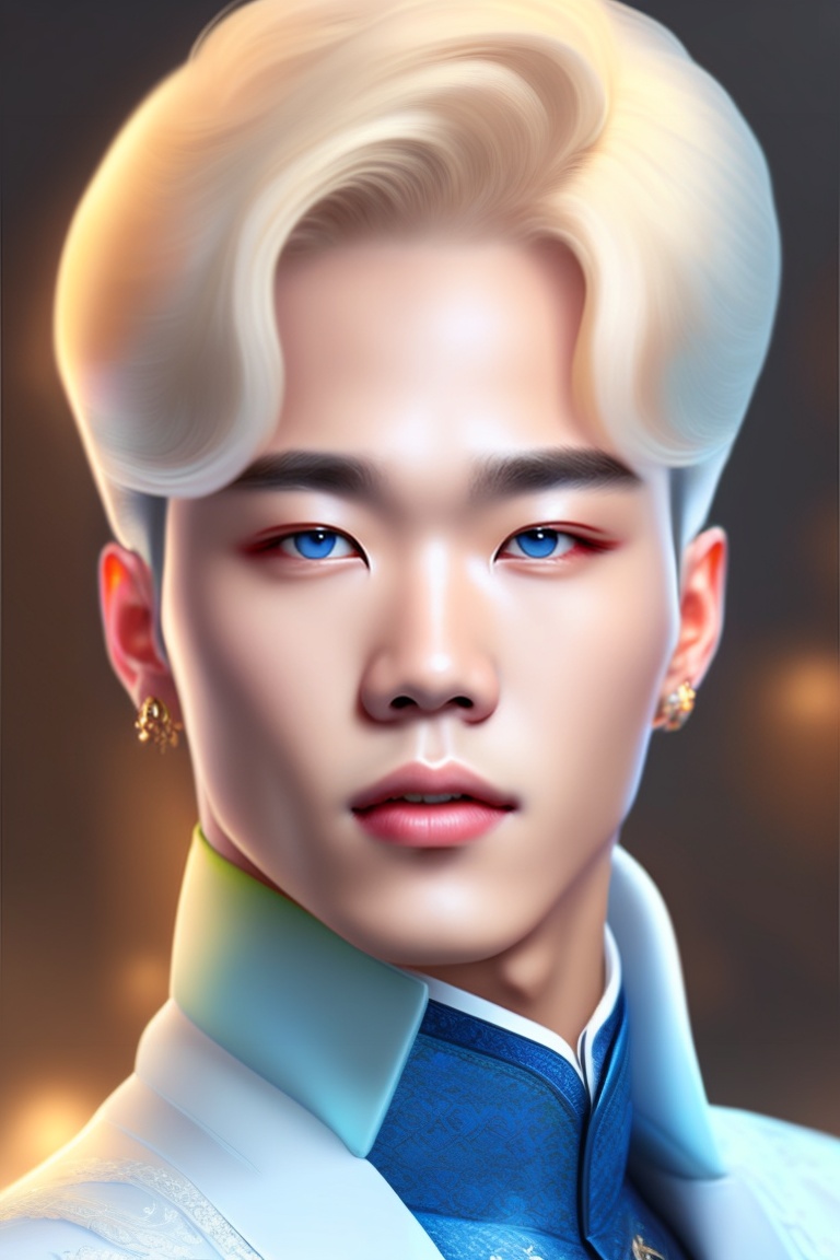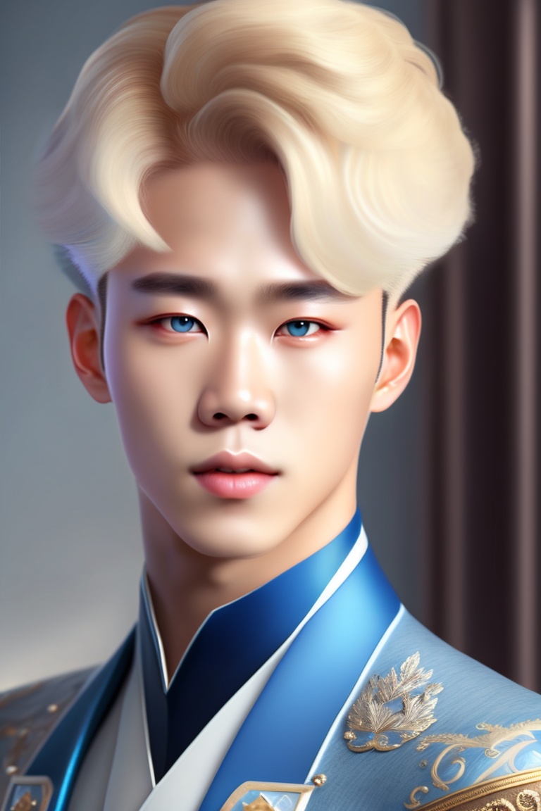 Park jimin, a prince from the victorian era, korean with a bright white face, blonde hair and blue eyes, a body with luscious curves, slightly short.