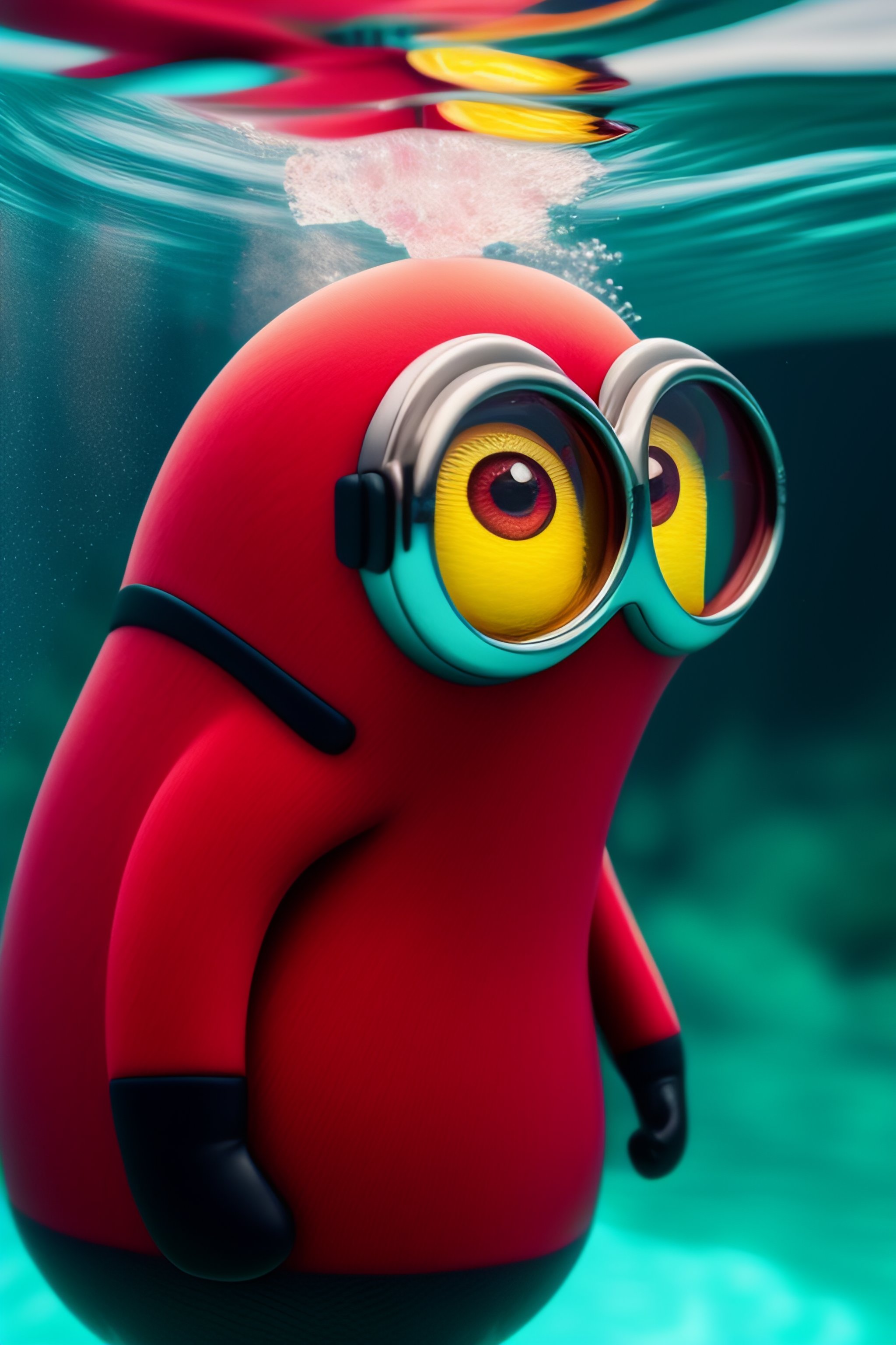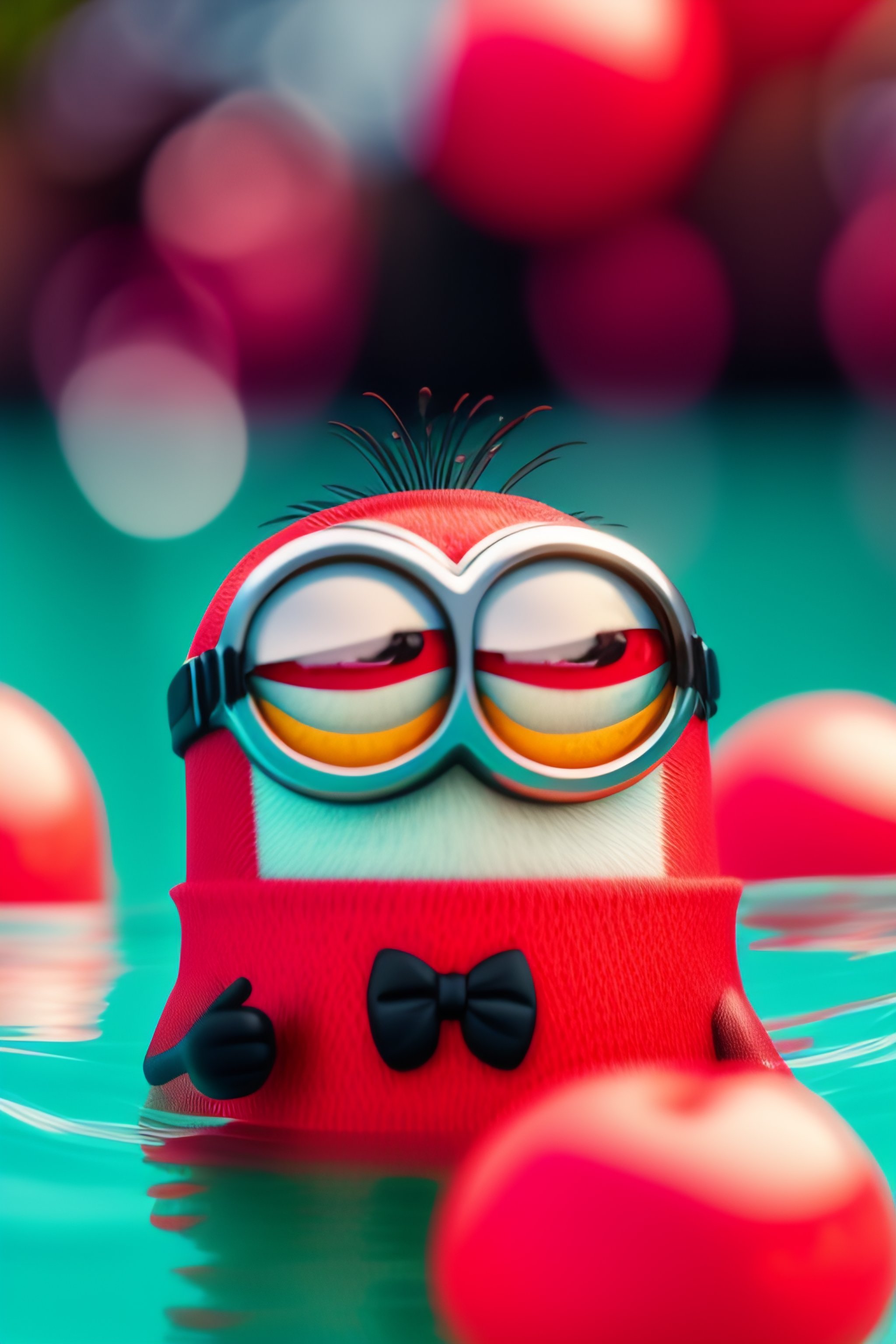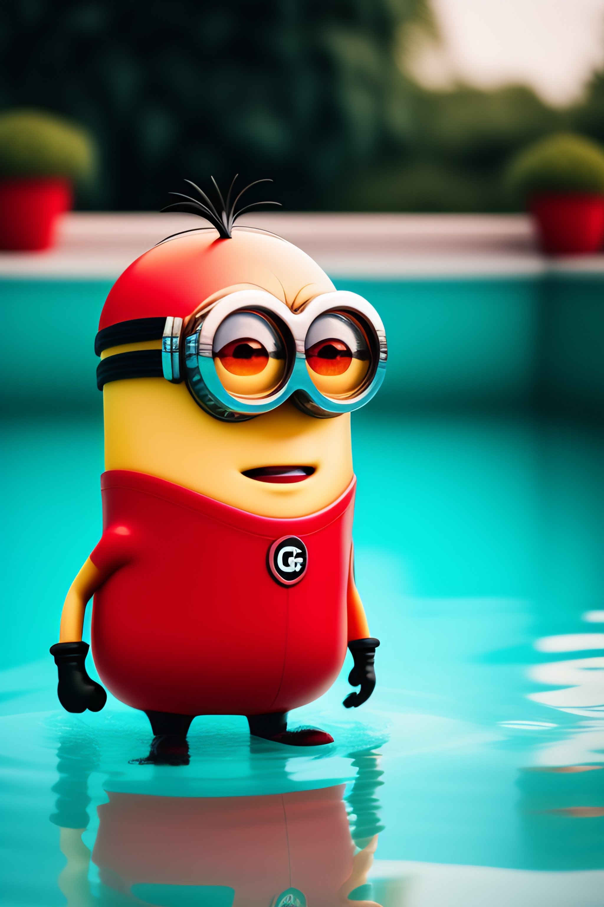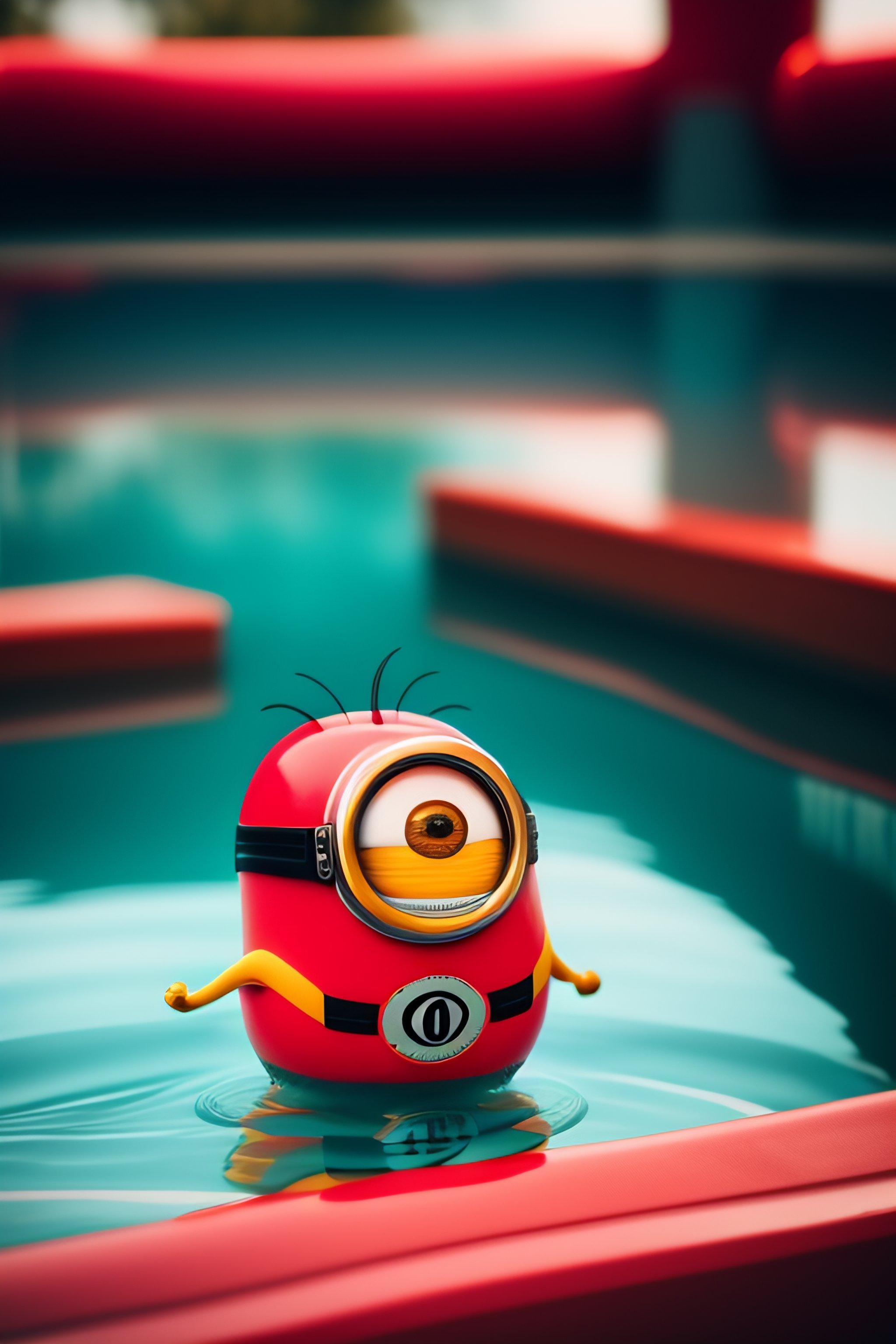 Minion wearing red amor in the pool