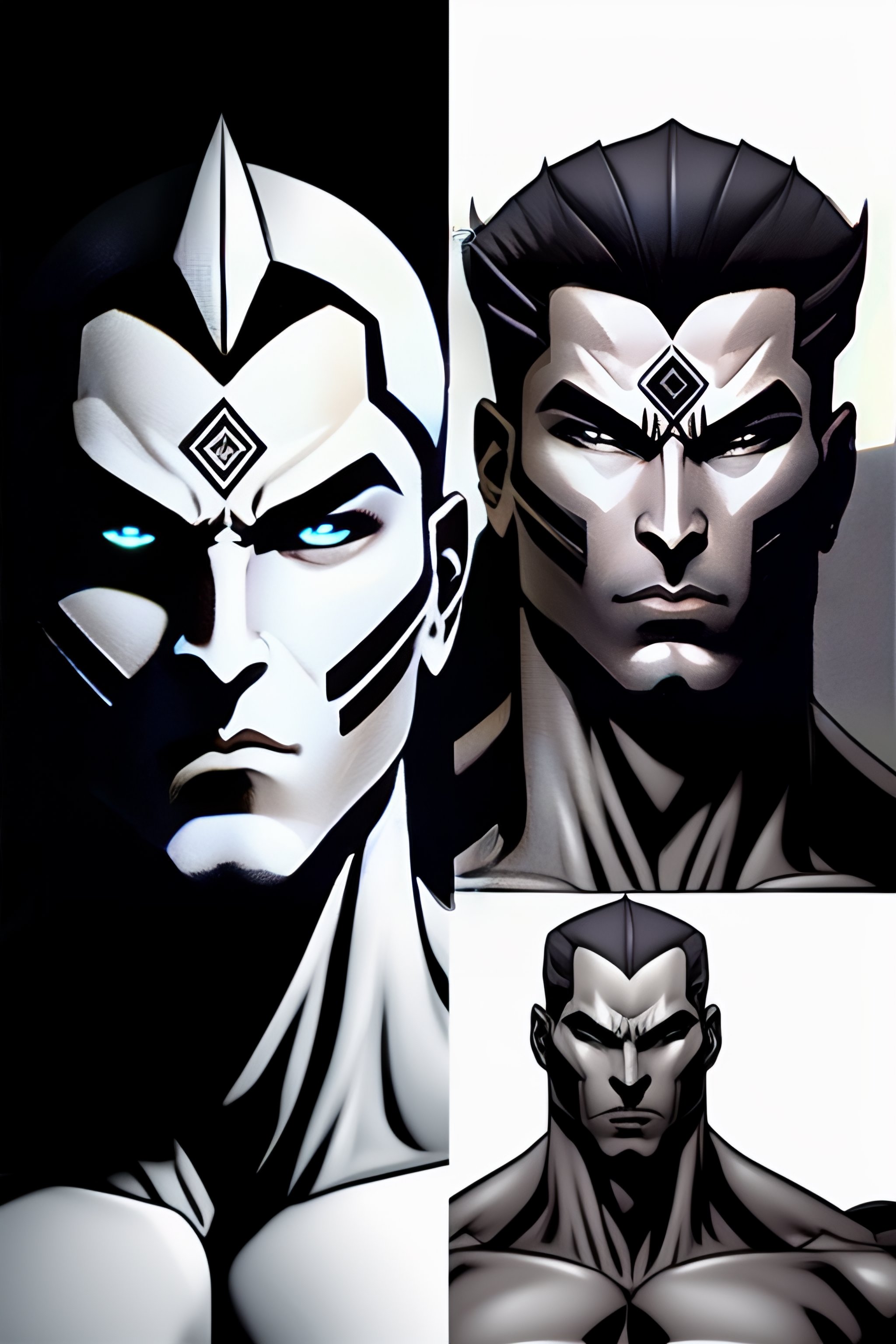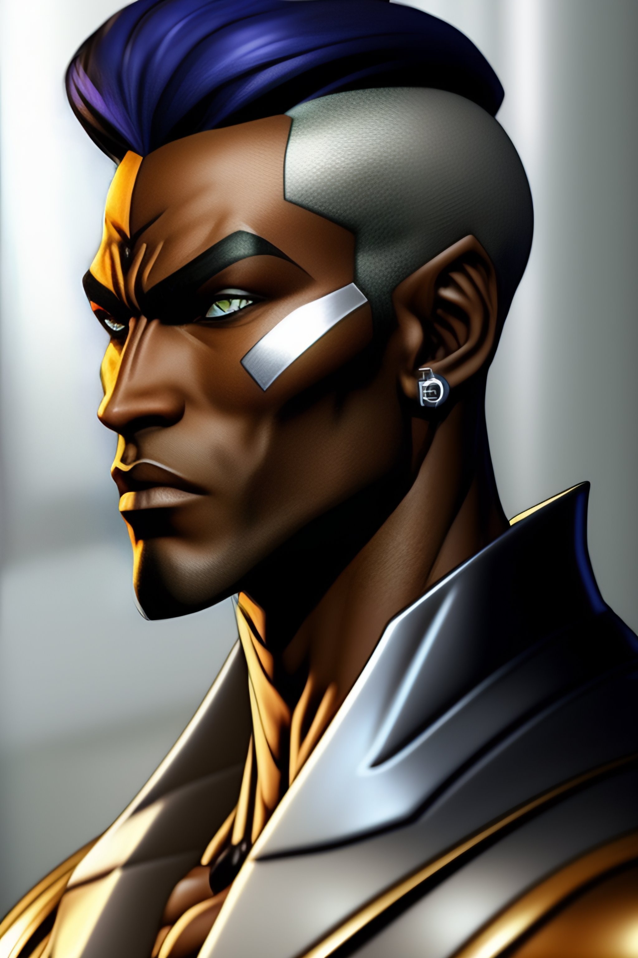Enriko putchi the main antagonist of the sixth part of the incredible adventures of jojo series, the stone ocean, a dark-skinned man, of medium height and thin build. pucci has very short gray hair with shaved lines forming two elongated hexagons of hair between the scalp and temples, each of which connects the corresponding eyebrow with a zigzag strand of hair. in early drawings, one side of these hexagons connected the rest of the hair to the other with a zigzag strand of hair, and the shaved lines formed a triangle behind each ear in such a way that a large mass of hair formed a large plus sign on the back of his head. in later images, the shaved lines of each hexagon join and reach the base of his skull, forming a line of one chevron. he has thin sideburns spreading along the edge of the middle of the jaw.