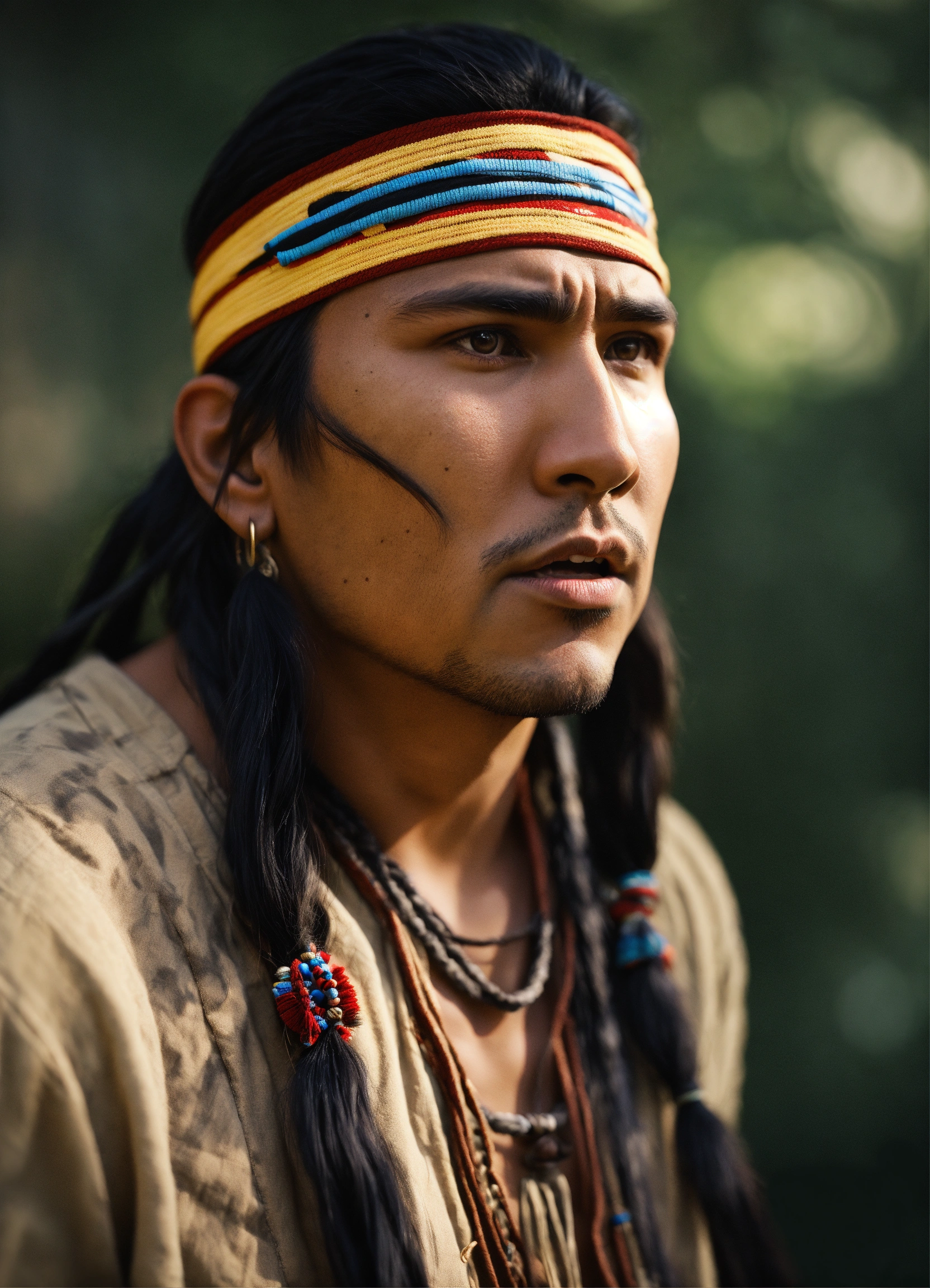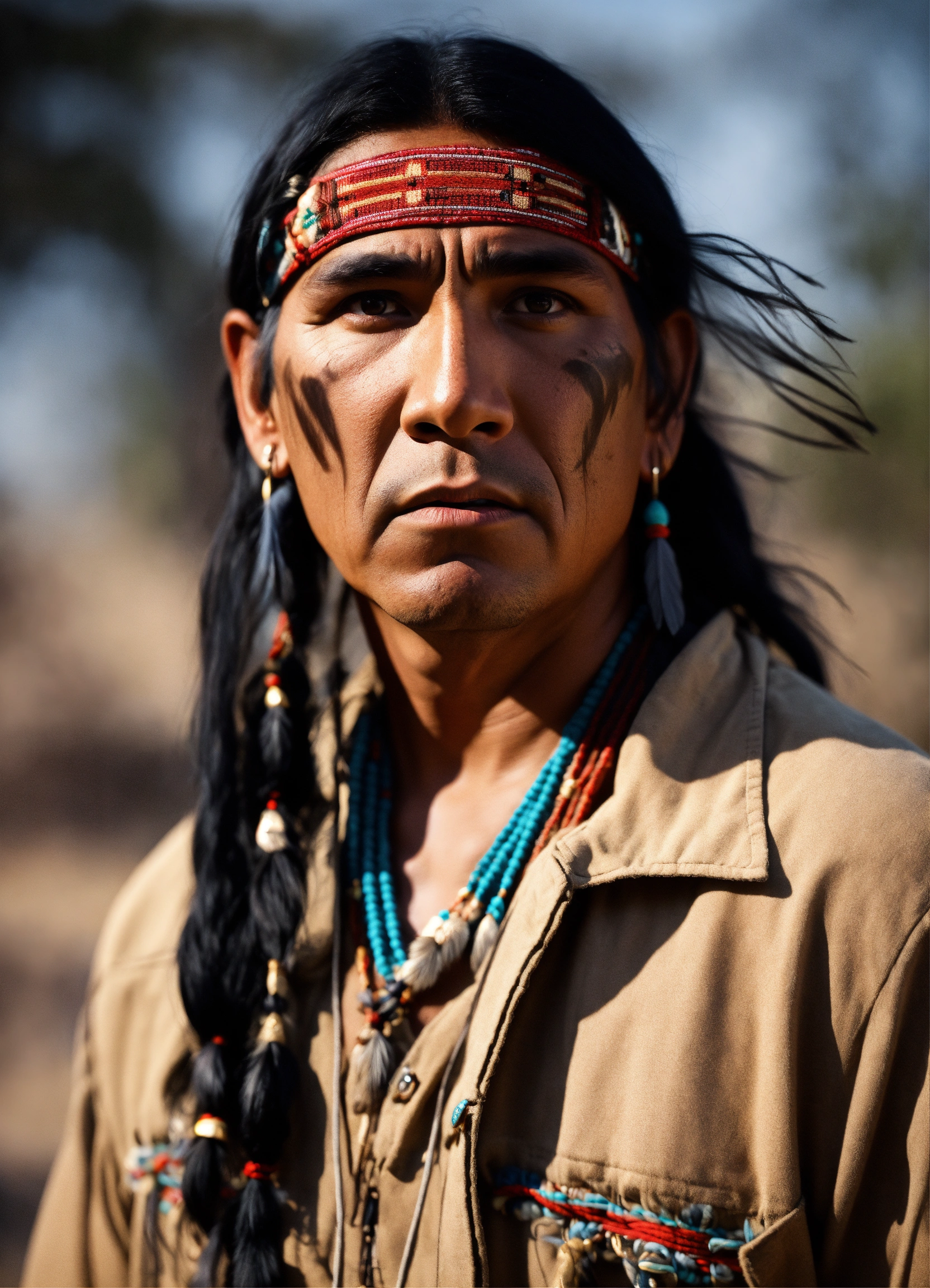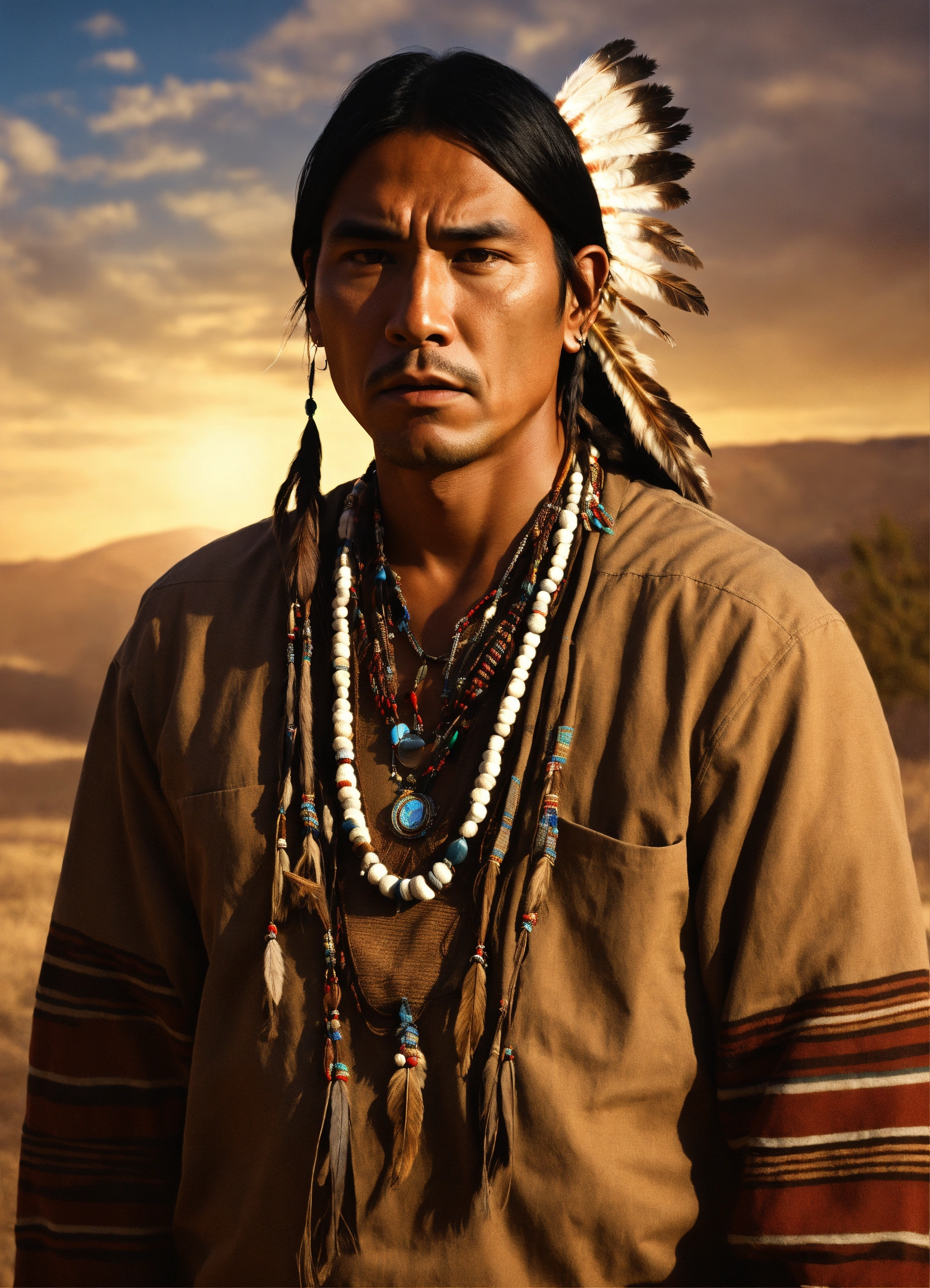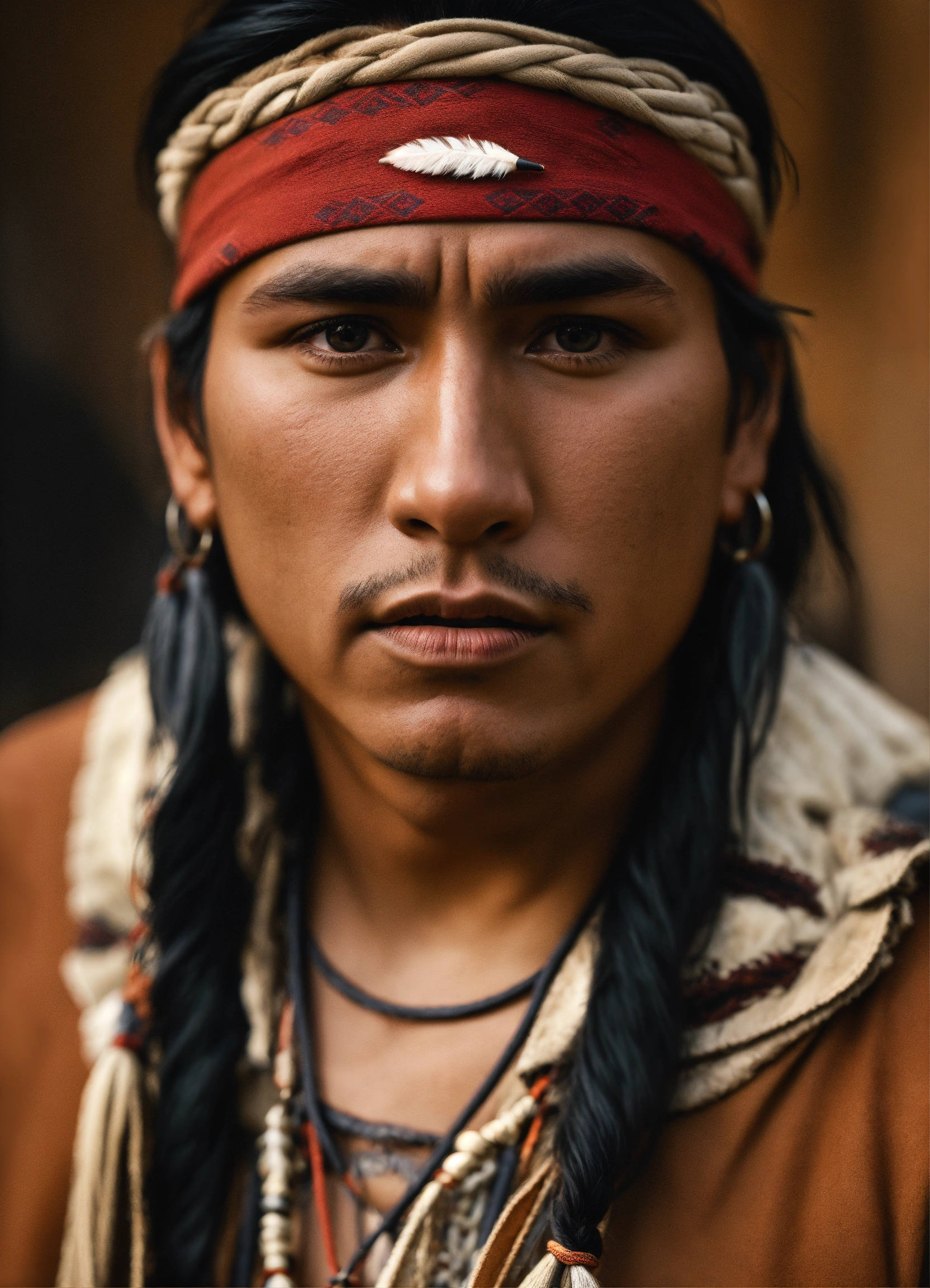 Native american man scared expressive no shadow realistic looking real-life looking no sun casual clothes no shadow on face realistic