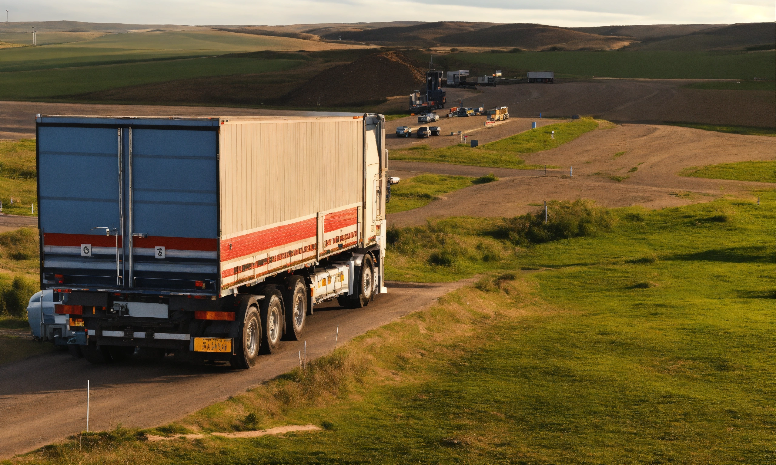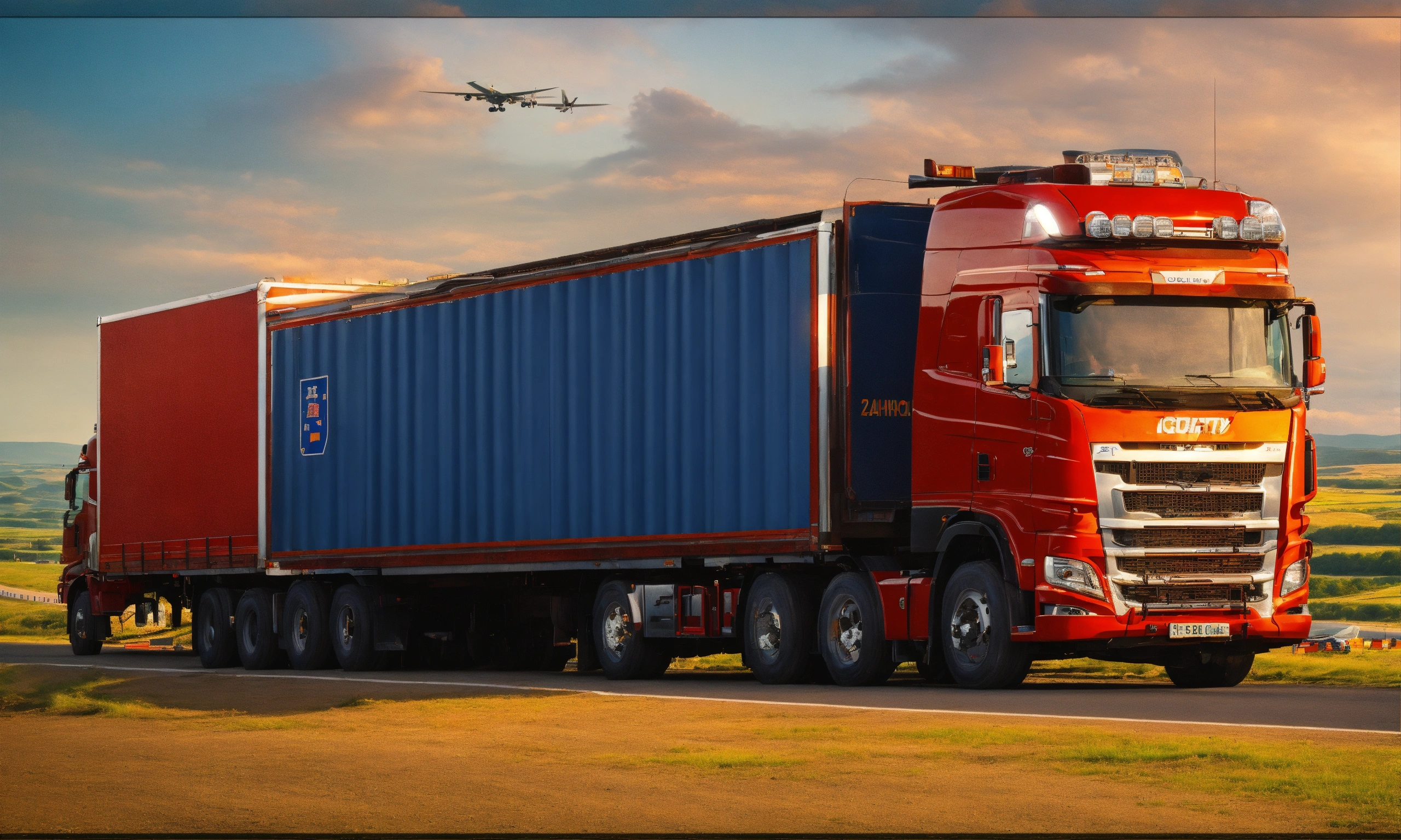 Please create a collage there on the left side is contry border checkpoint and from the right side is truck with gain