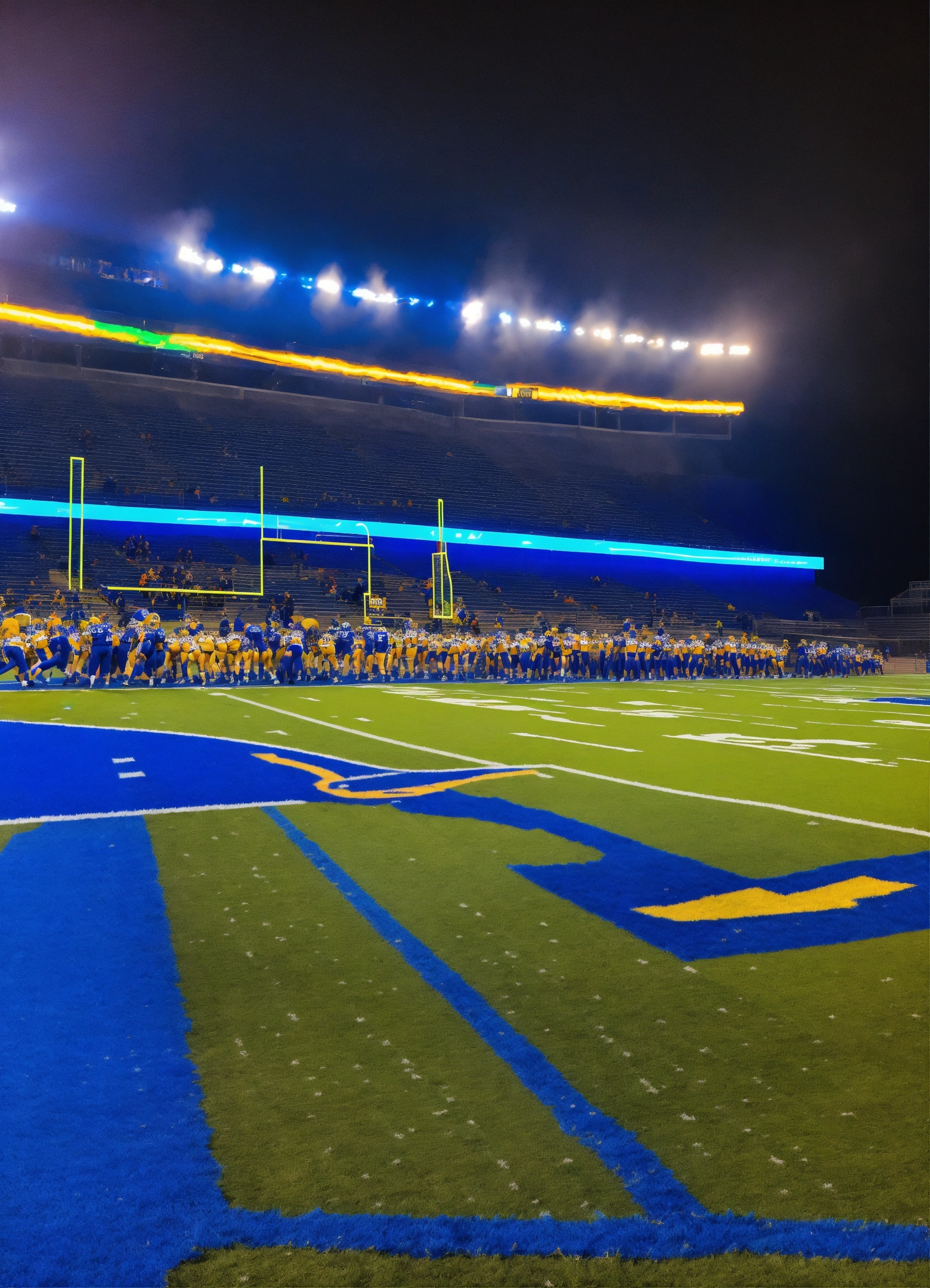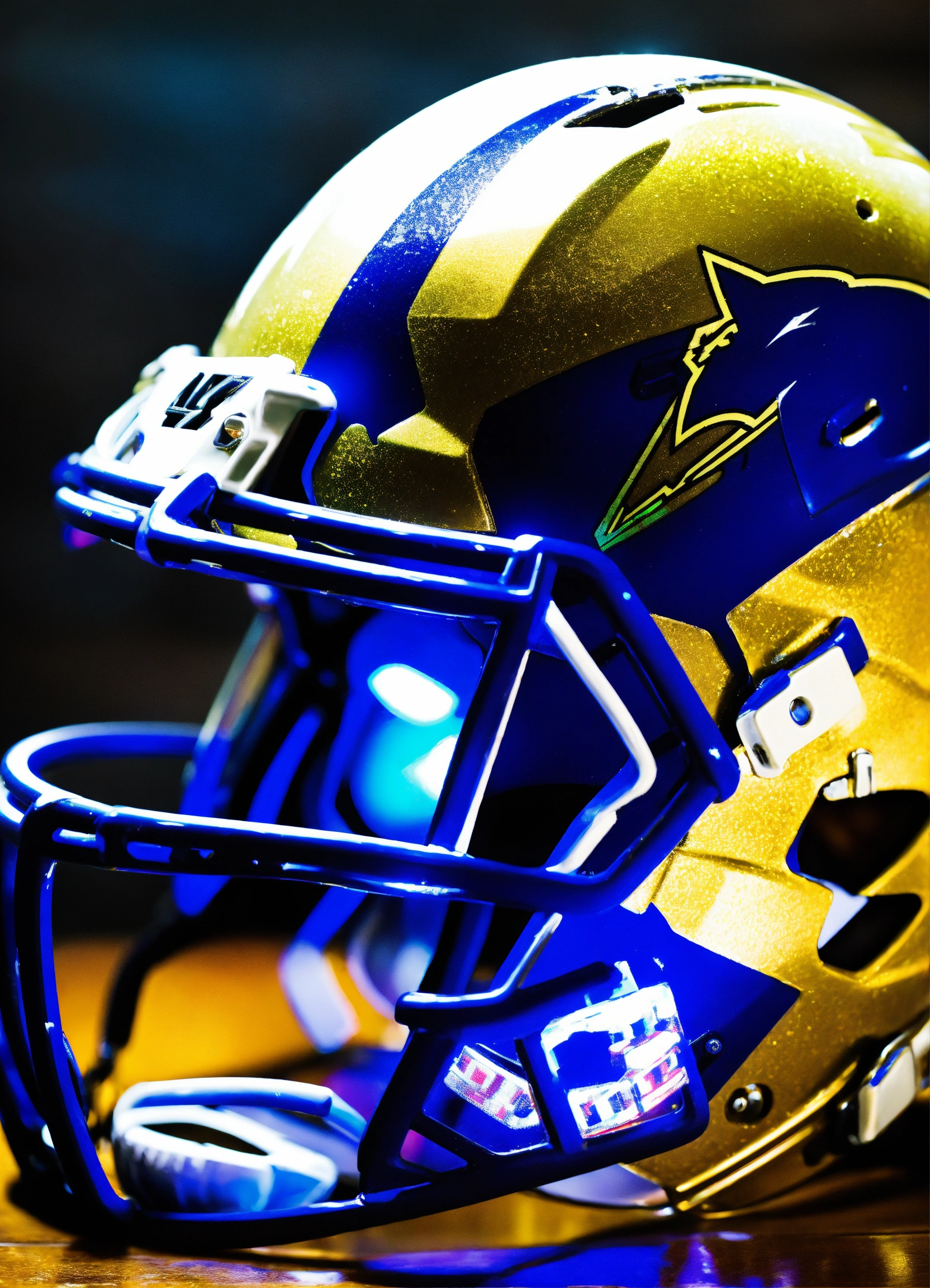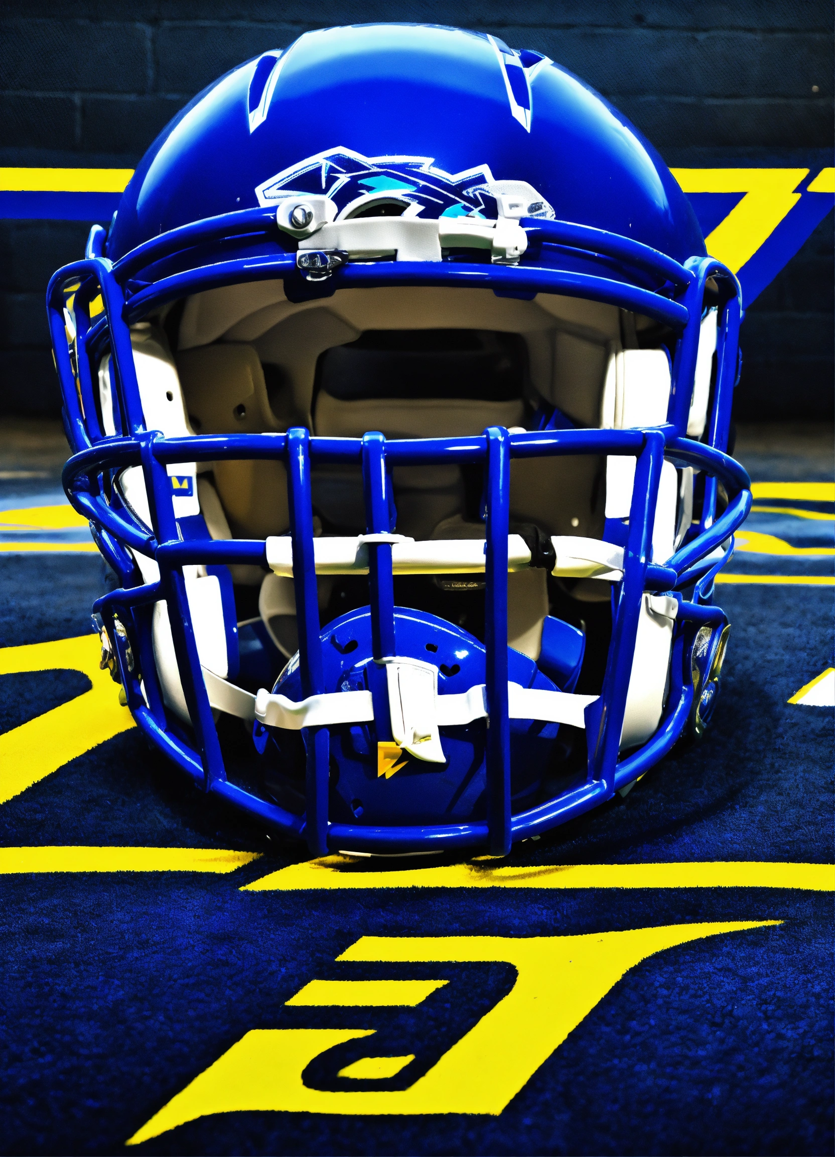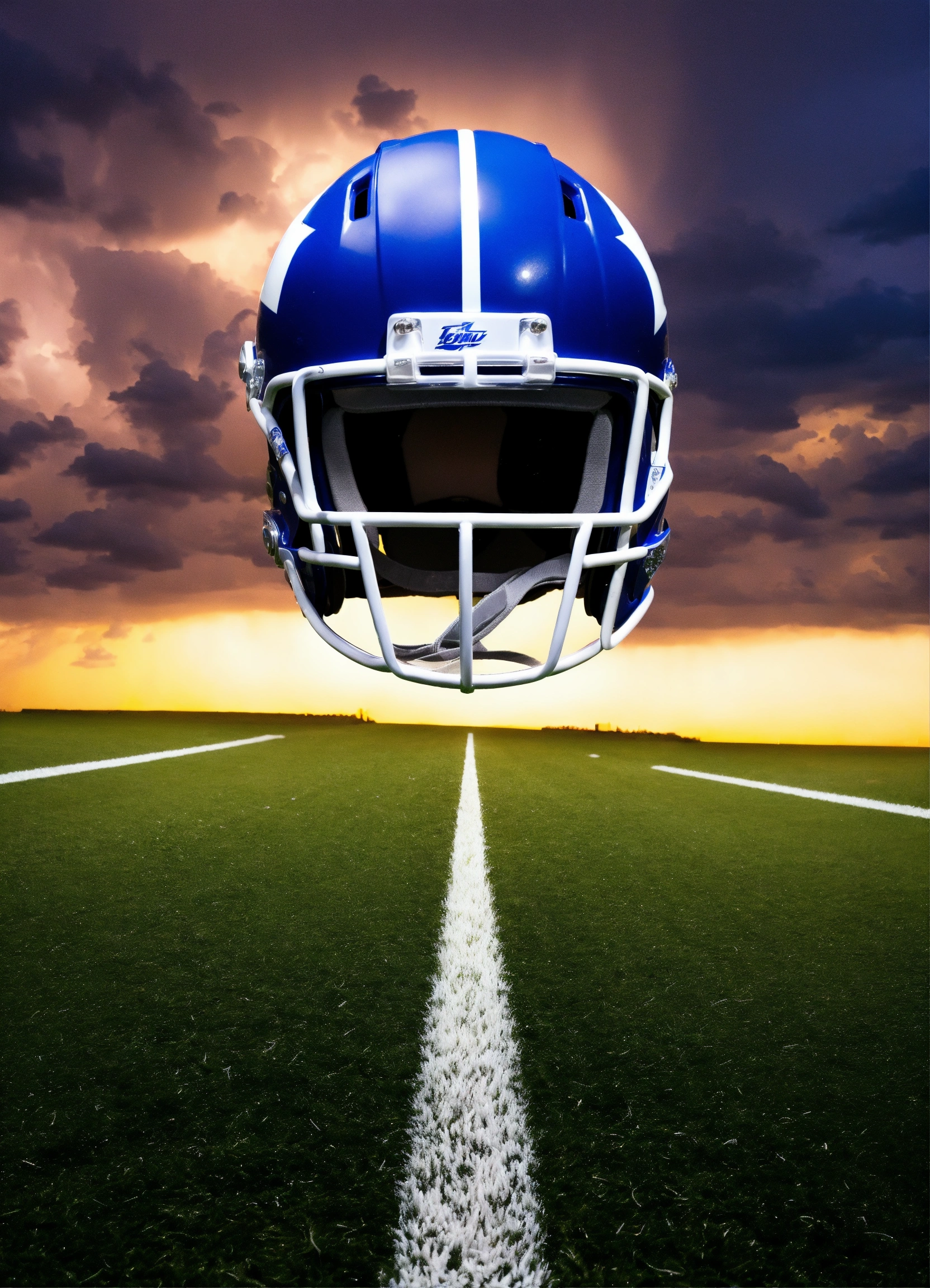 Football game high school rivals lightning vs wild cat neon dem color royal blue and white royal blue helmet with lighting bolt