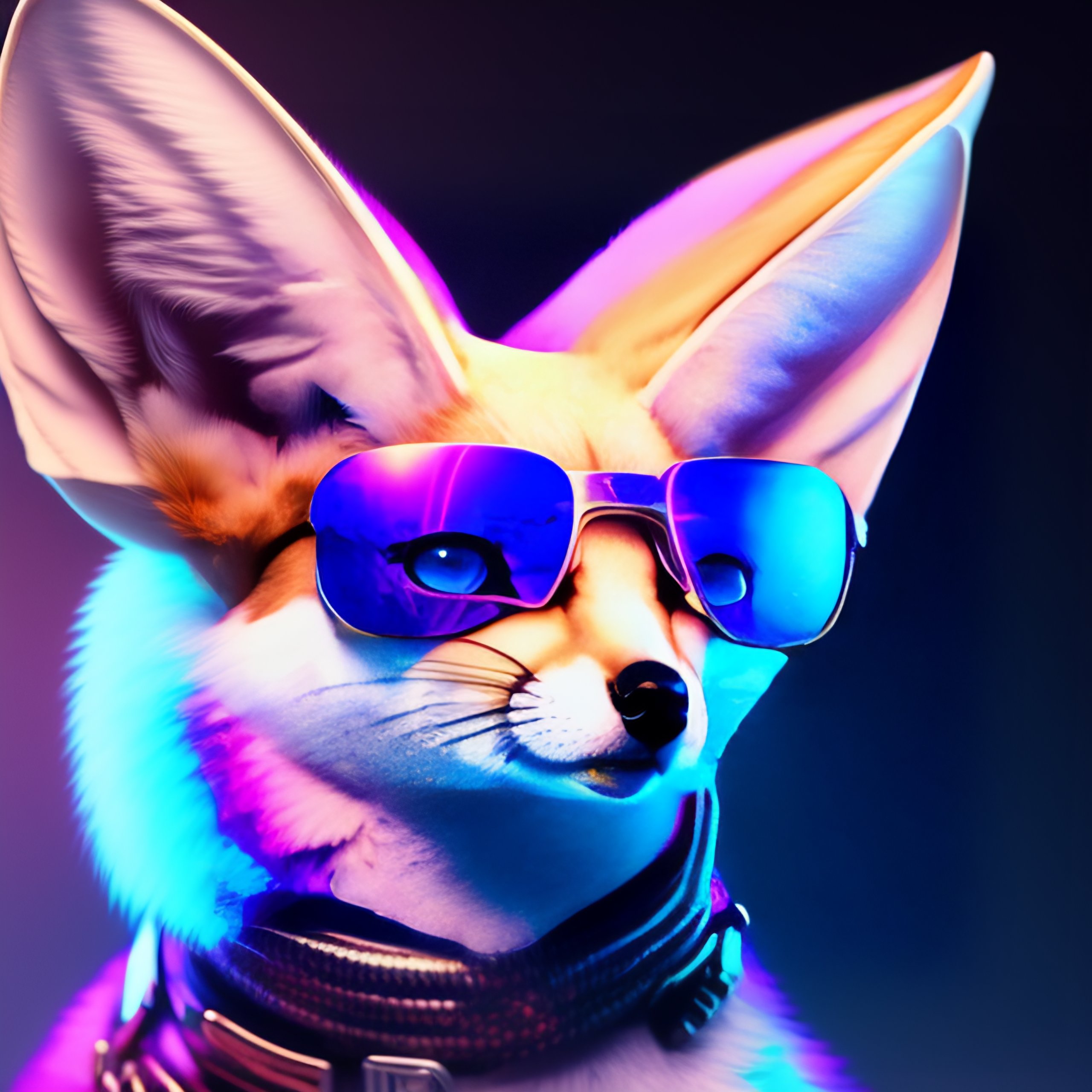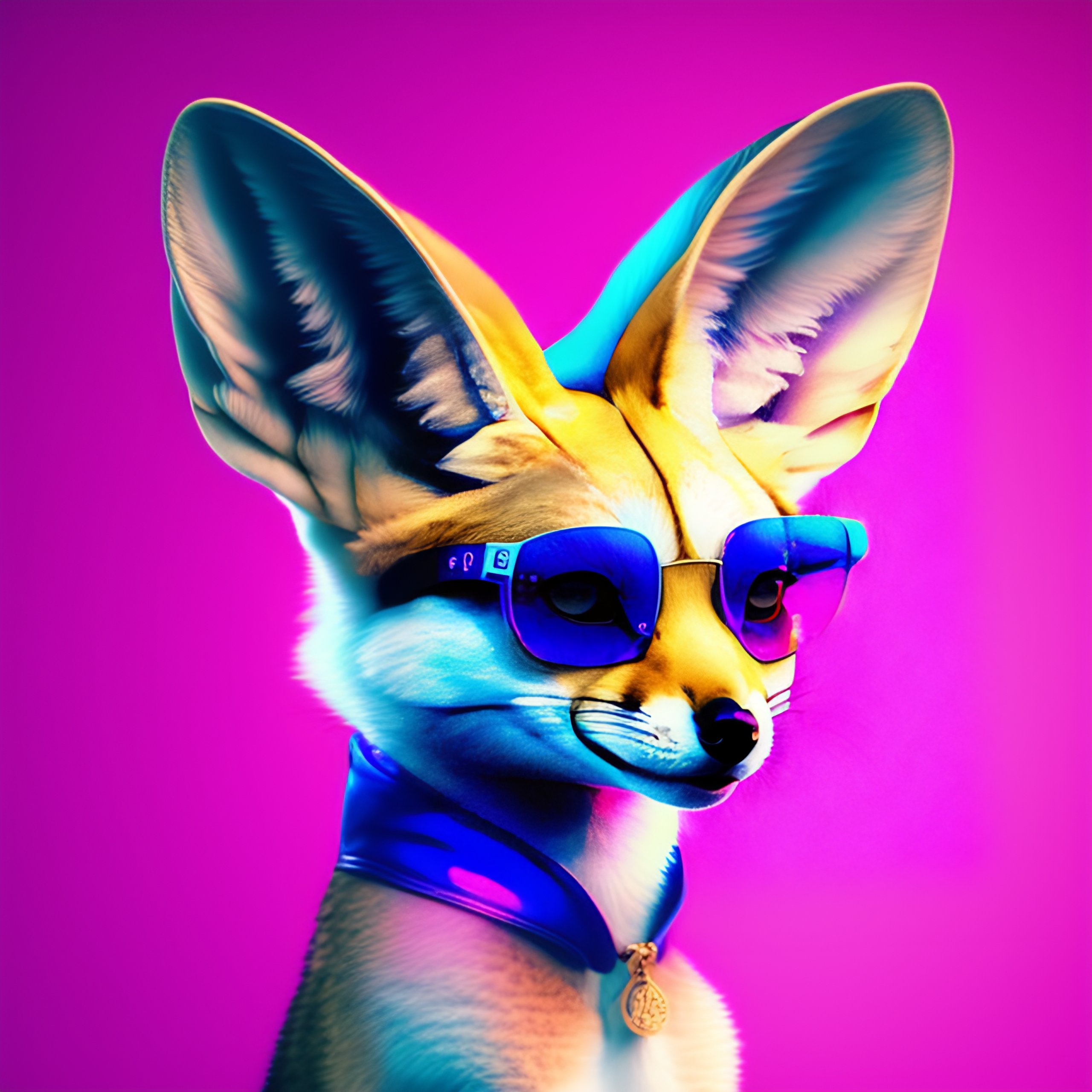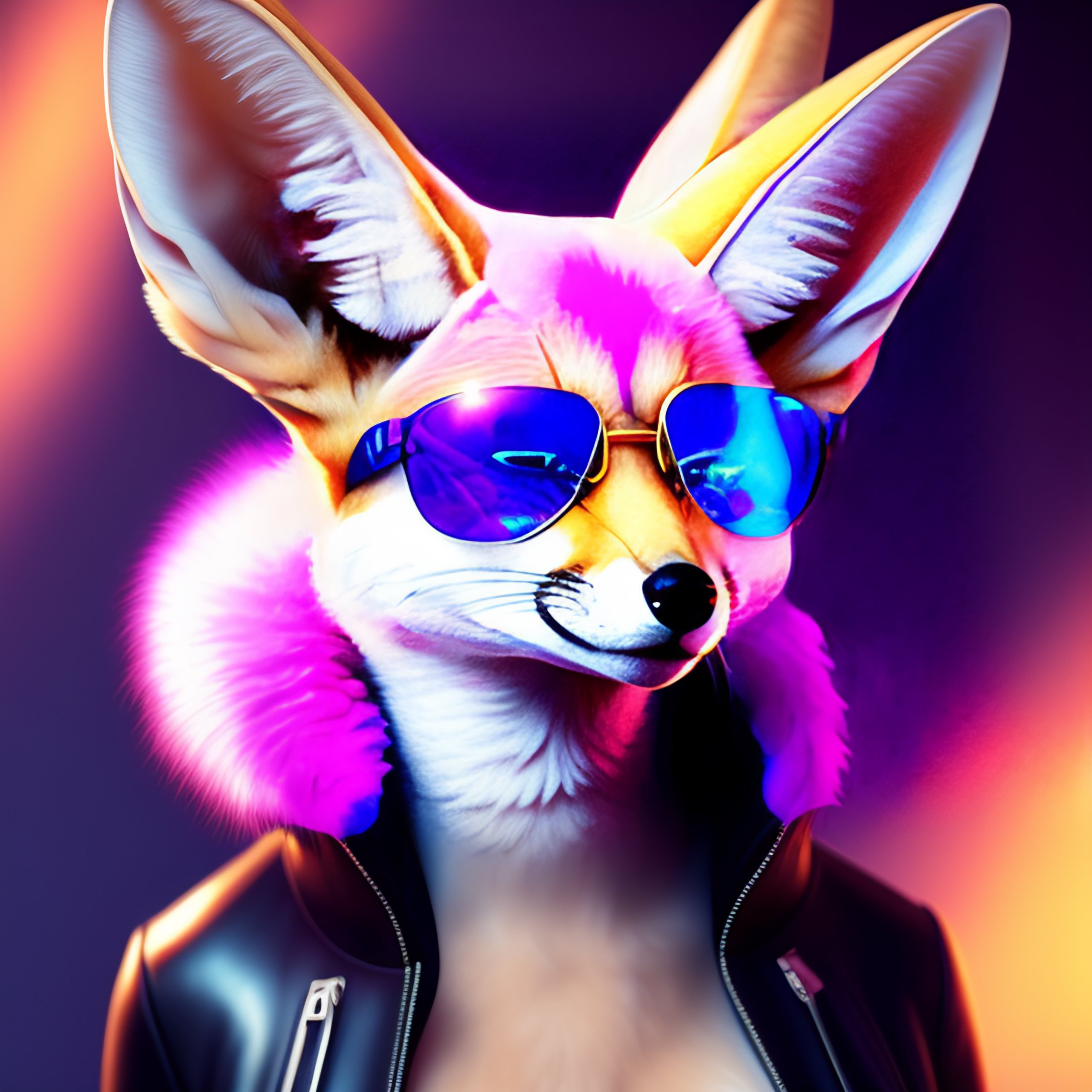 Fennec fox, pink and blue mohawk hairstyle, furry, aviator sunglasses, style, portrait, artstation, award winning, dramatic lighting