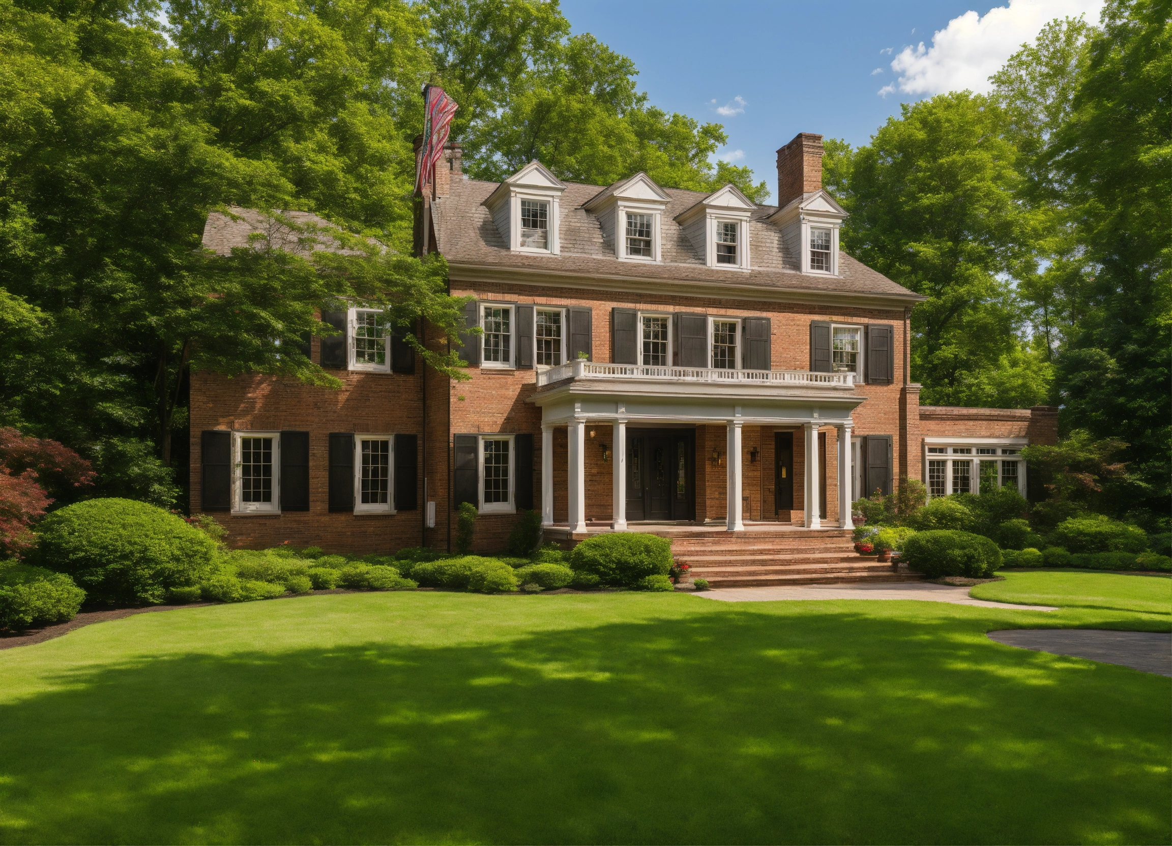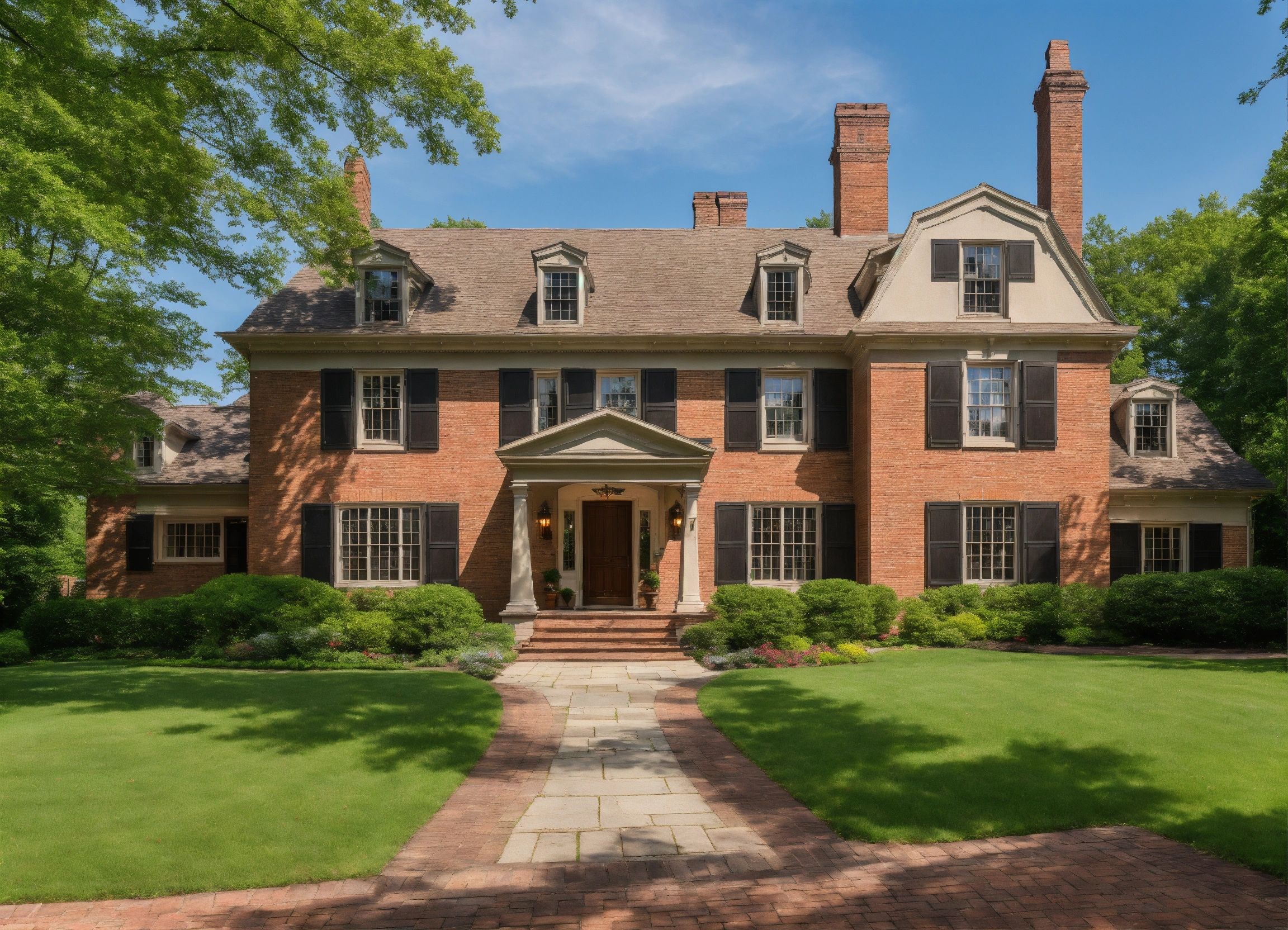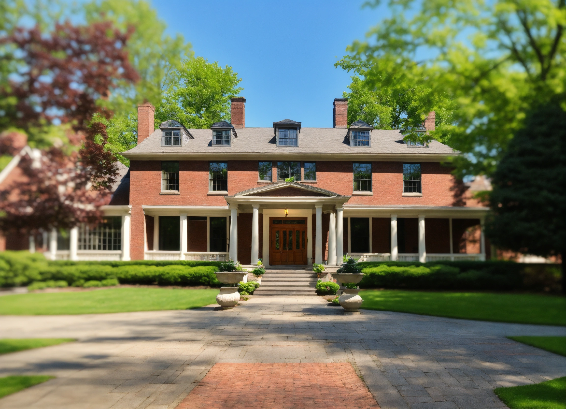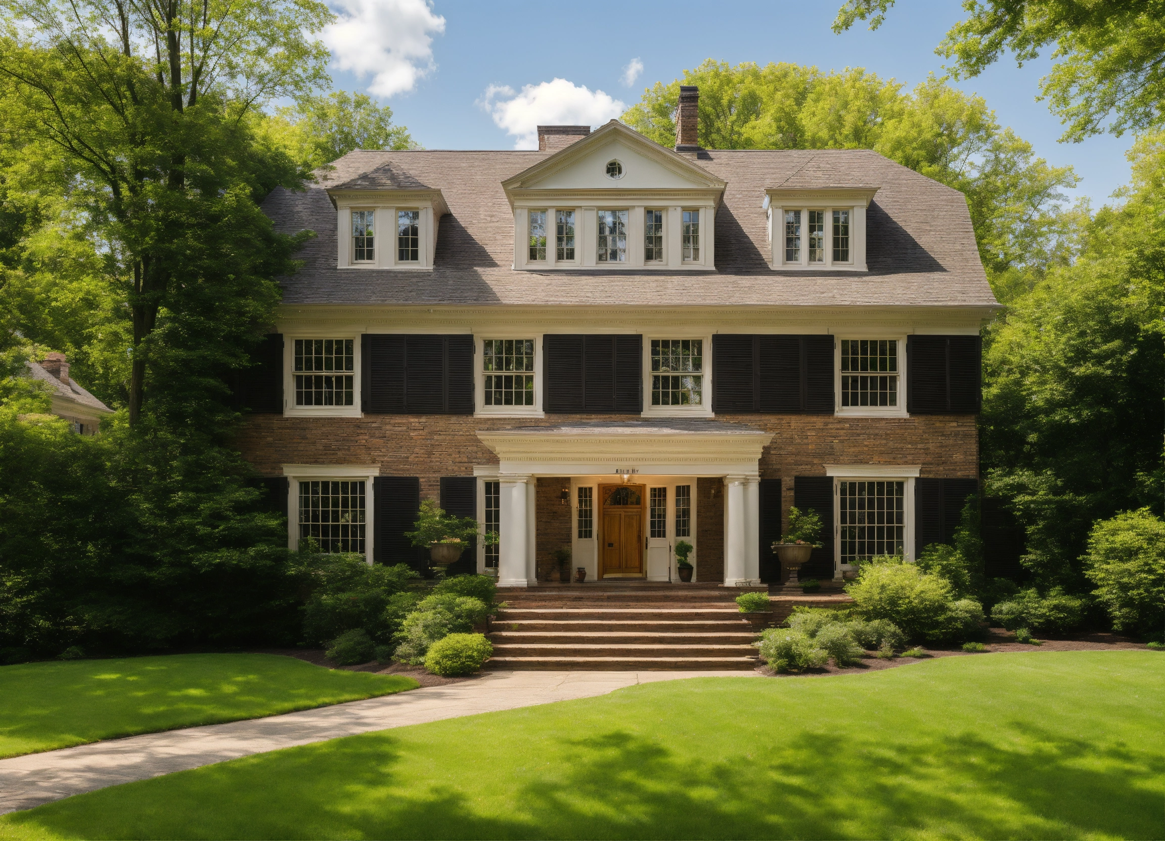 Early 20th century center entry colonial mansion with dormers exterior in shaker heights