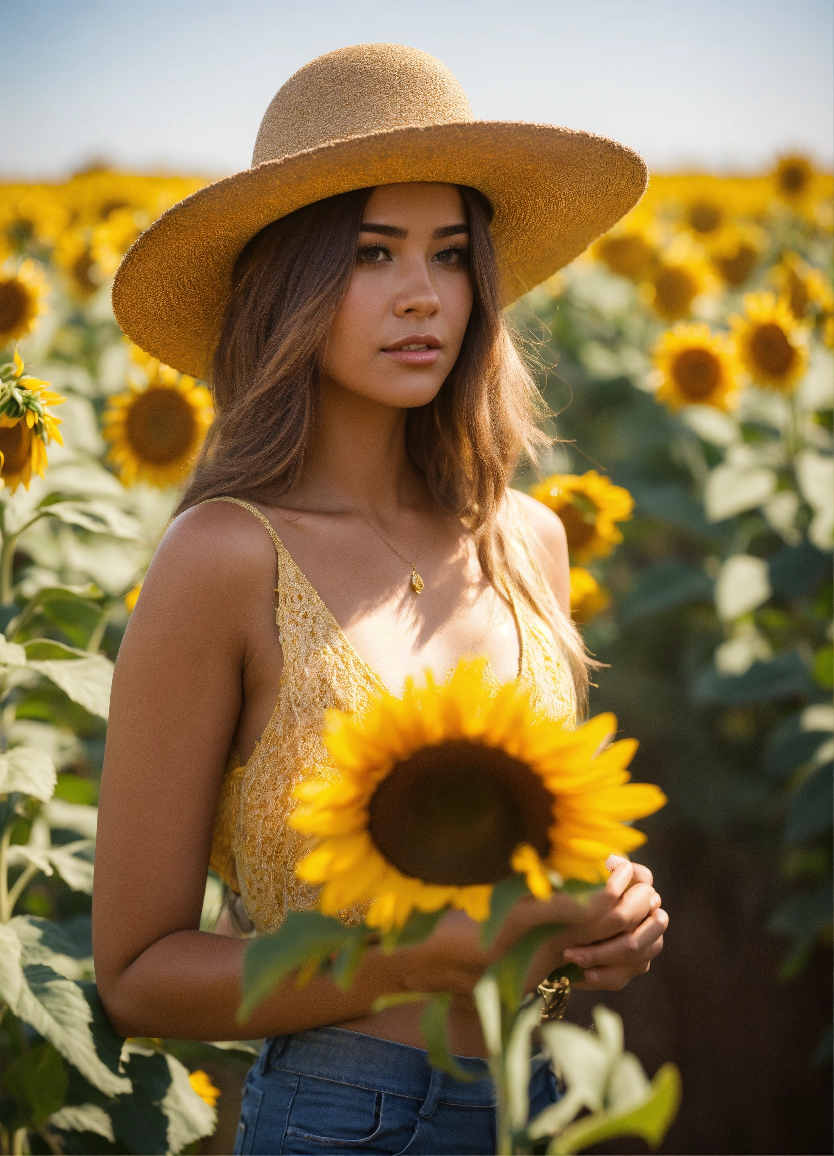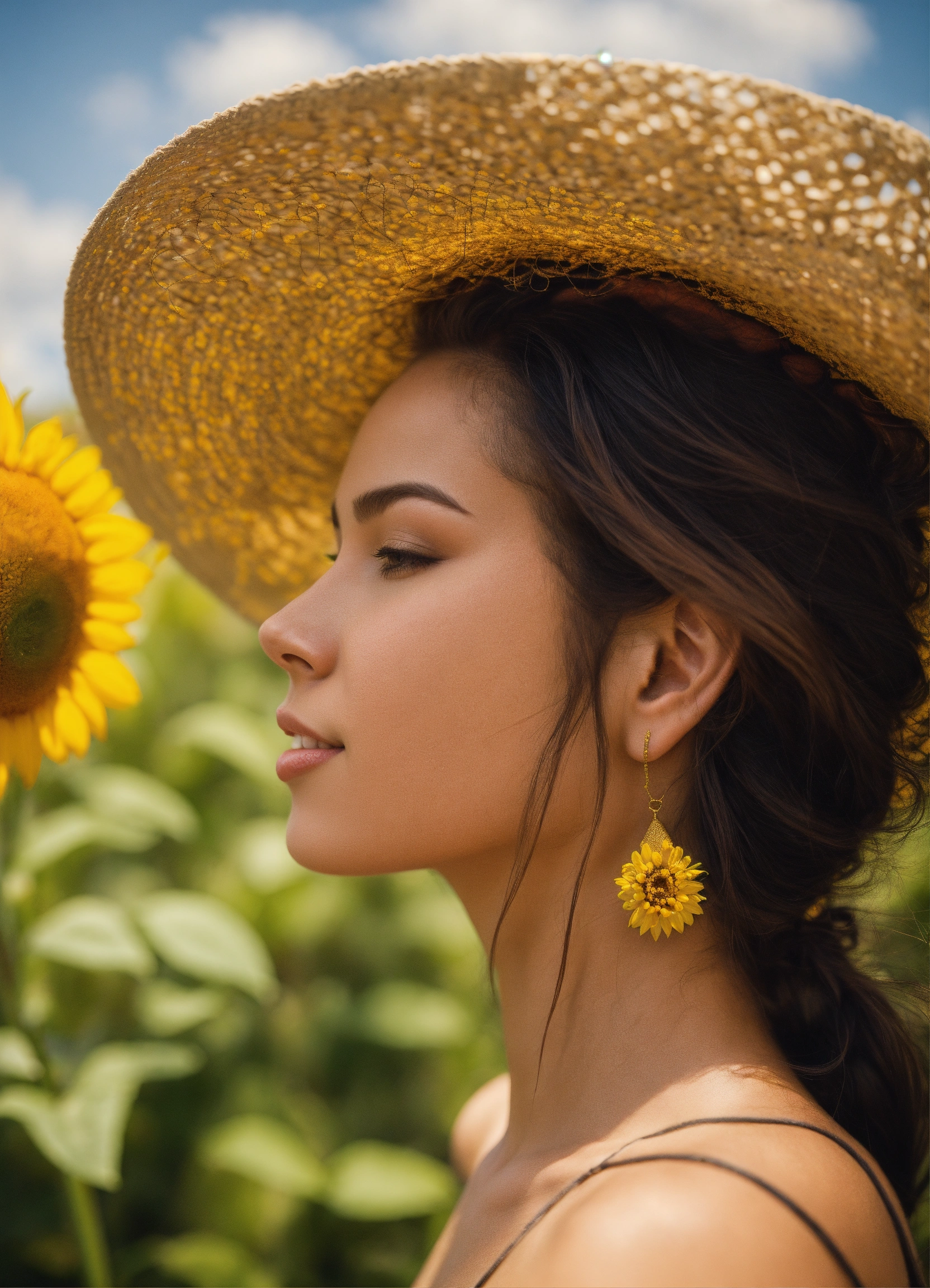 que ella este oliendo un girasol