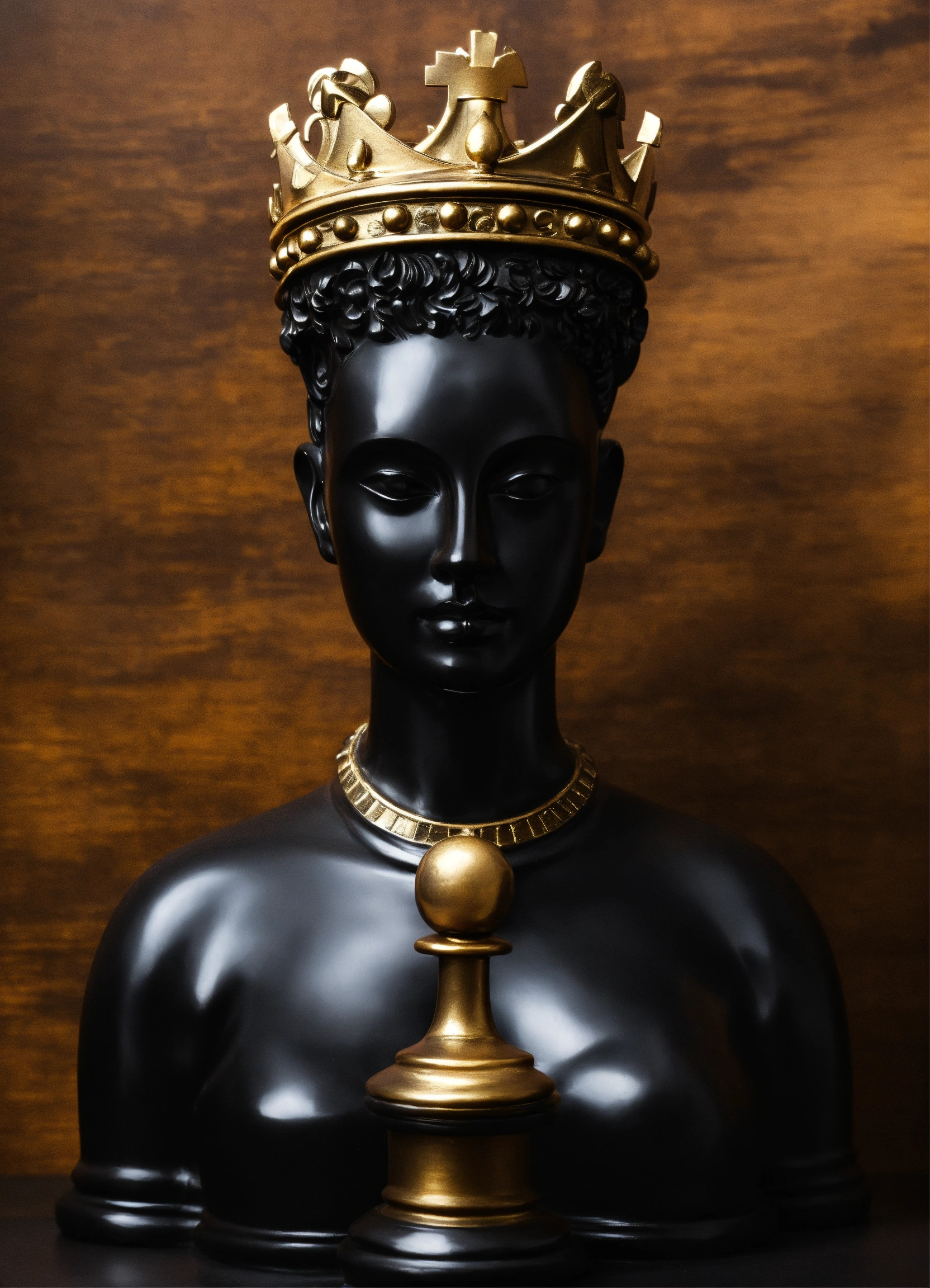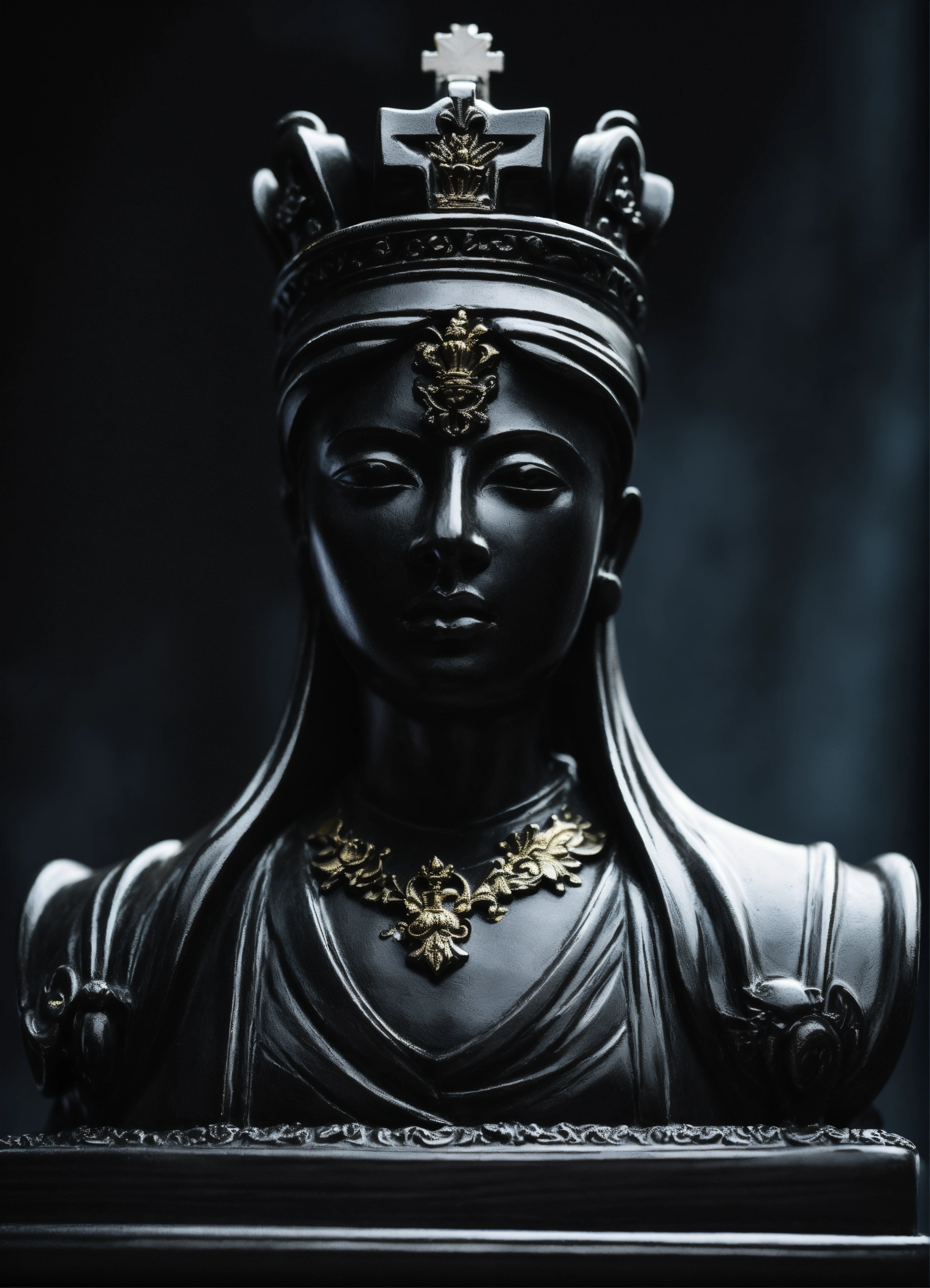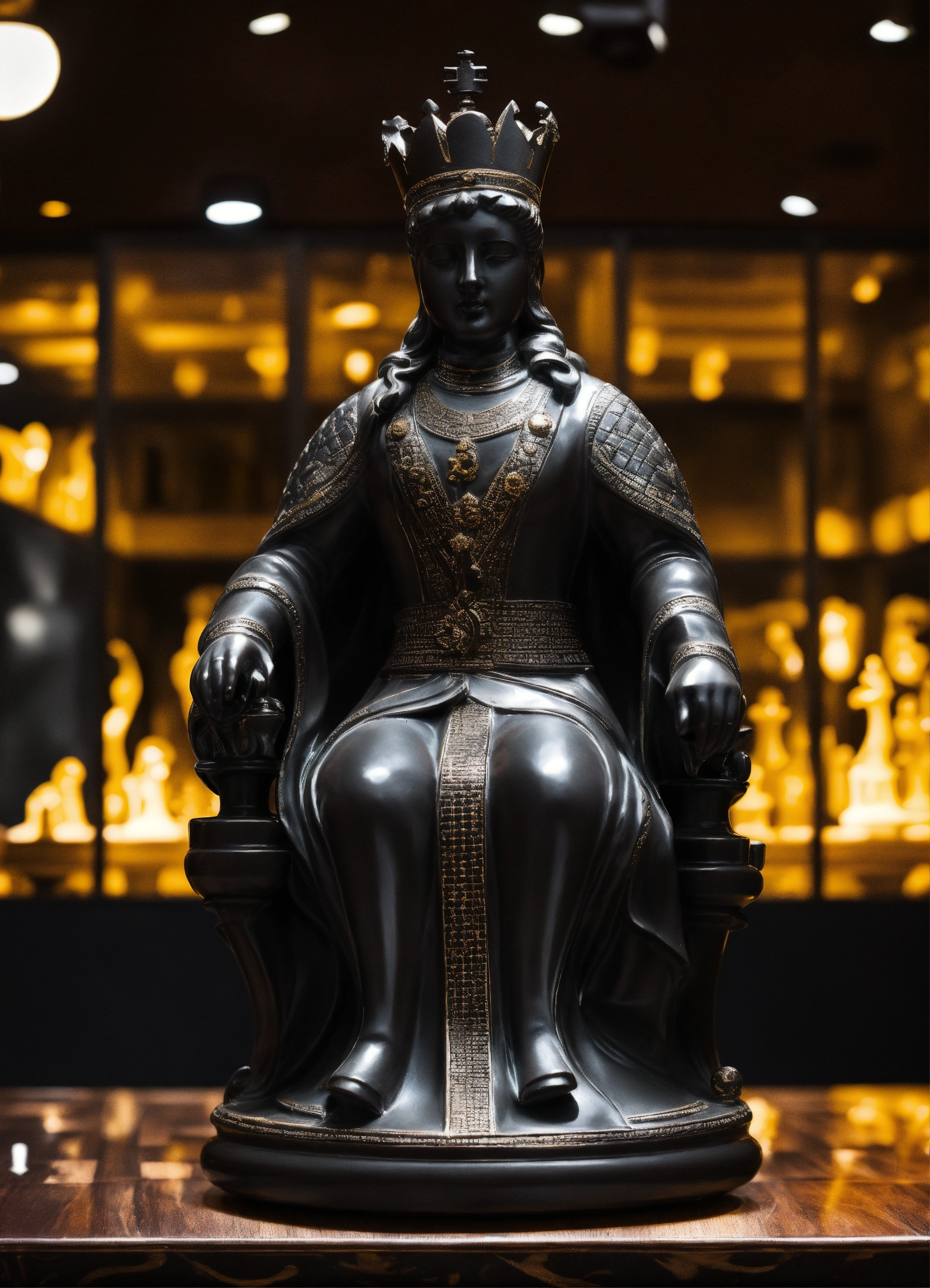 A luxery statue of a chess figur in dark black from the king