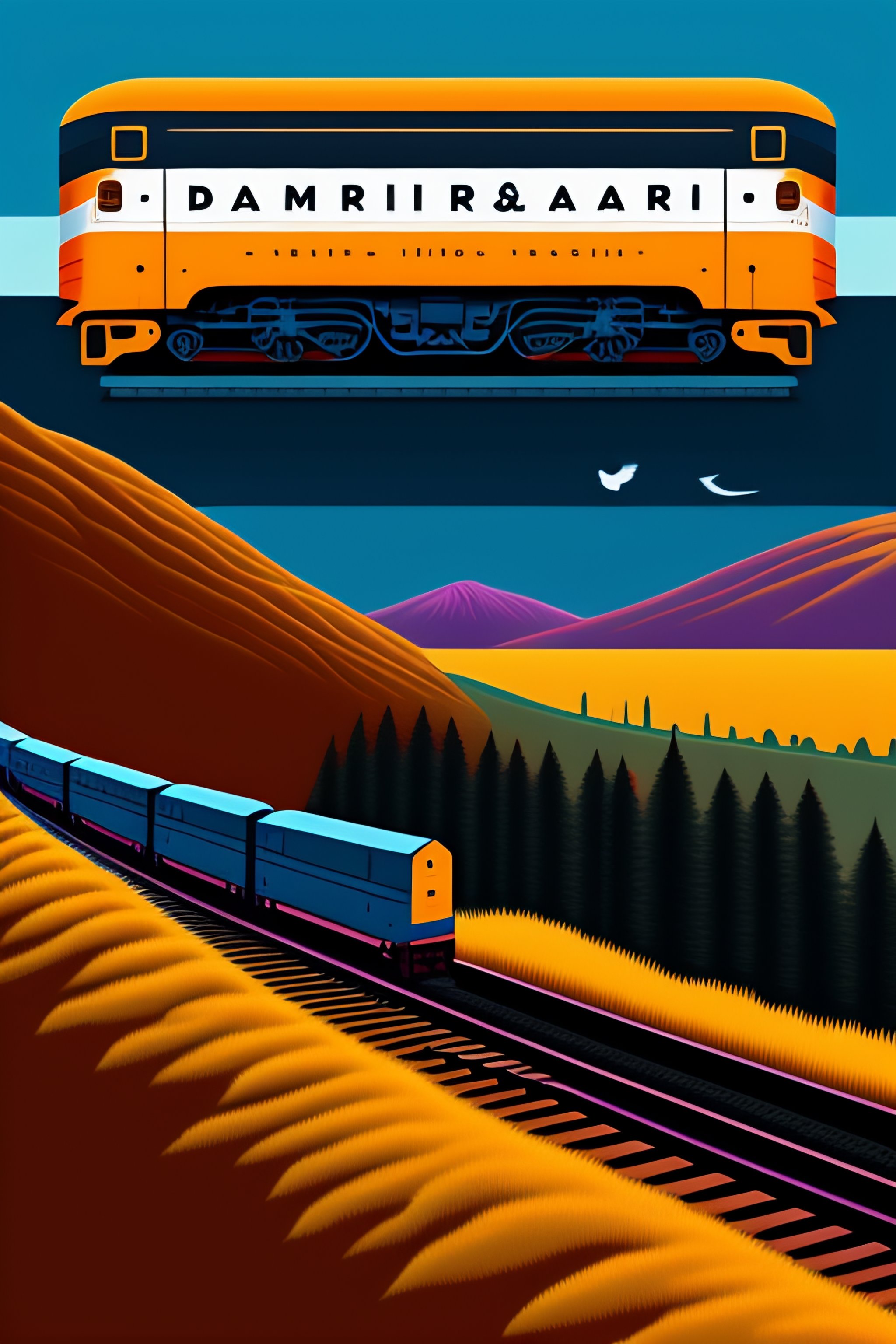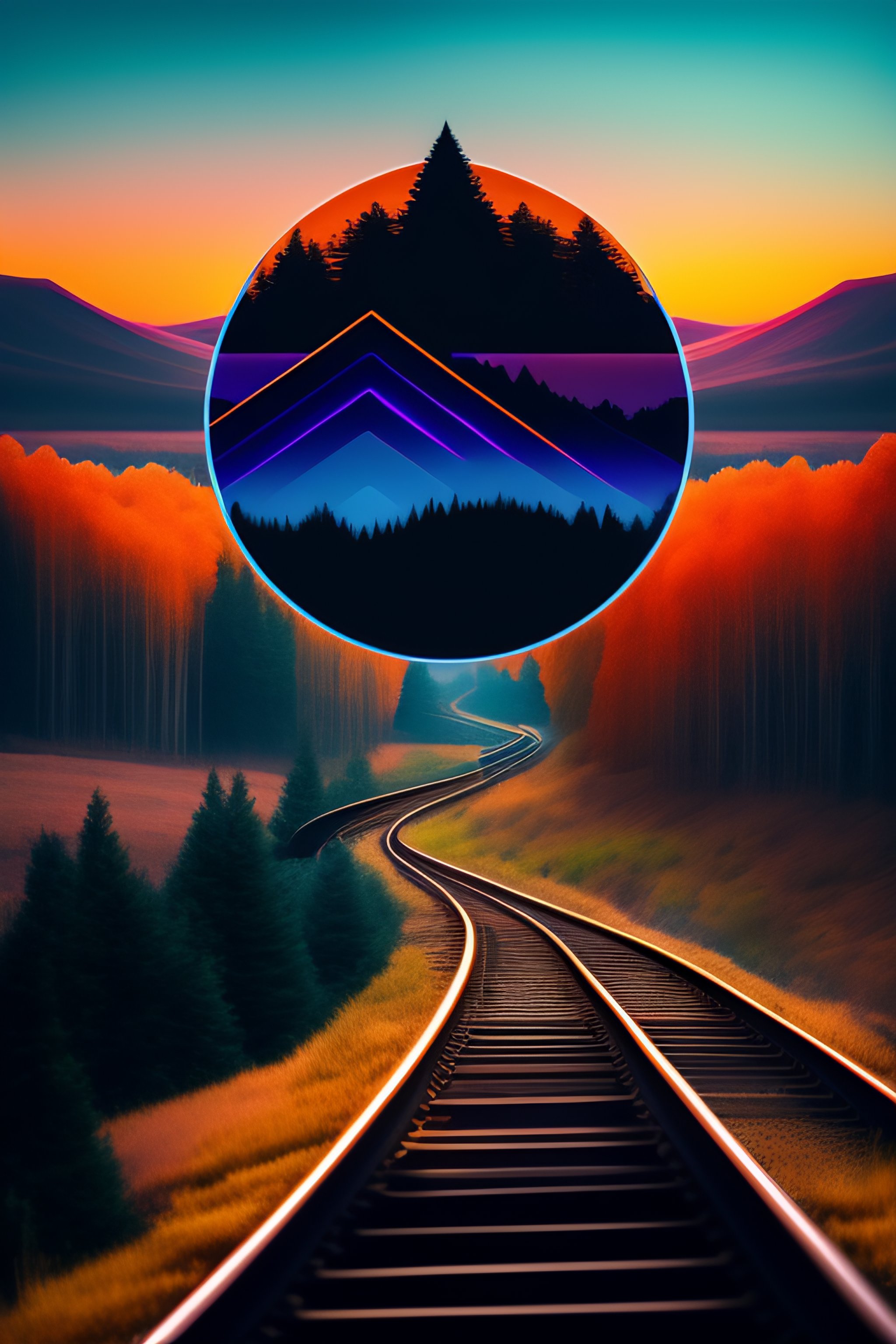 The substack logo over a railroad in american pastoral landscape with writers and floating social media icons in the style of dan mumford, deep background, mysterious, high contrast, a train, publishing, networks, cyan and blue, 8k epic masterpiece