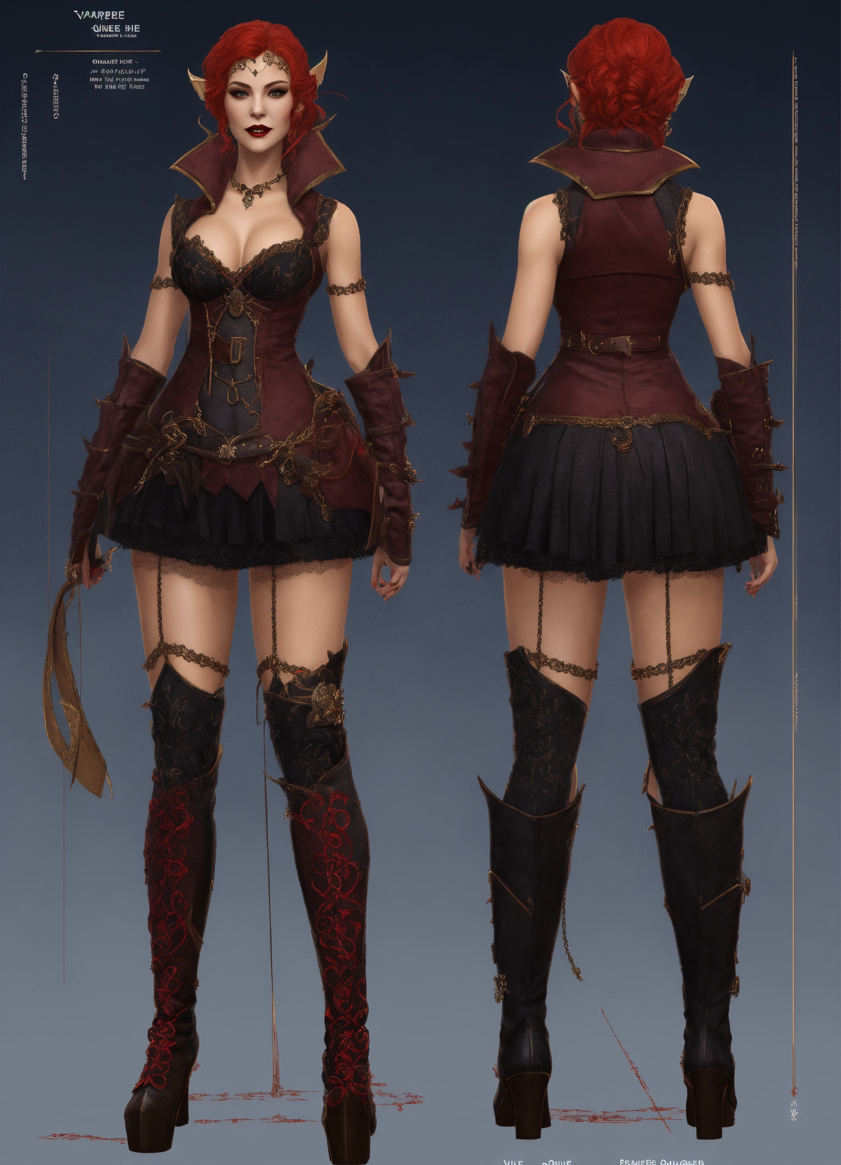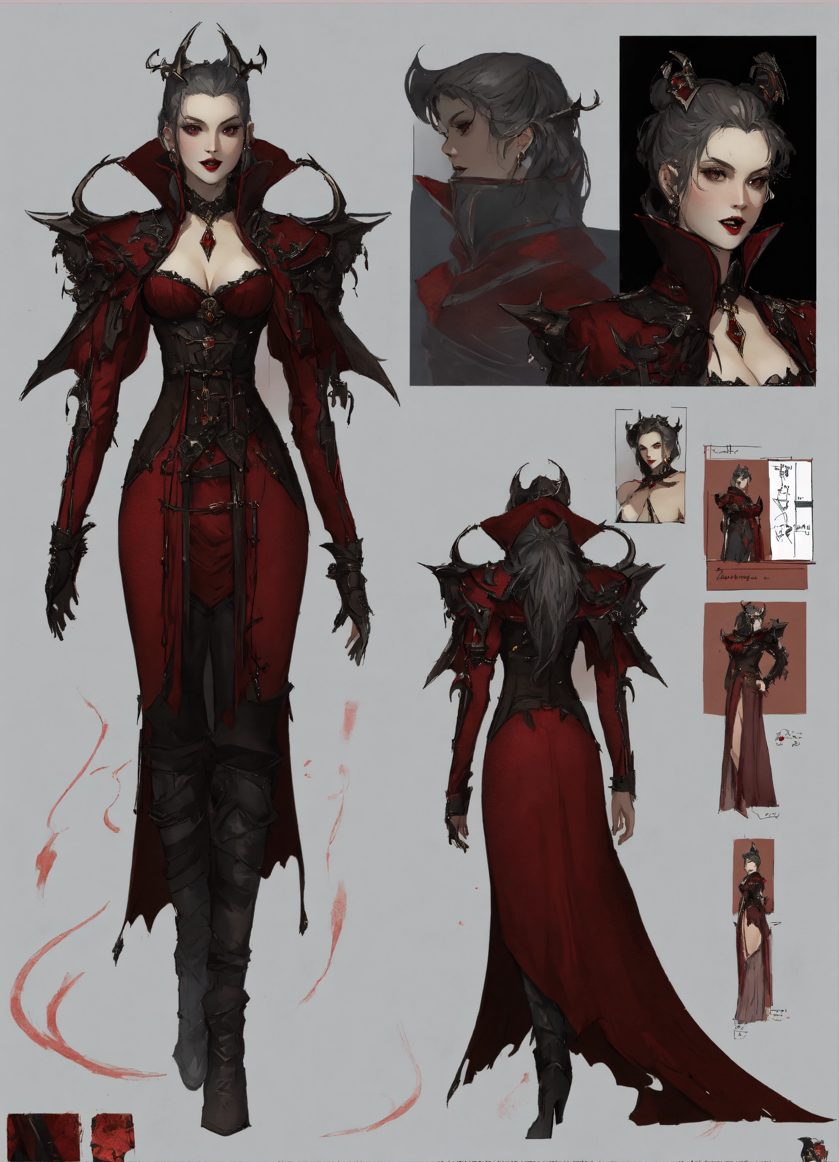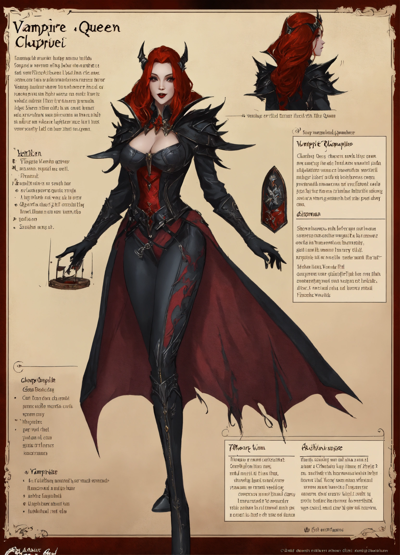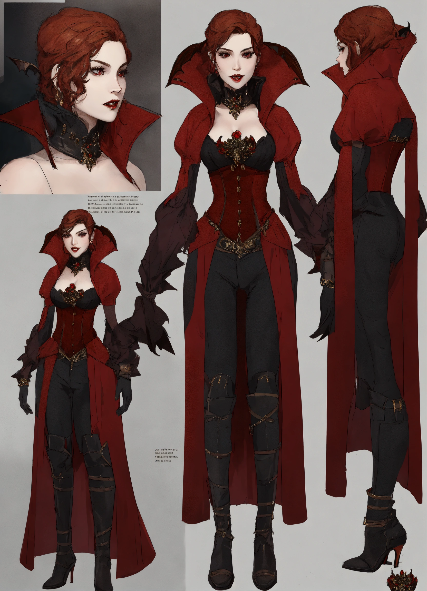 Vampire queen, character sheet, character design, chart, reference sheet, multiple views, high detail, fine details, concept art