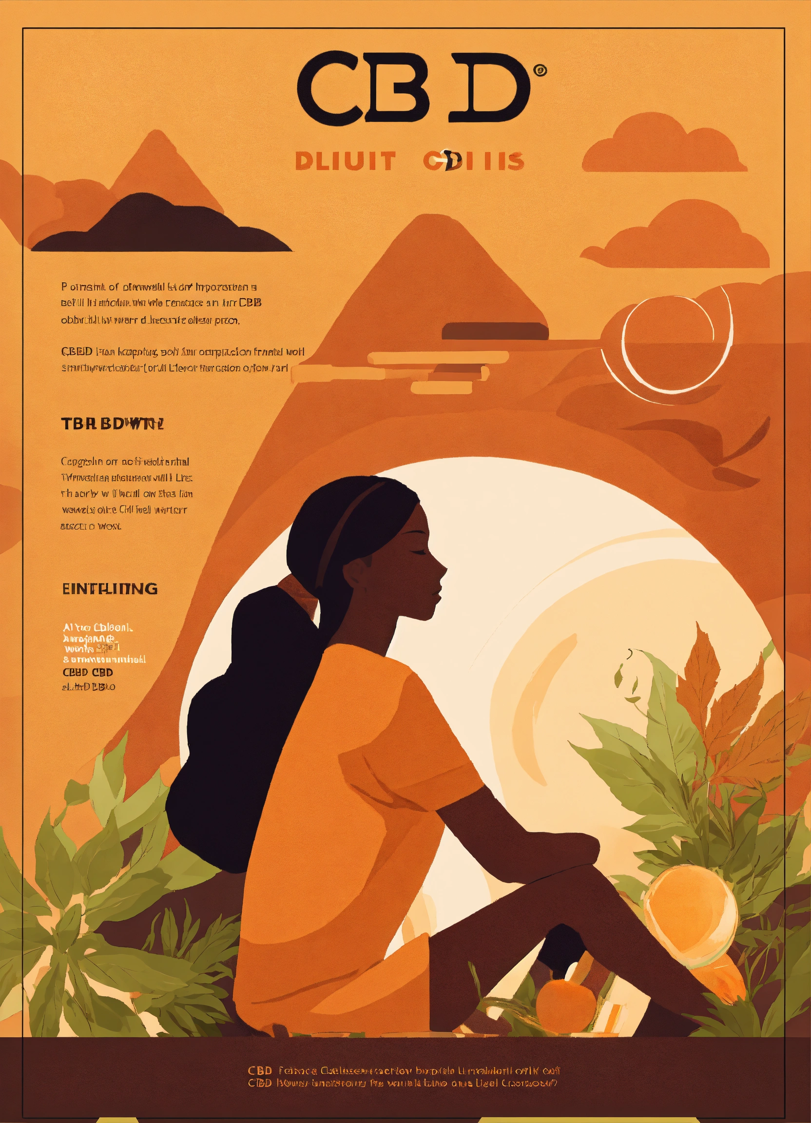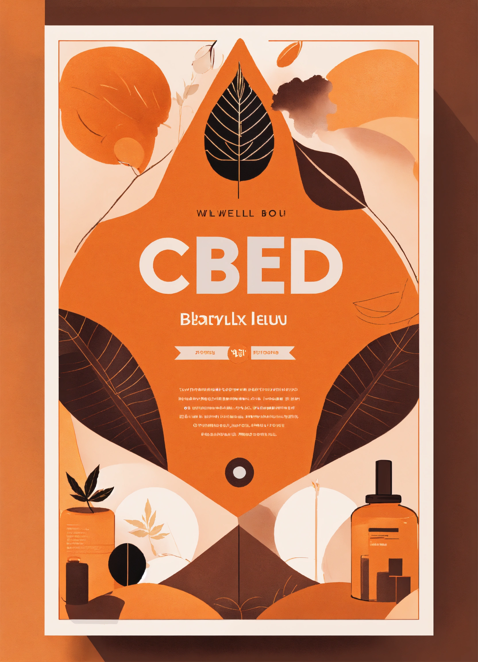 Illustration flyer theme cbd, with orange, brown and black colors, located at the top the logo and below shapes representing an illustration that shows the well being.