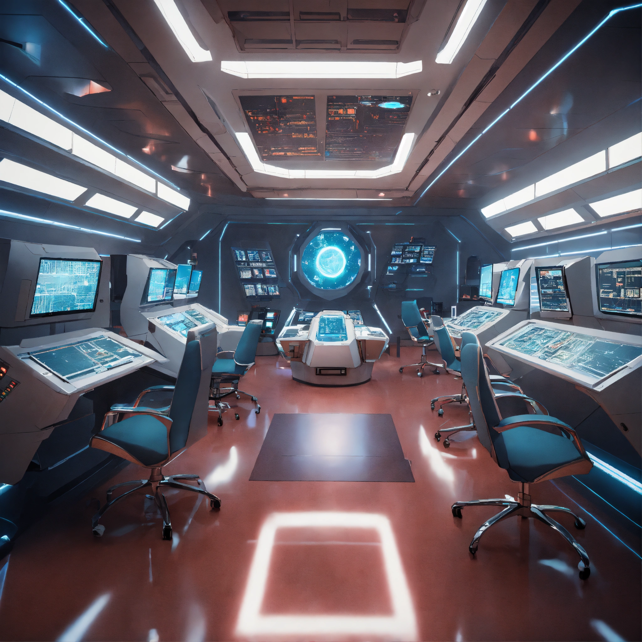 The interior of a futuristic time-traveling spaceship. the scene depicts the control room, a spacious area filled with control panels and computers illuminated by bright and futuristic lights. screens display route calculations and holographic projections. it is clearly identifiable as a futuristic medical vessel, with the presence of illuminated medical crosses emitting a soft and soothing glow. although the scene lacks characters, it should evoke a dynamic and active atmosphere. see chairs. main color is white, soft medical space ship. a three-quarter perspective with significant depth of field
