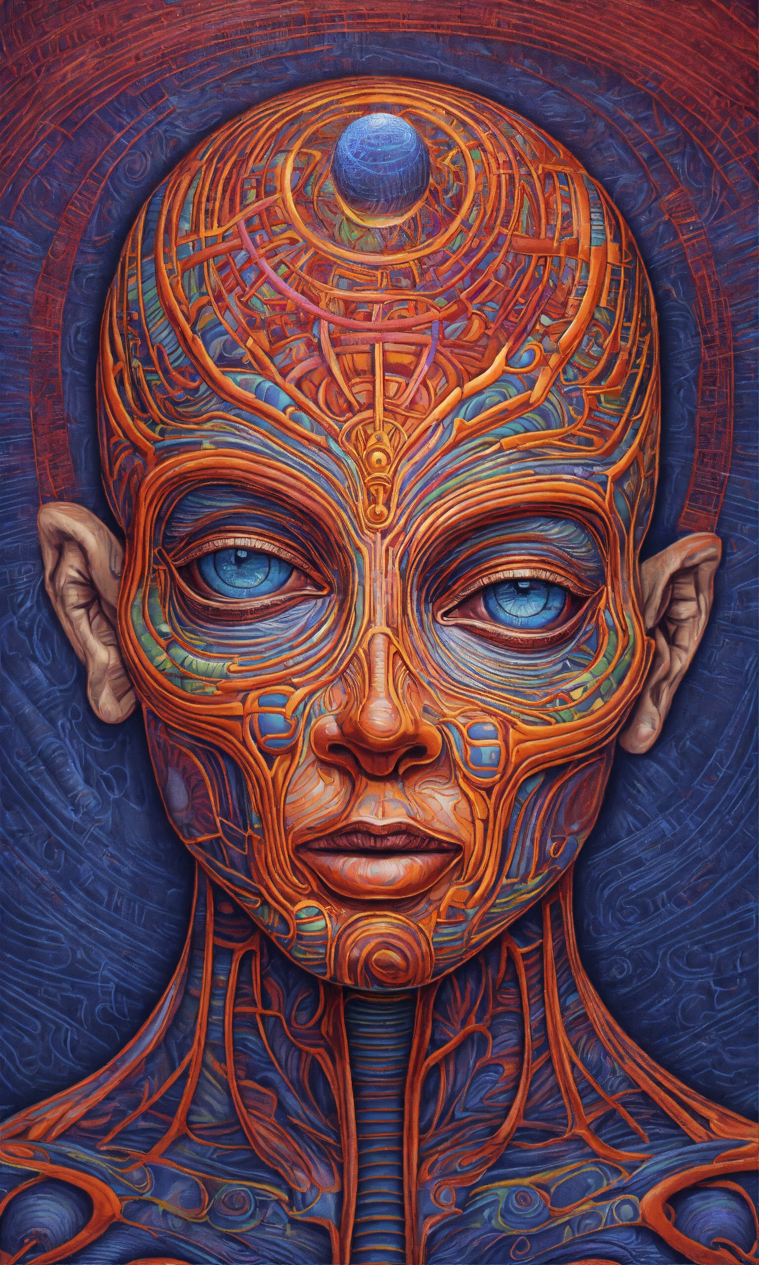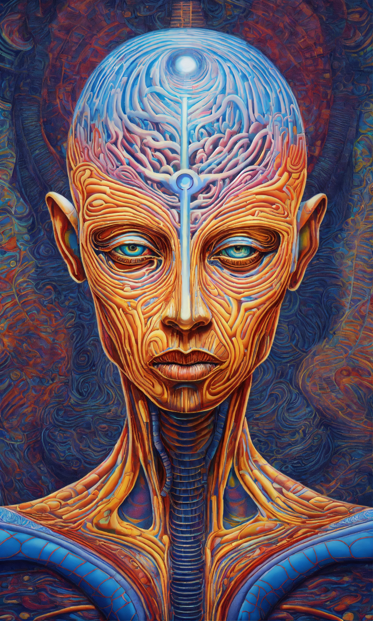 Generate an illusion of reality in the art style of alex grey, realistic, high detail, detailed linework, sharp lines, aliens