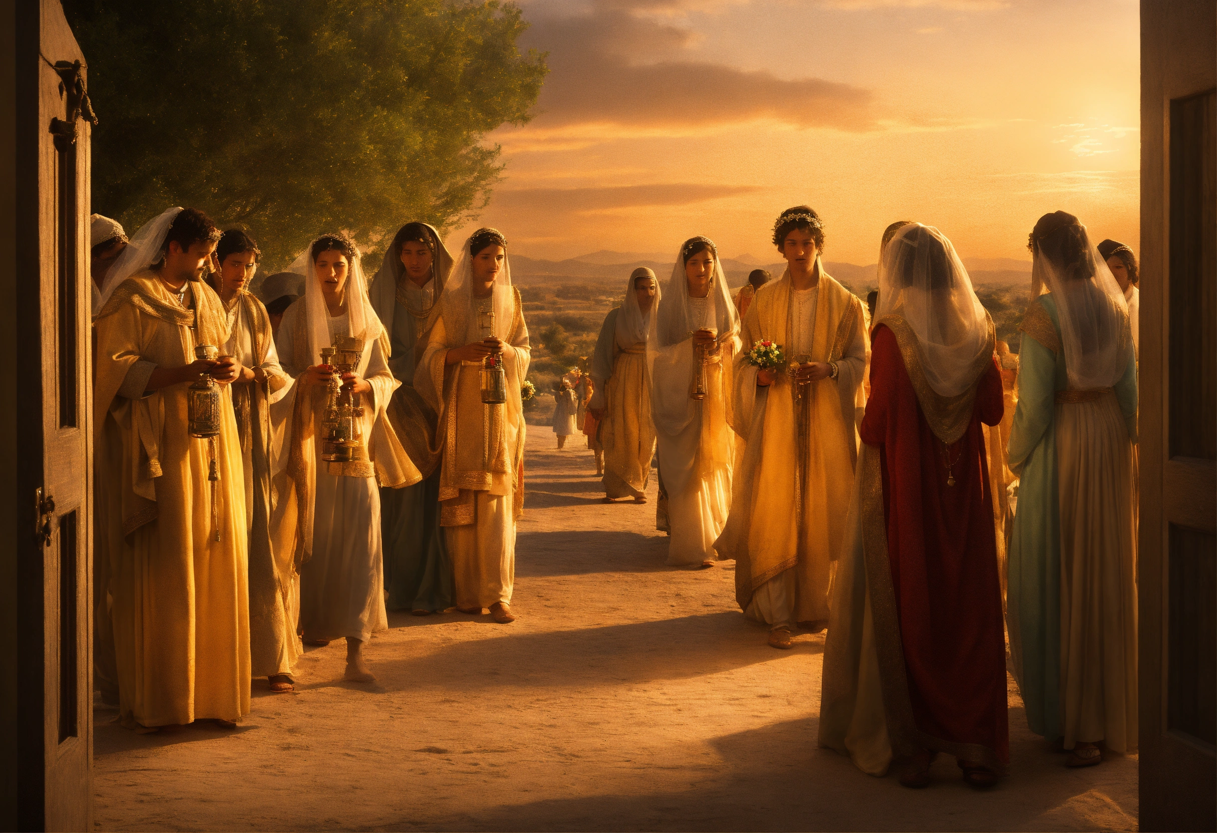 The kingdom of heaven will then be like ten virgins who took their lamps and went out to meet the bridegroom. 2five of them were foolish, and five were wise. 3the foolish took their lamps, but they took no oil. 4the wise ones, however, took oil in jars, along with their lamps. 5the bridegroom was late in arriving, and everyone felt drowsy and fell asleep. 6"at midnight, a cry was heard 'the bridegroom is approaching! go out and meet him!' 7"then all the virgins woke up and prepared their lamps. 8the foolish said to the wise, 'give us some of your oil, for our lamps are going out.' 9"they replied, 'no, because there may not be enough for us and you. go buy oil for yourselves.' 10"and as they went out to buy oil, the bridegroom arrived. the virgins who were prepared went in with him to the wedding banquet. and the door was closed.