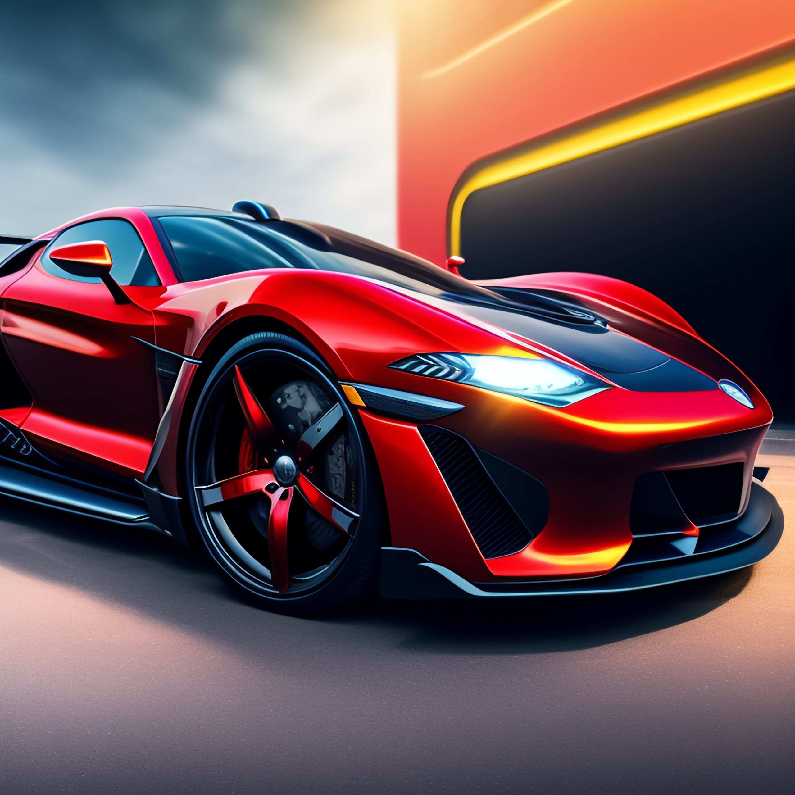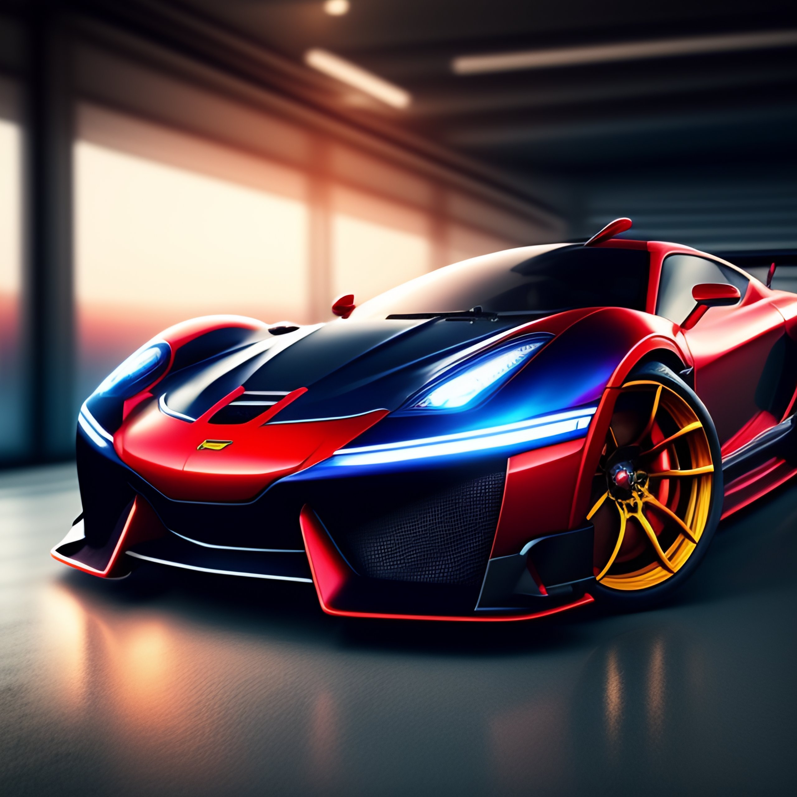 Spider-man style car, 3d concept car, car stands full-length in the center, marvel cartoon style, garage background, high detail, high realism