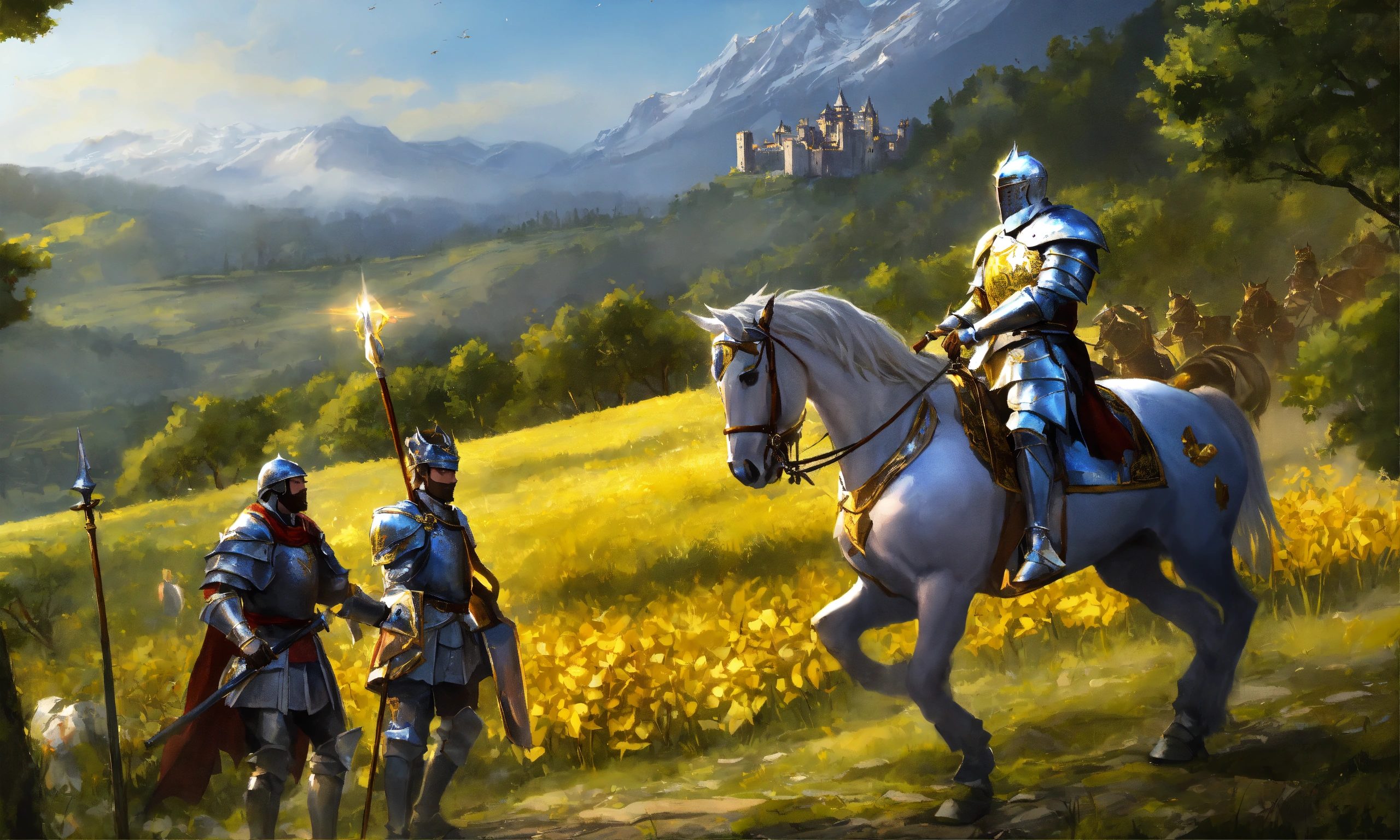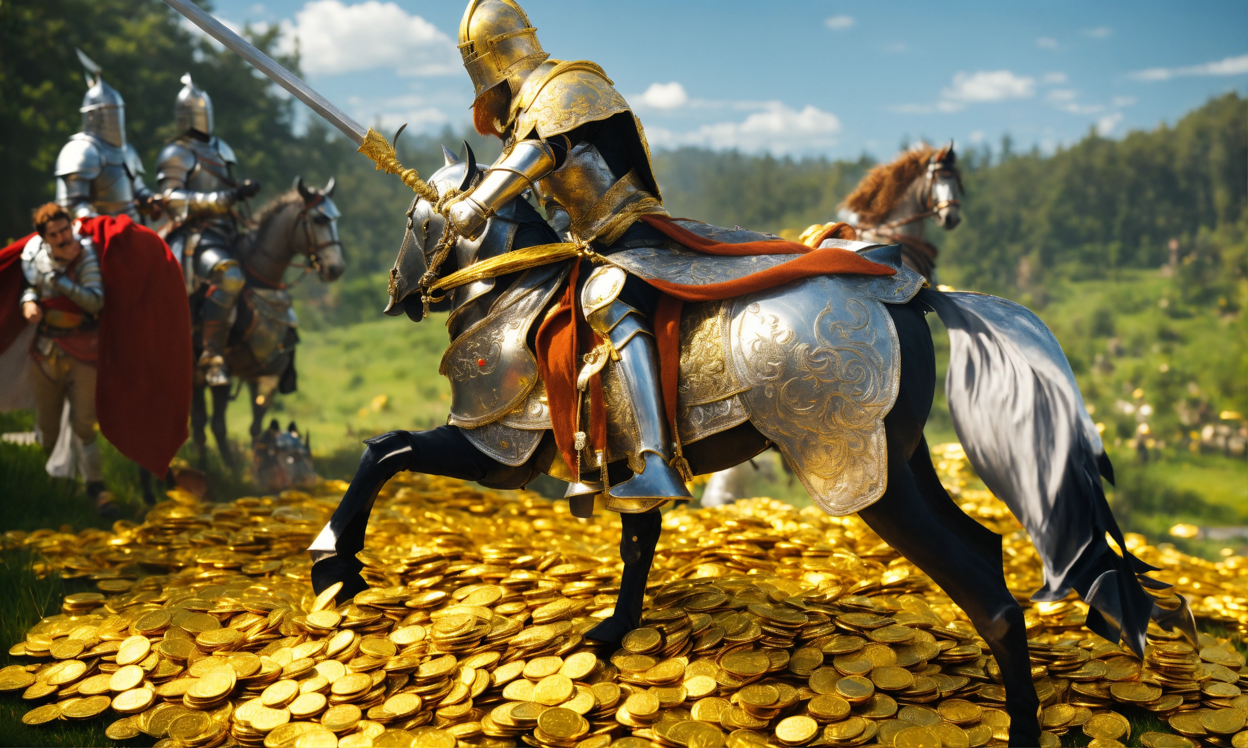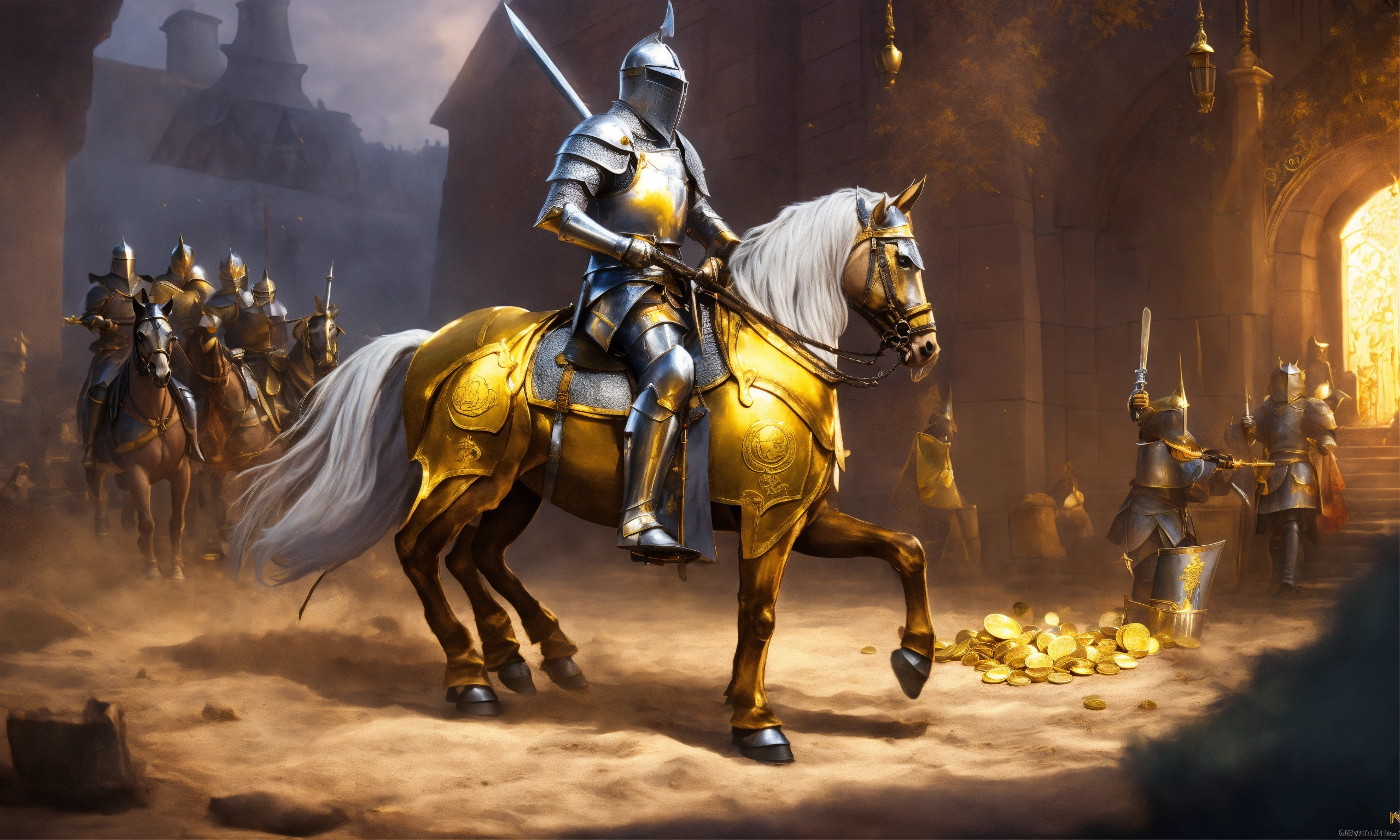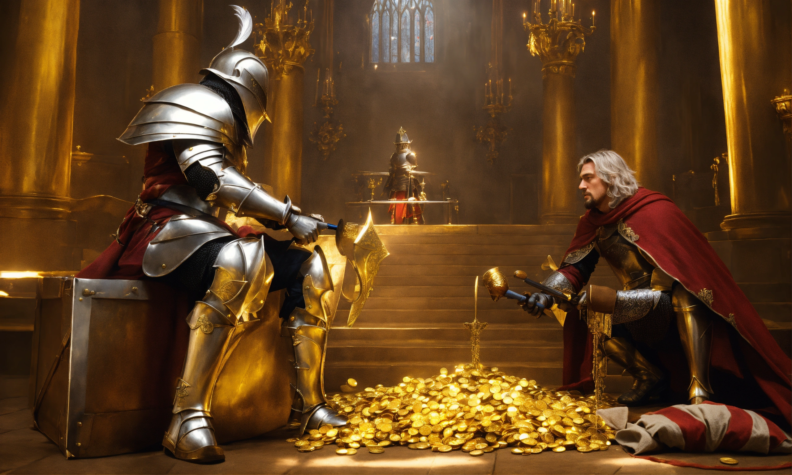 Noble silver knight gets paid a bag of gold by a king to hunt