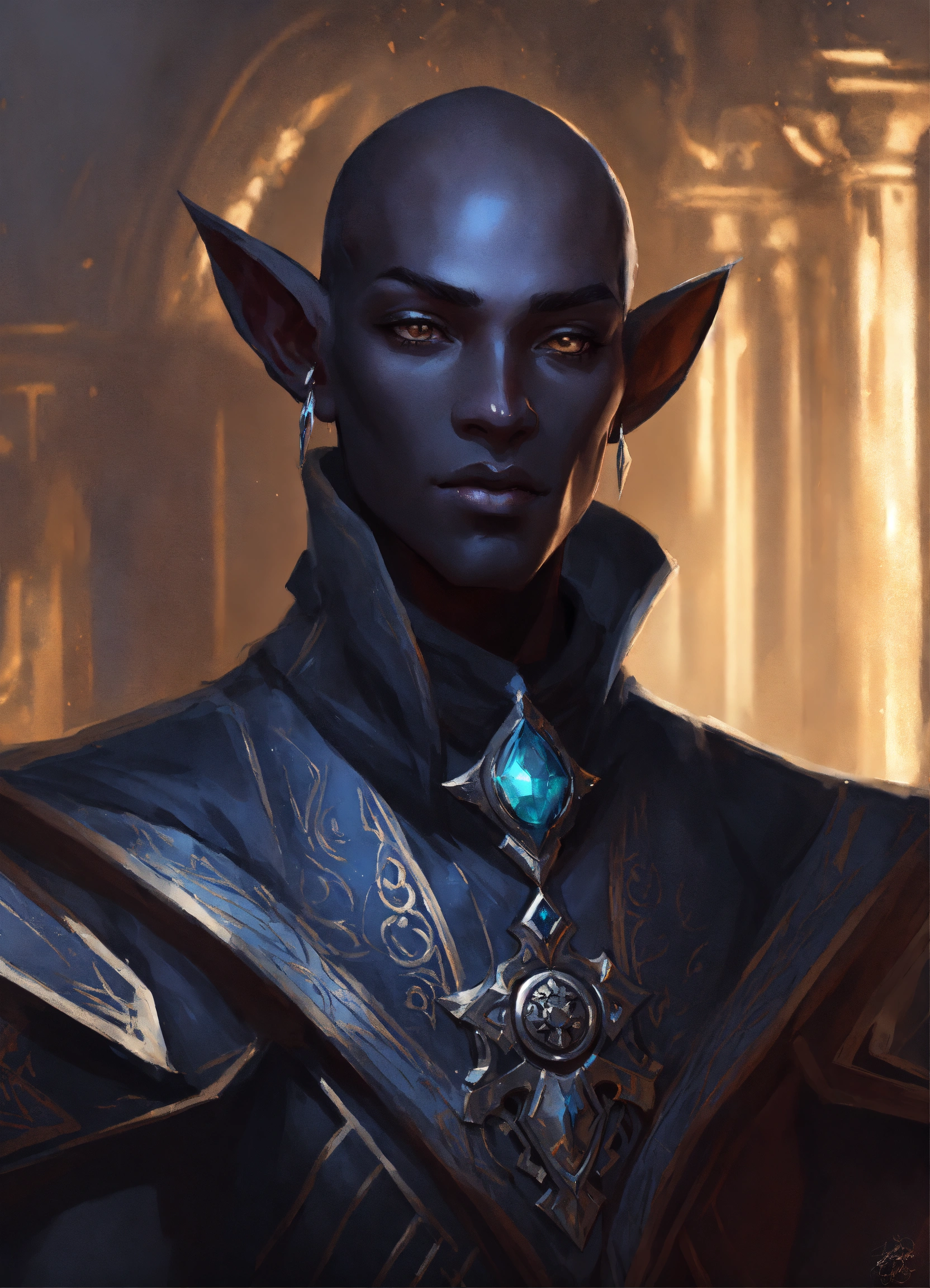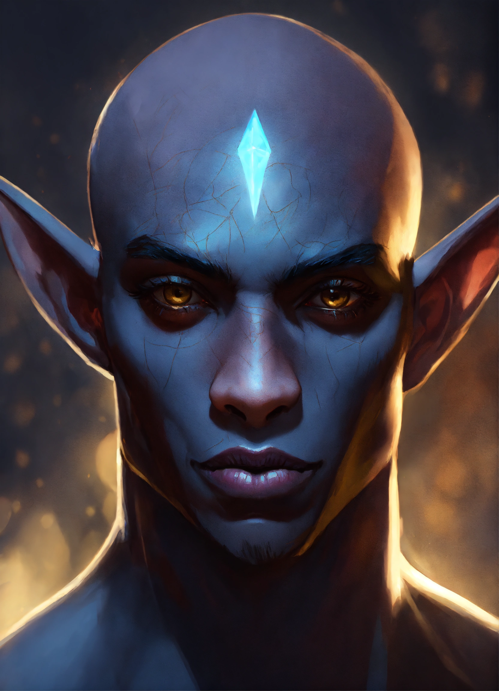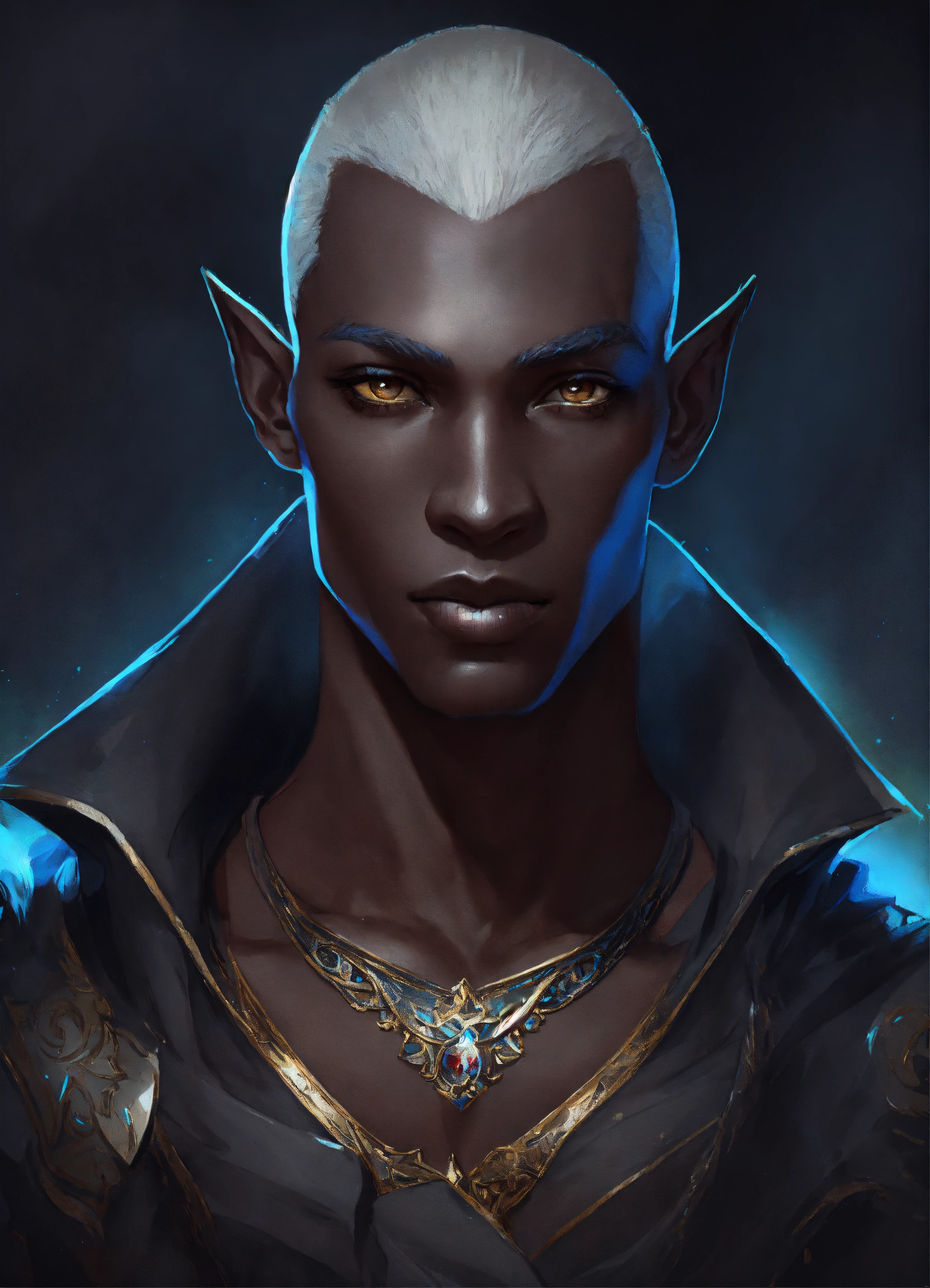 Professional portrait of a drow male from dnd, hairless, blackened eyes, abstract beauty, approaching perfection, delicate face, dynamic, moonlight, highly detailed, digital painting, artstation, concept art, smooth, sharp focus, illustration