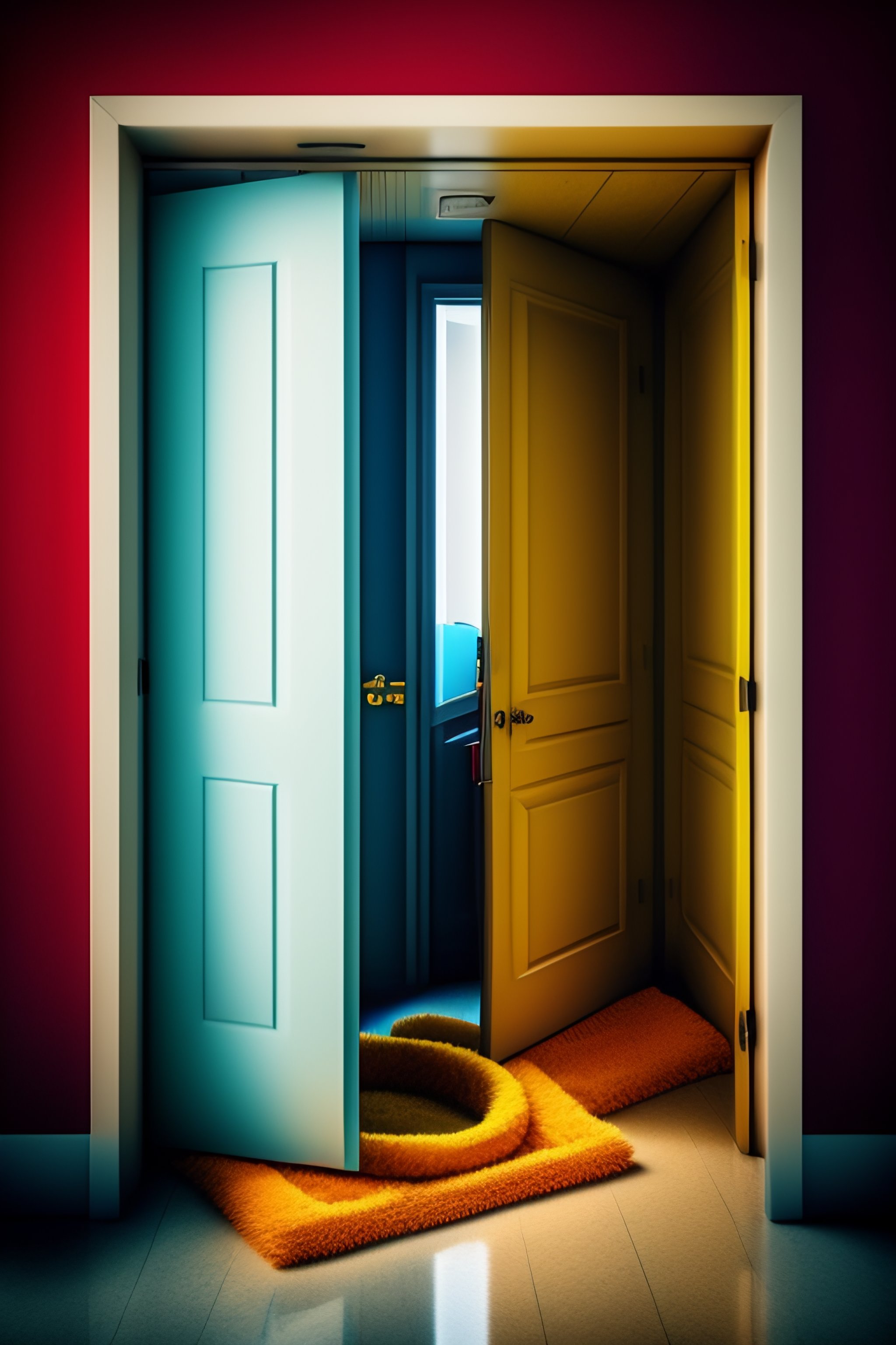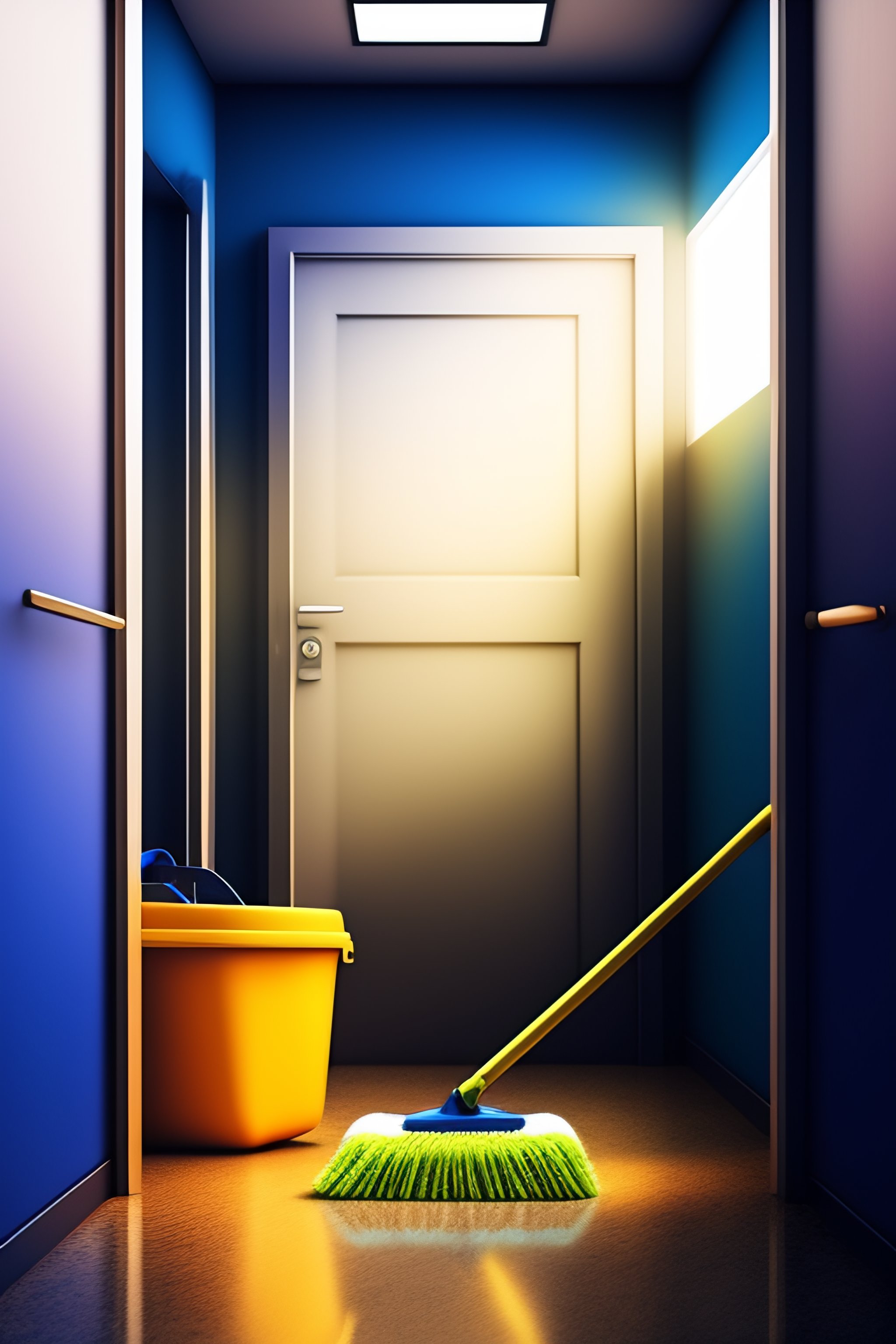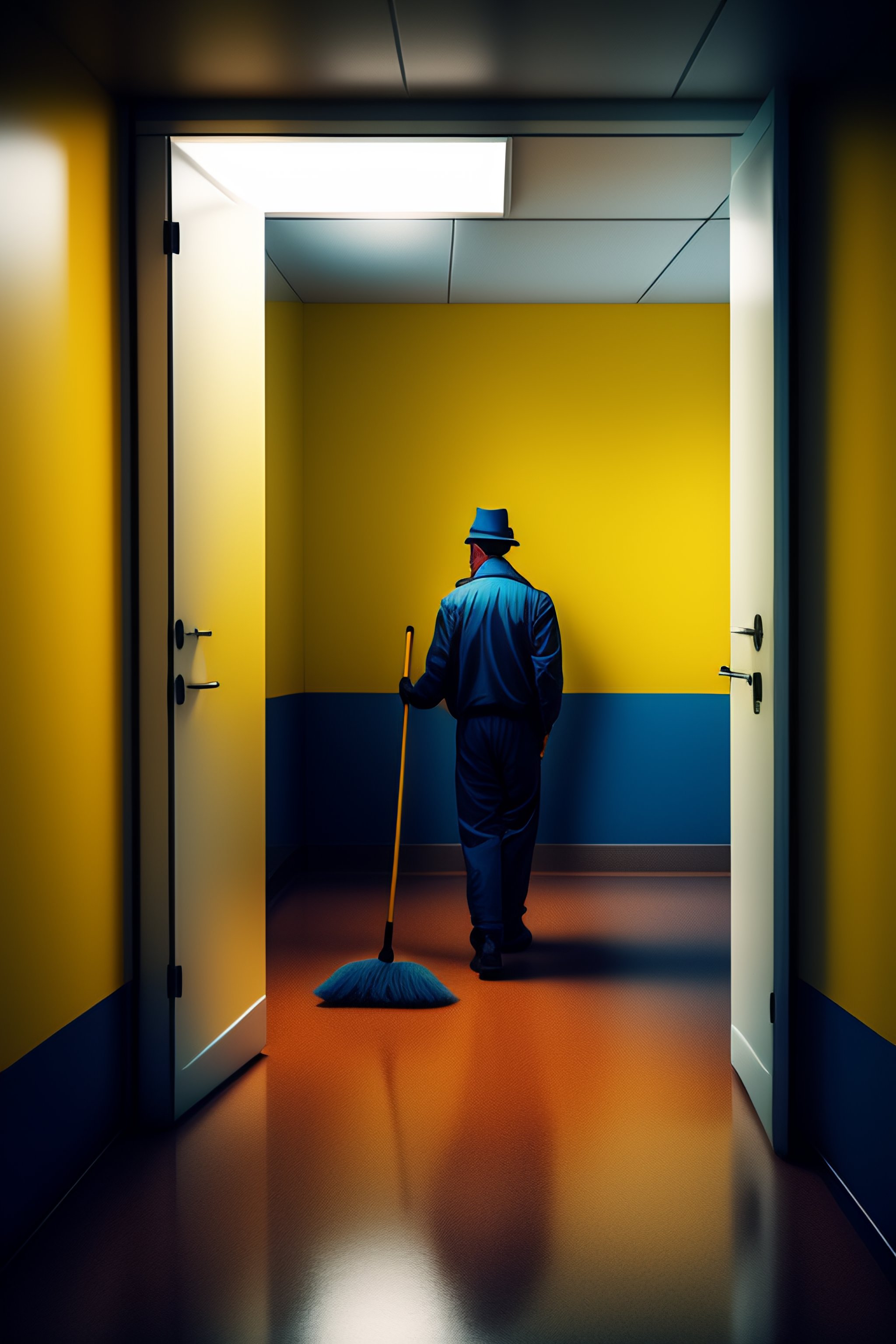 Janitor asleep in closet 1970 color stylized office building janitor sleeping on the job with mop