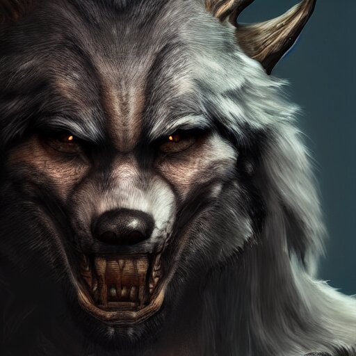 A digital art of realistic portrait of werewolf from skyrim, scary grim dark werewolf, wolf man fantasy concept art, werewolf character sheet, 4 k, ultra detail, volumetric lighting, unreal engine, octane render