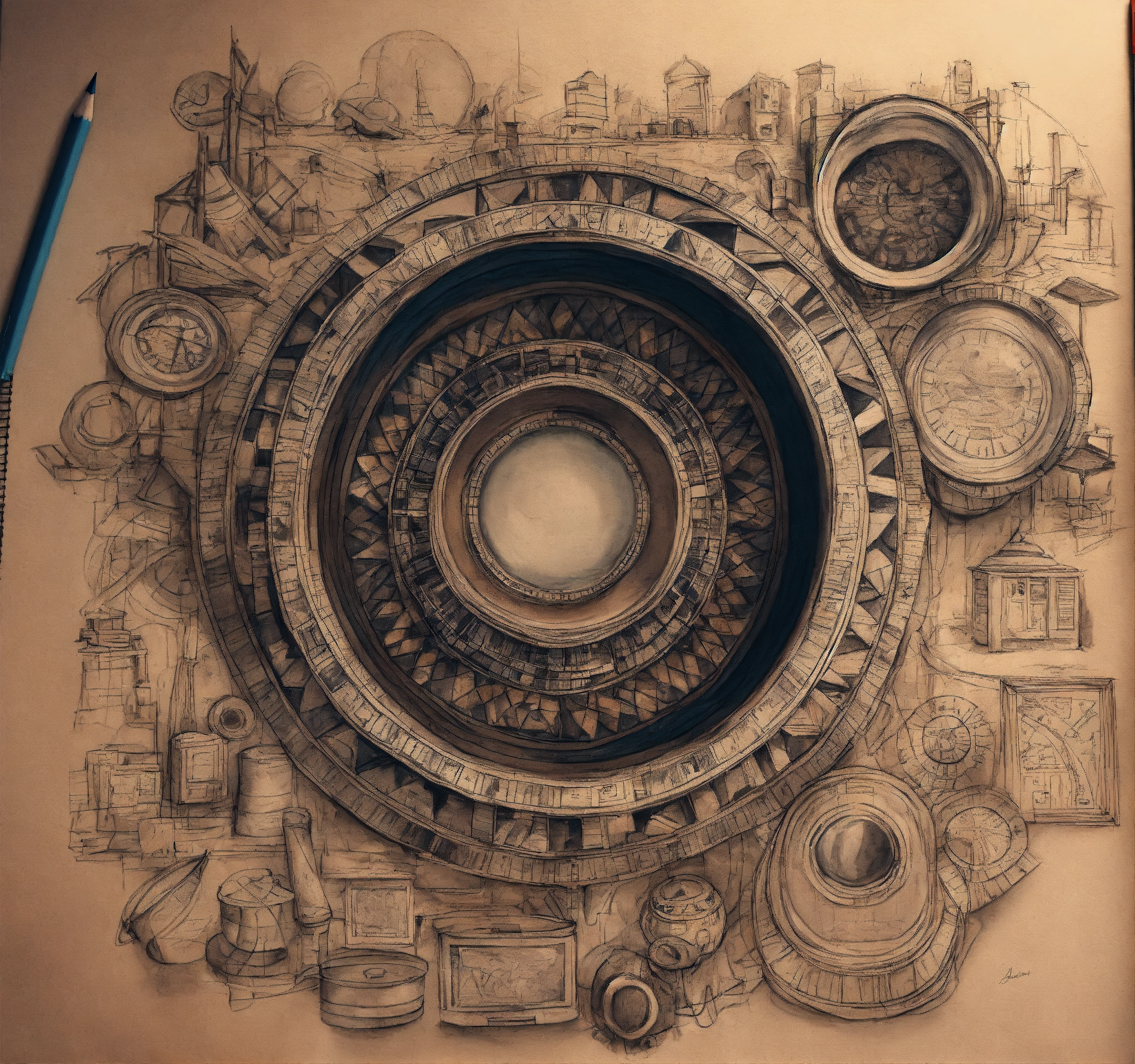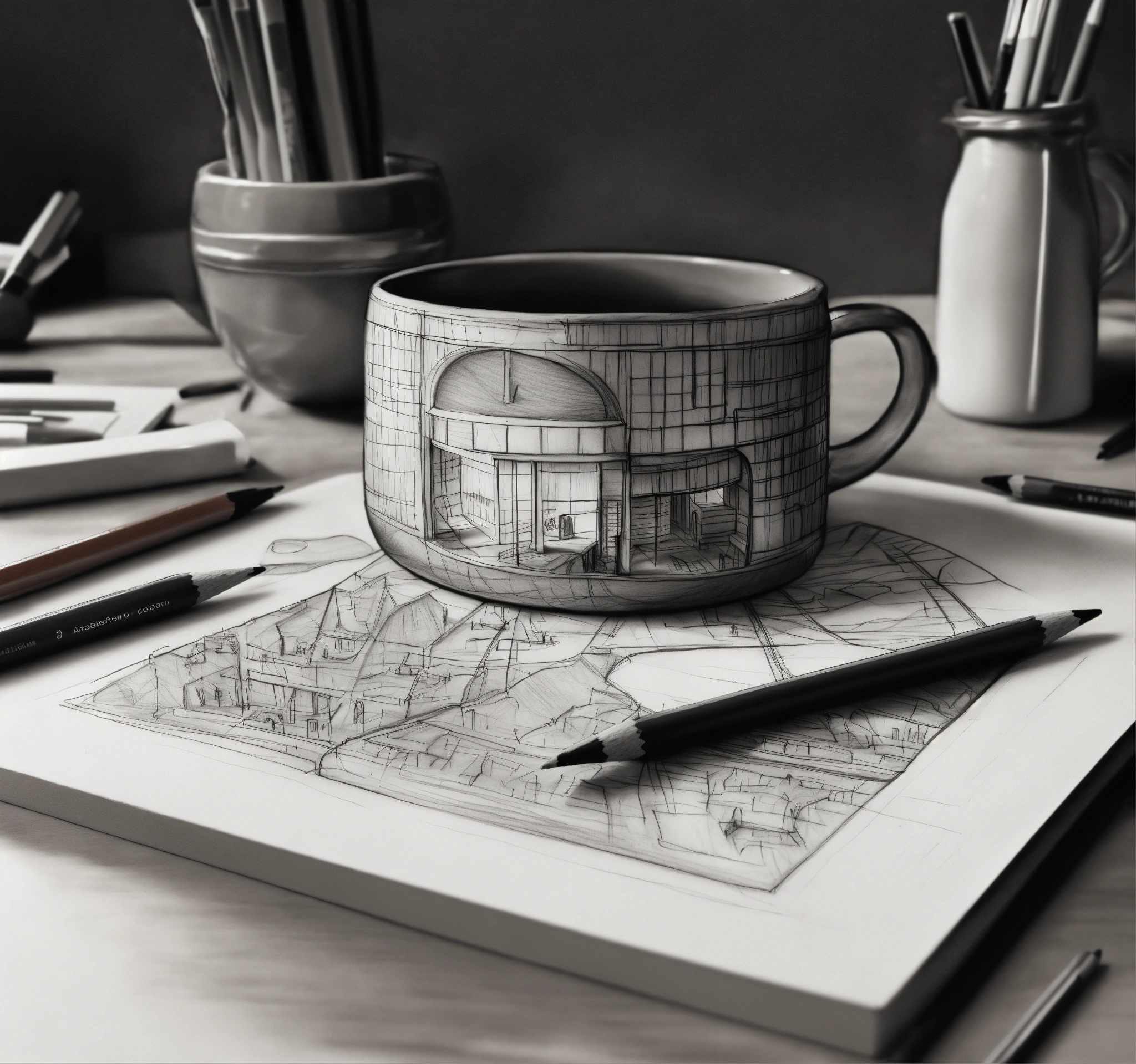 Create me a doodle of objects where only the edges are sketched with a medium pencil