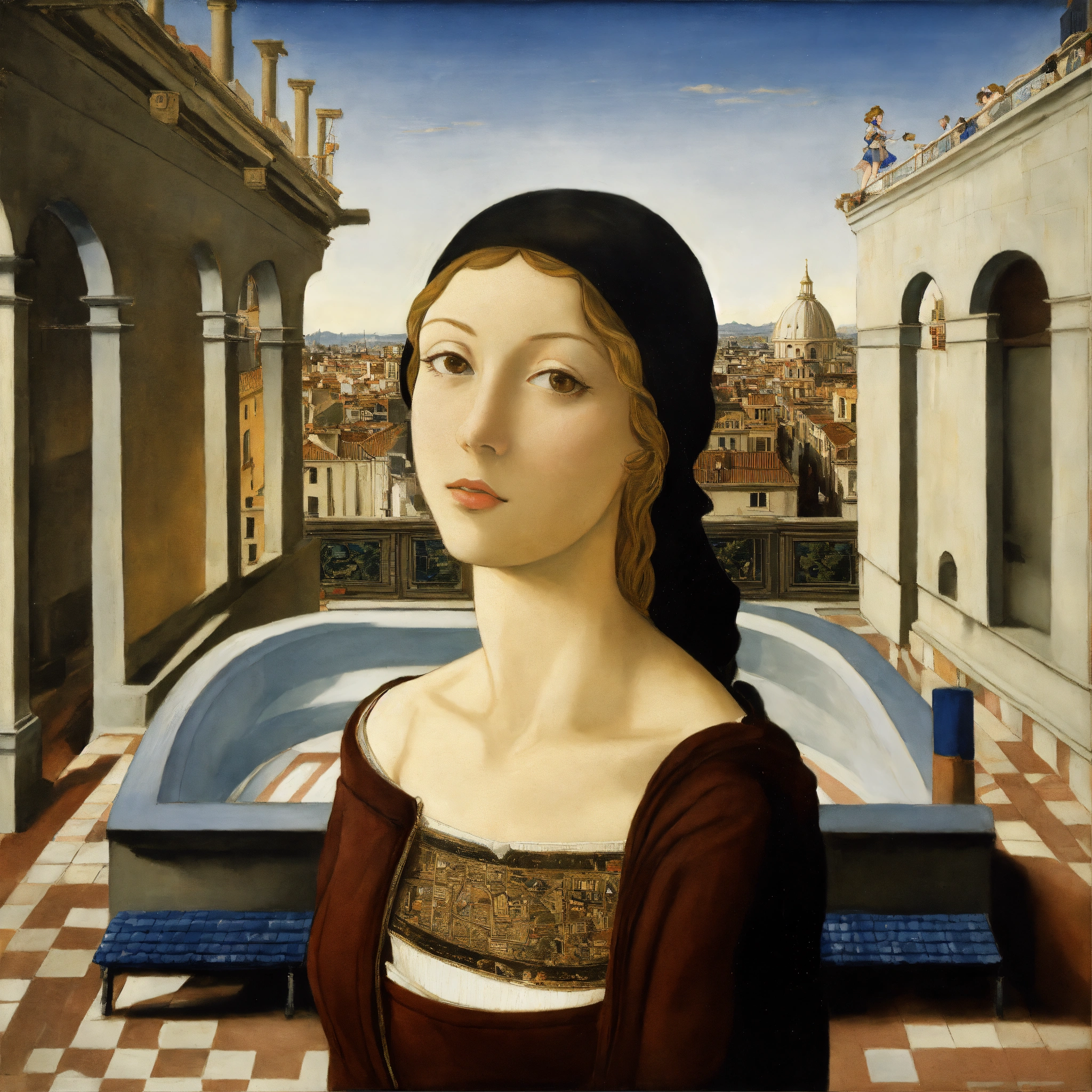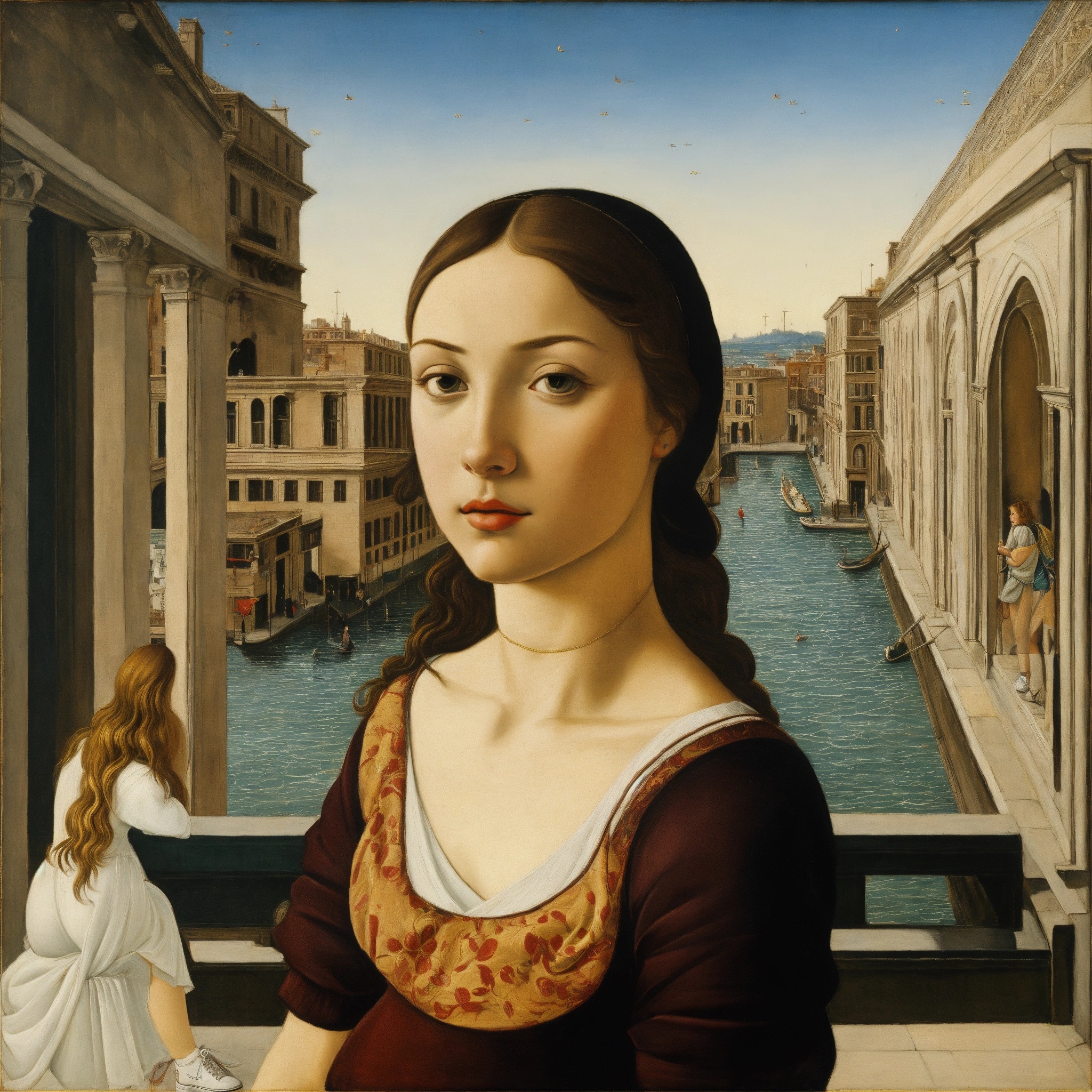 Venus in a top, a short, and sneakers in the modern time, by sandro botticelli, an urban cityscape, 256k.