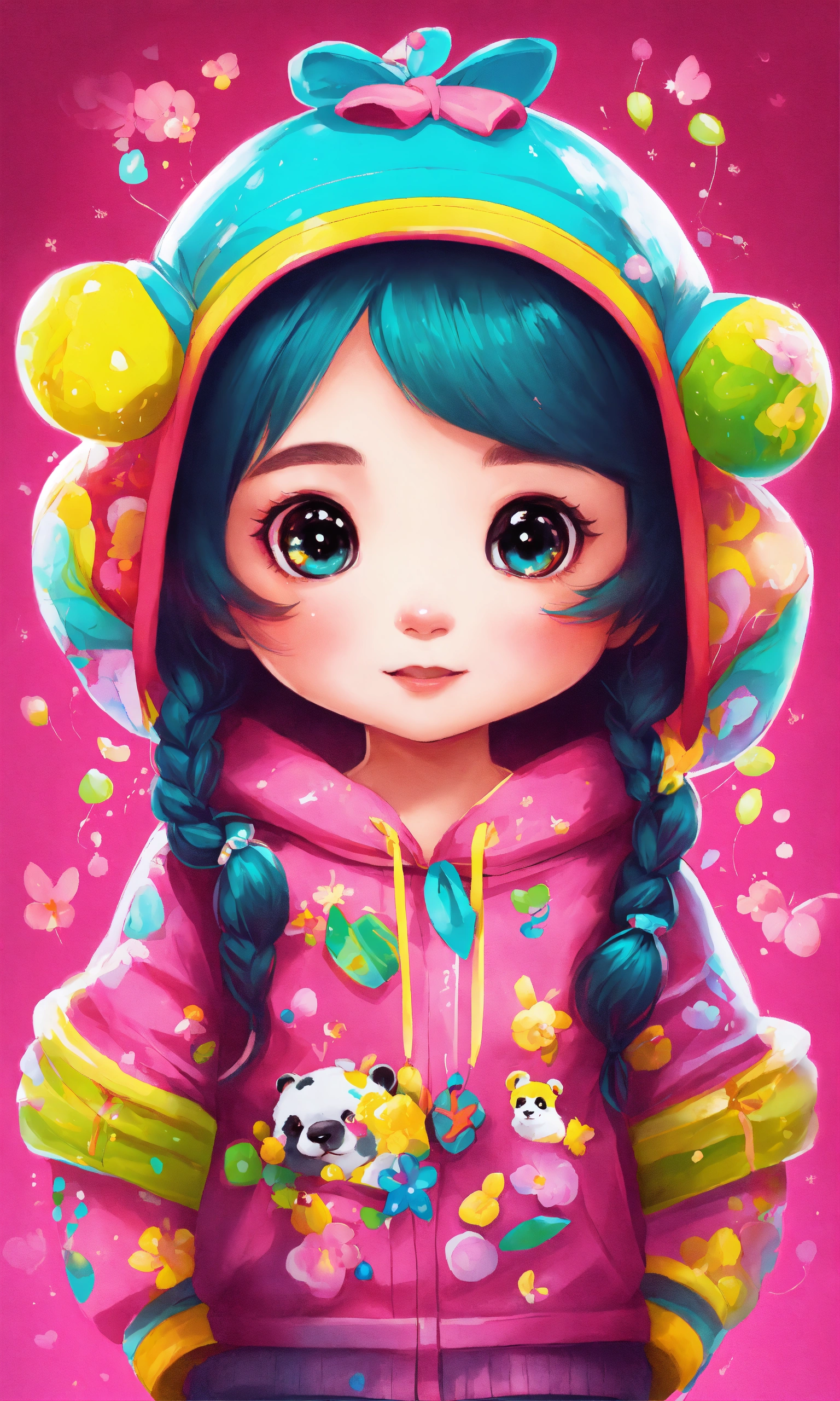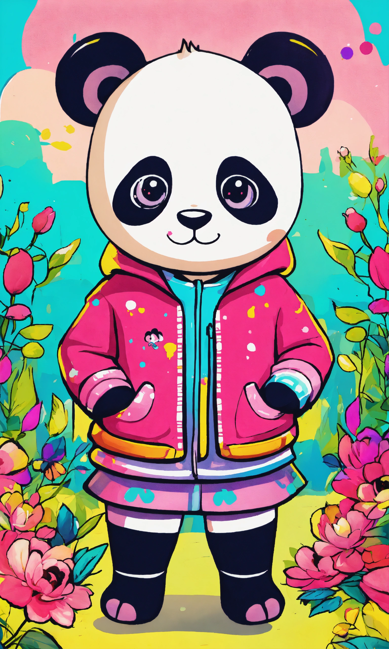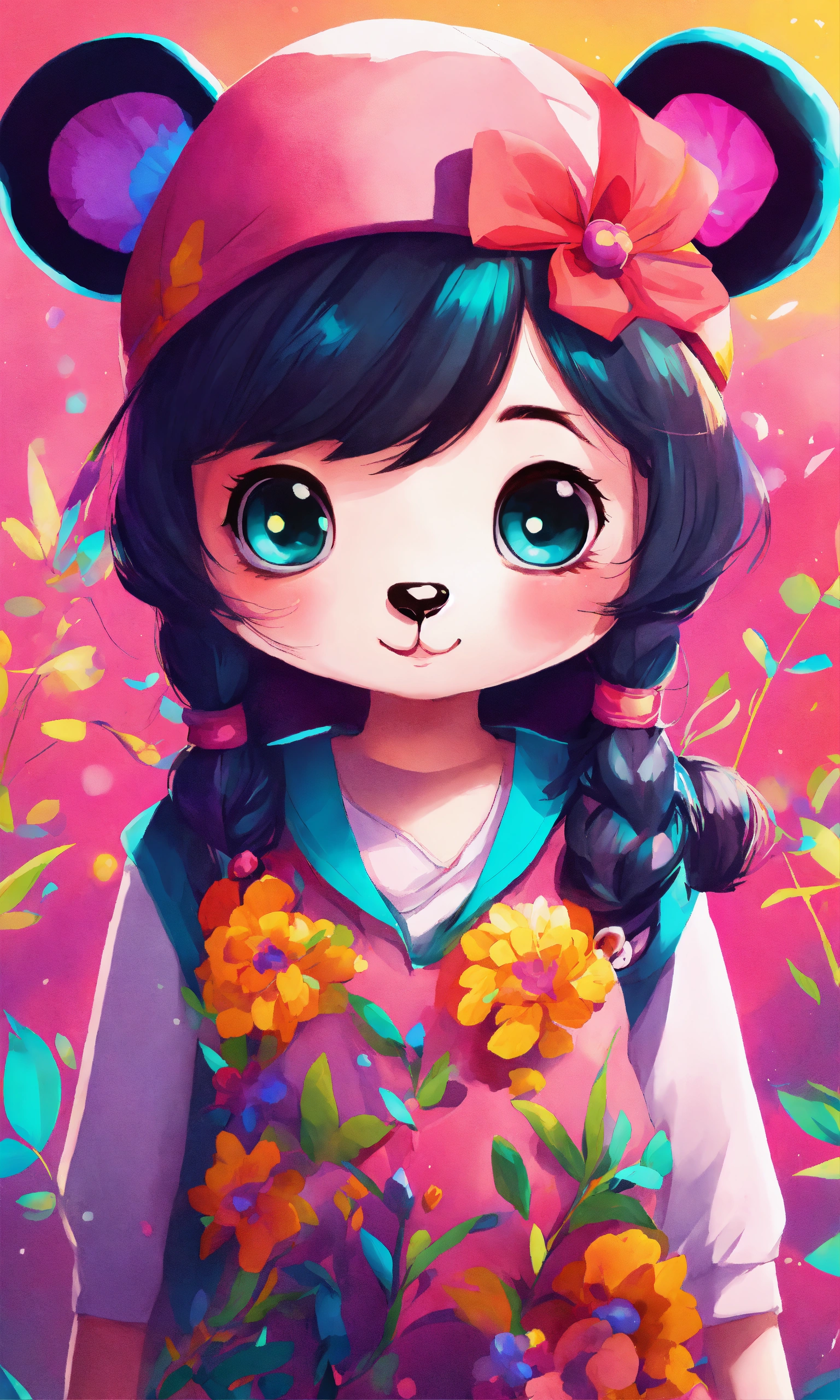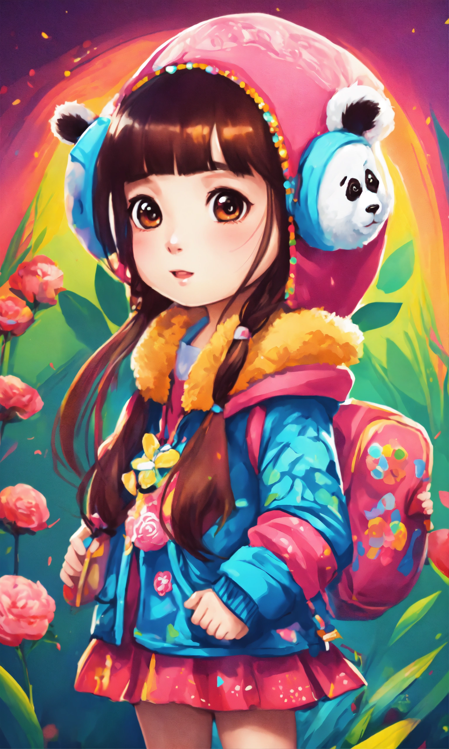Girl panda vivid color kids illustration
