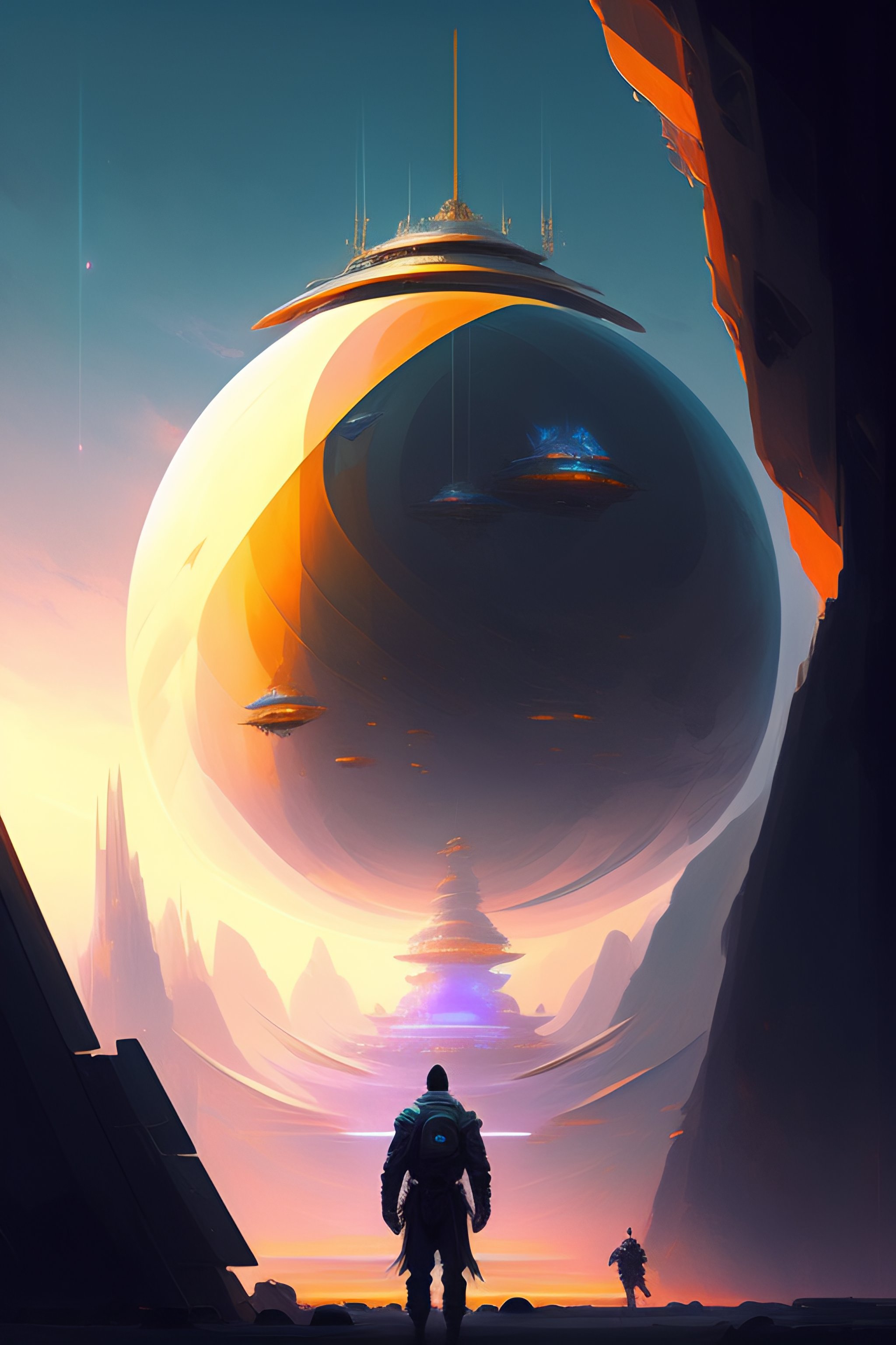 Dyson sphere program, by greg rutkowski, by rhads, by jesper ejsing, so many wires, sharp focus, man standing, colony, atom
