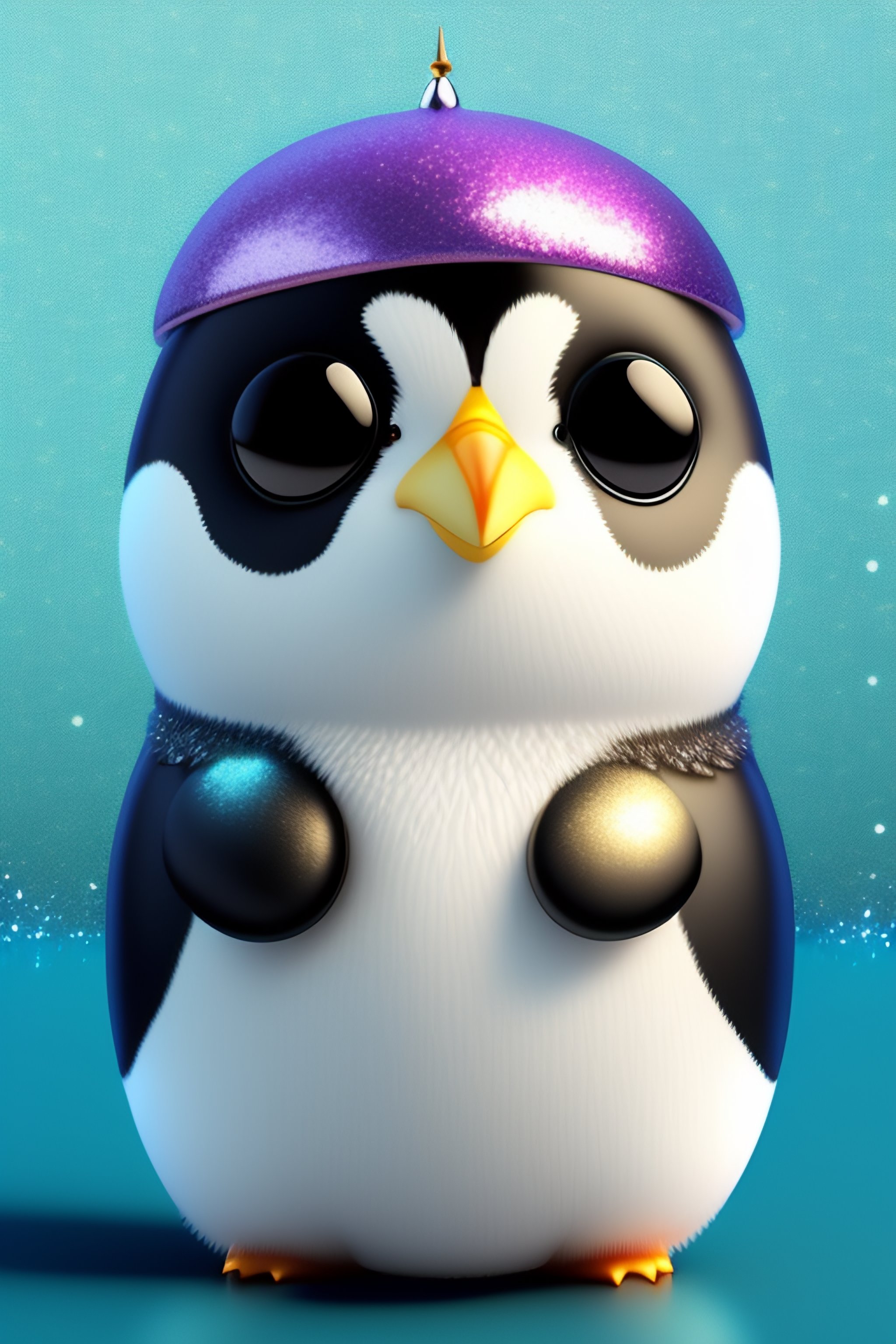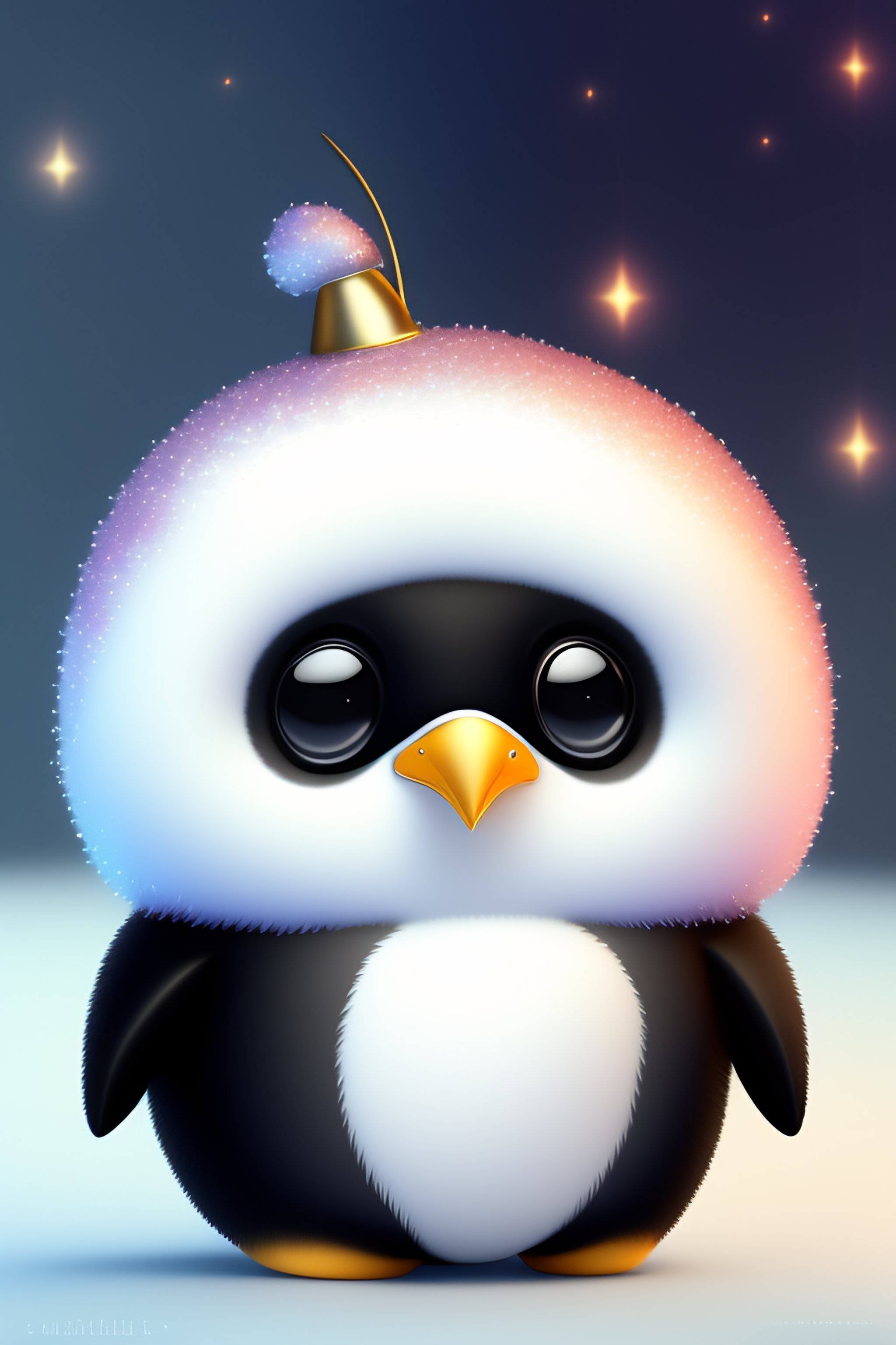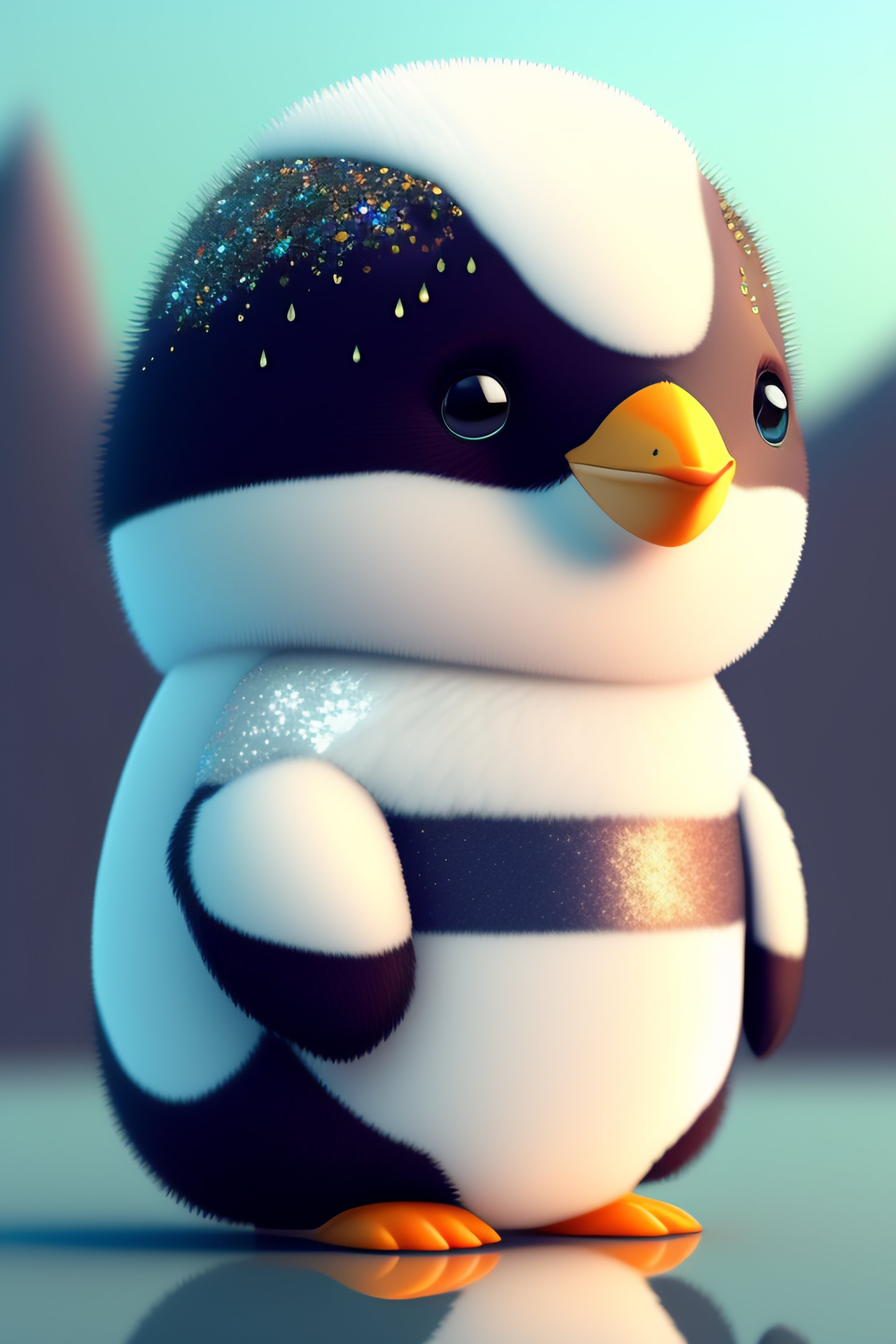 Cute and adorable cartoon fluffy penguin, glitter, white, fantasy, dreamlike, surrealism, super cute, trending on artstation