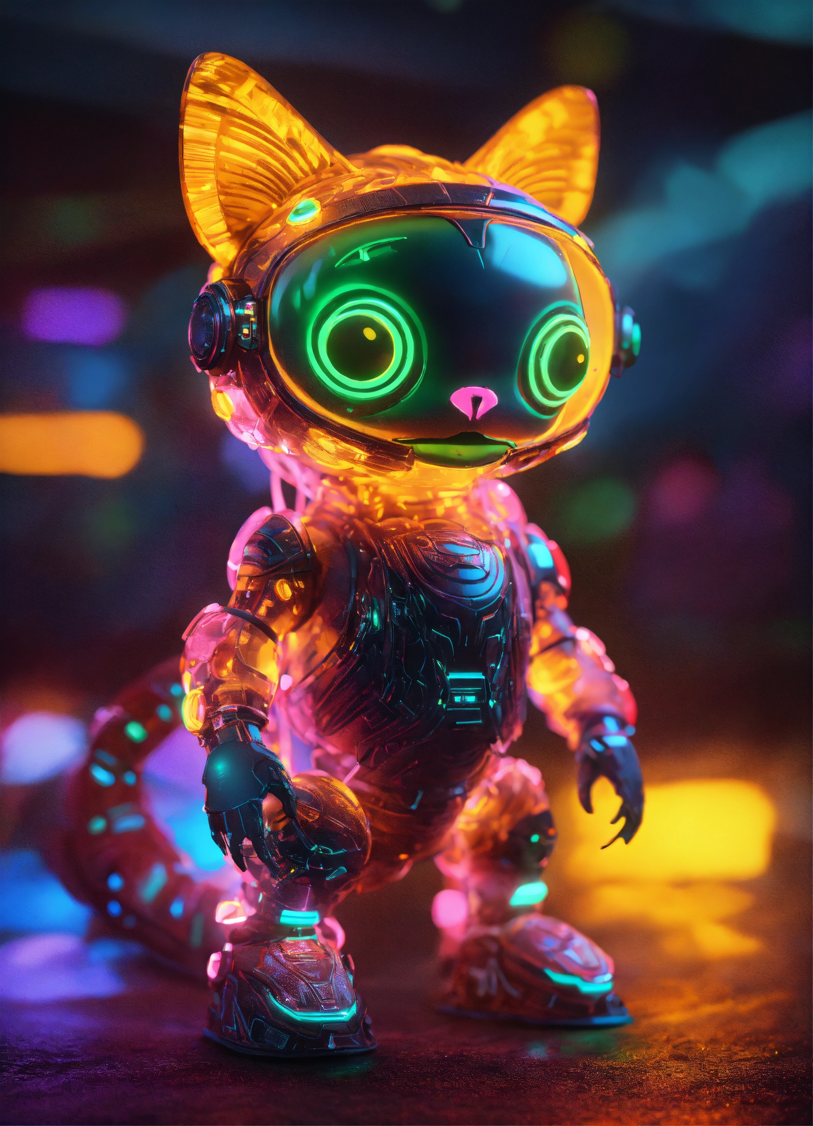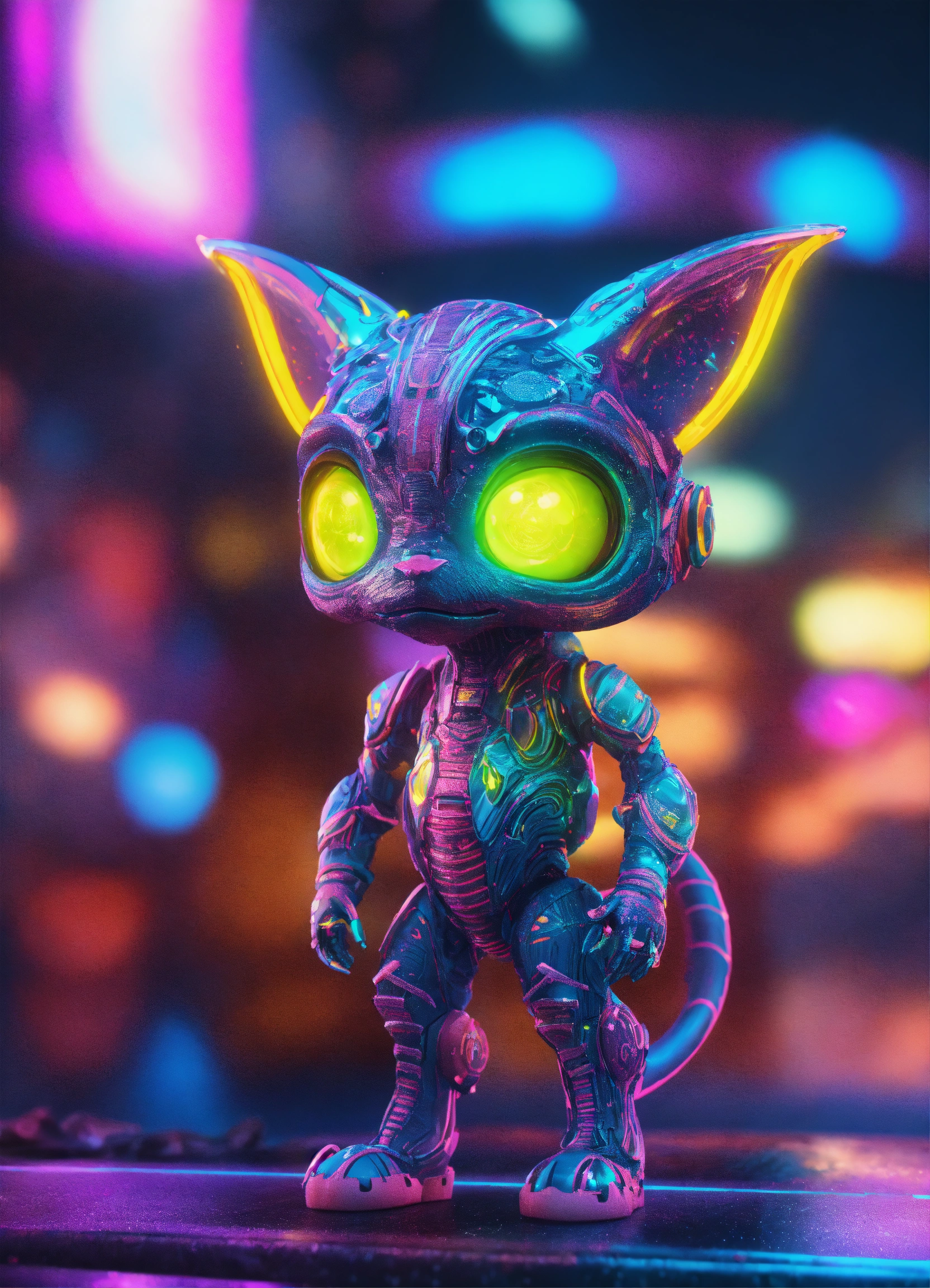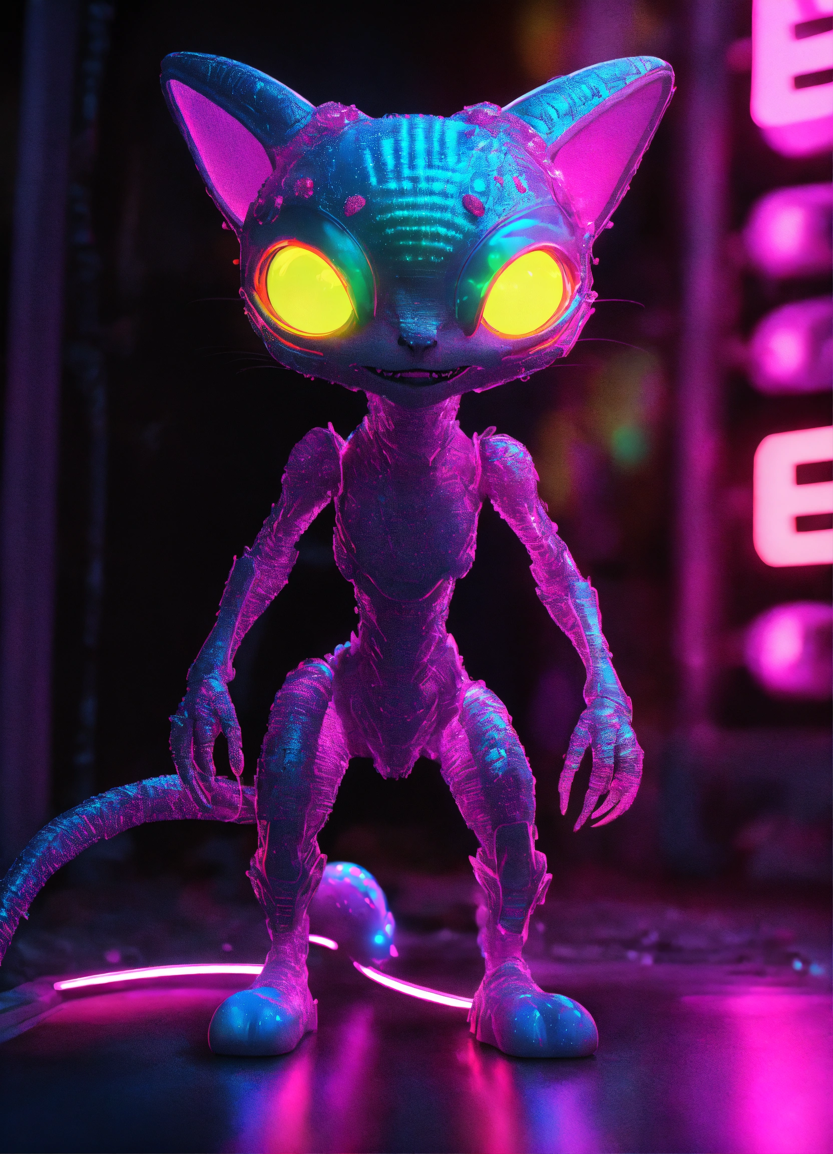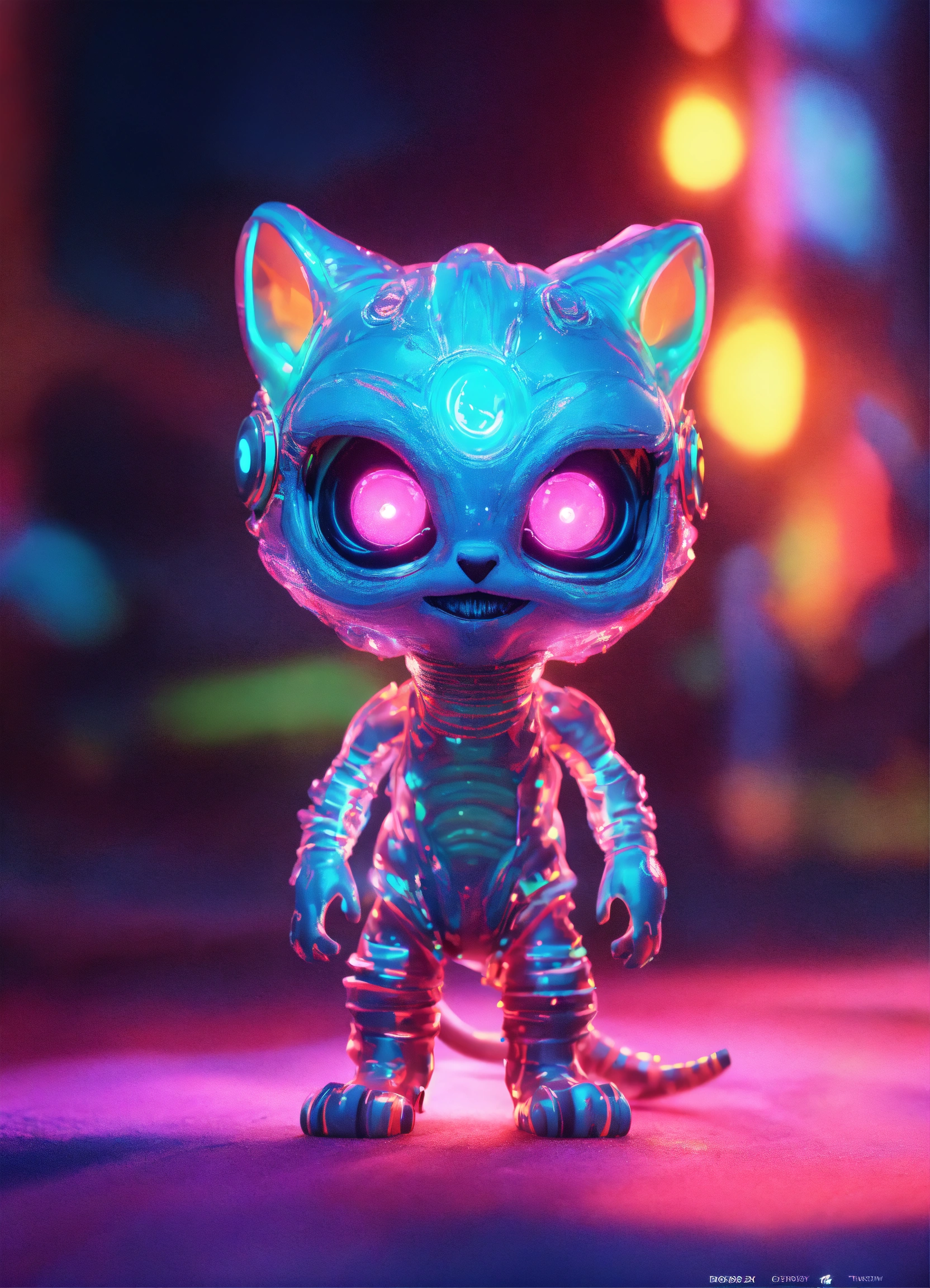 Gelly cute alien monster, full-body, neon glow colors, highly intricate details, 3d, cgi, realistic light, trending on cgsociety, glowing eyes, facing camera, neon details, ultra realistic details, portrait, sci fi atmosphere, global illumination, shadows, octane render, 8 k, ultra sharp, cat mutated