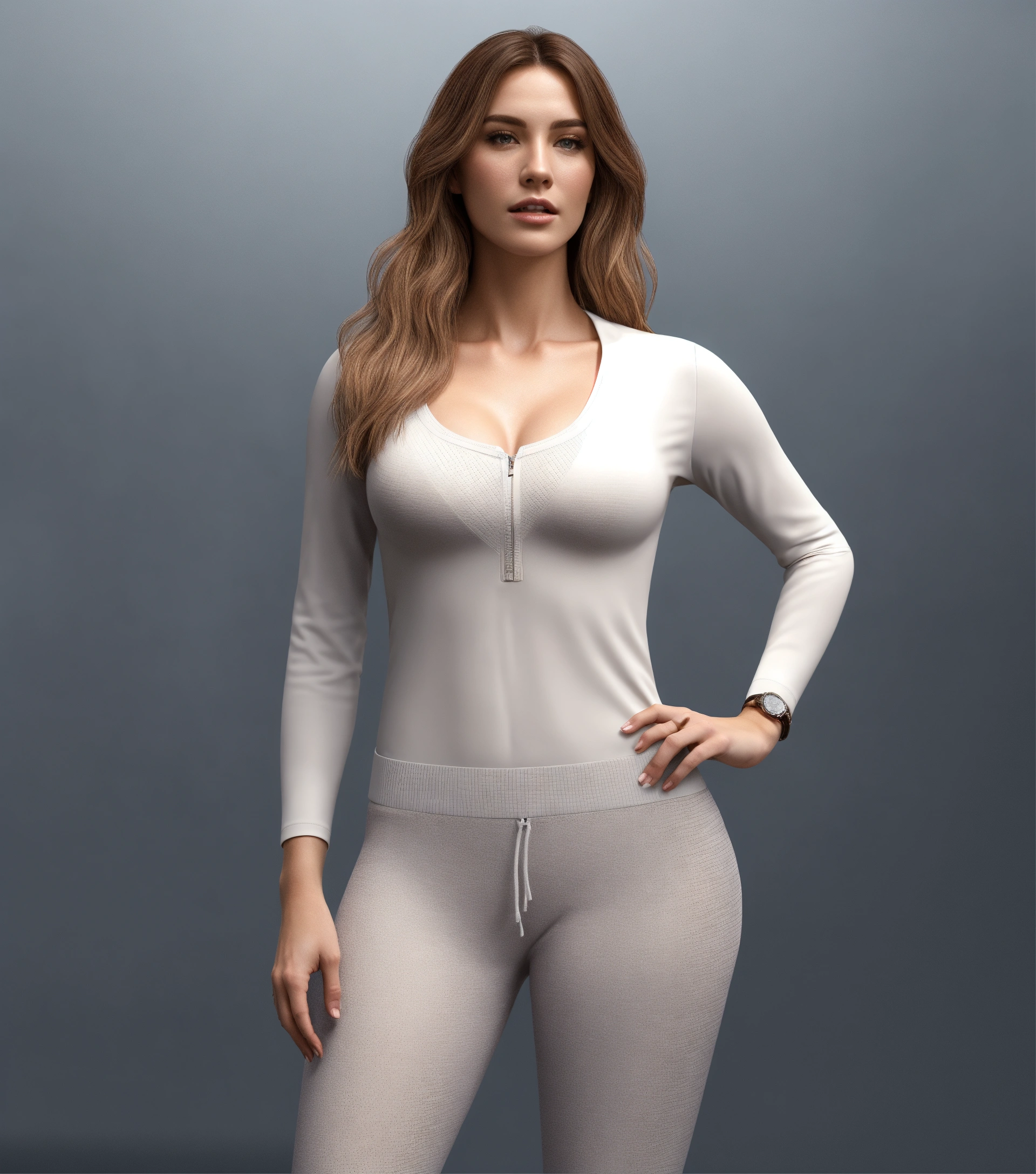 The perfect white woman, having 90-60-90 dimensions, showing the full body, 8k resolution, hyper-realistic style