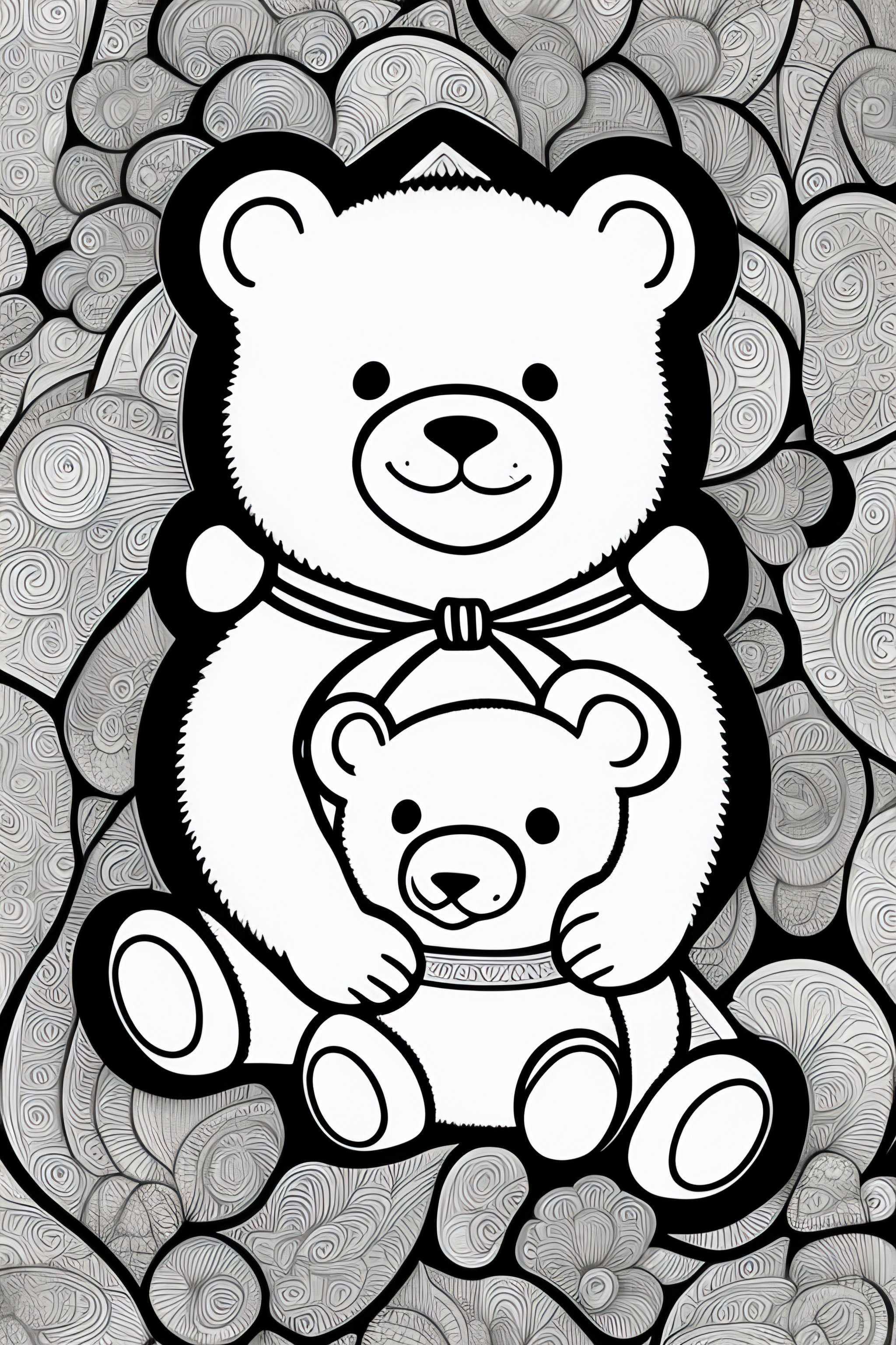 Coloring book design of teddy bears and valentines day background