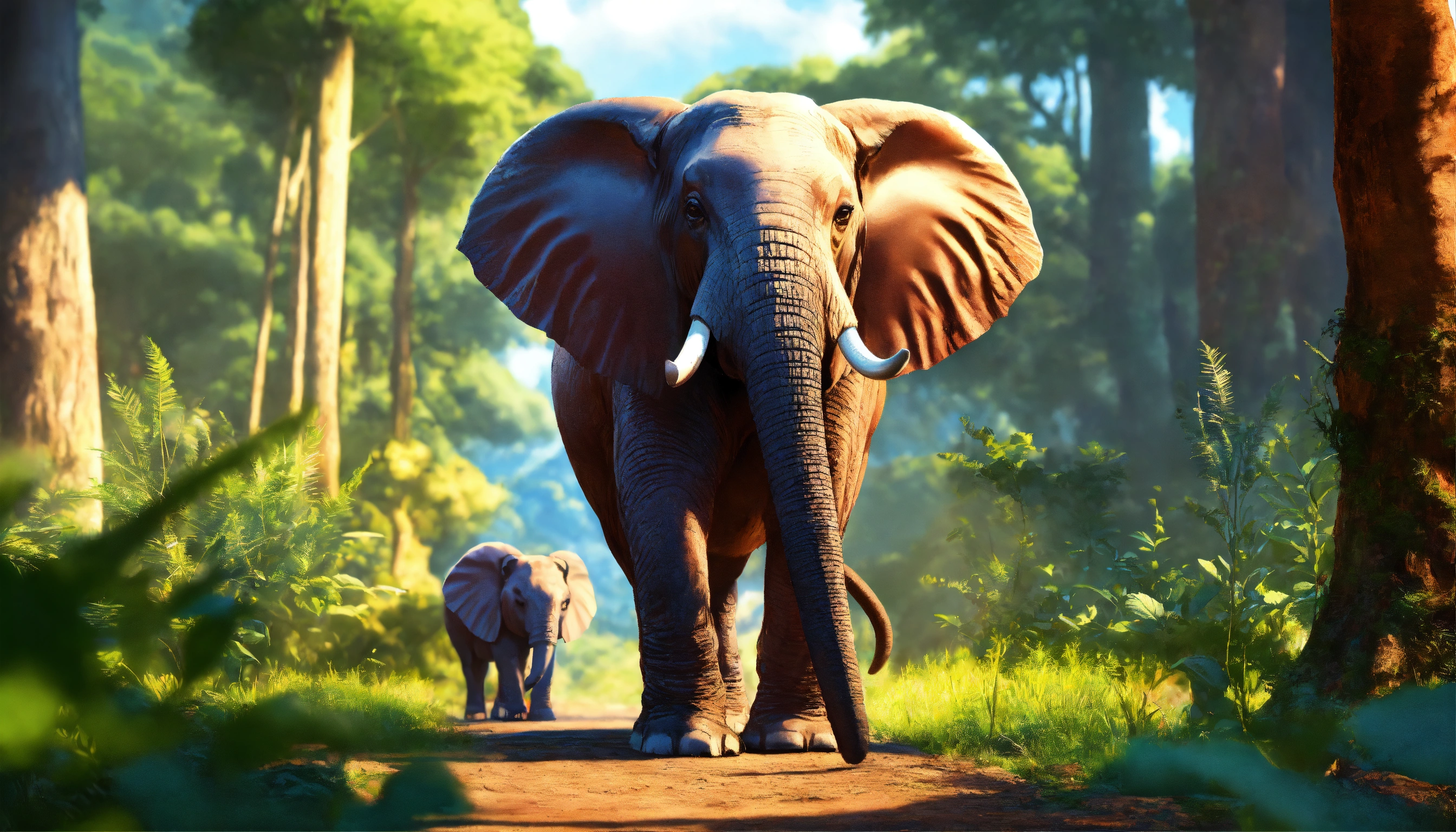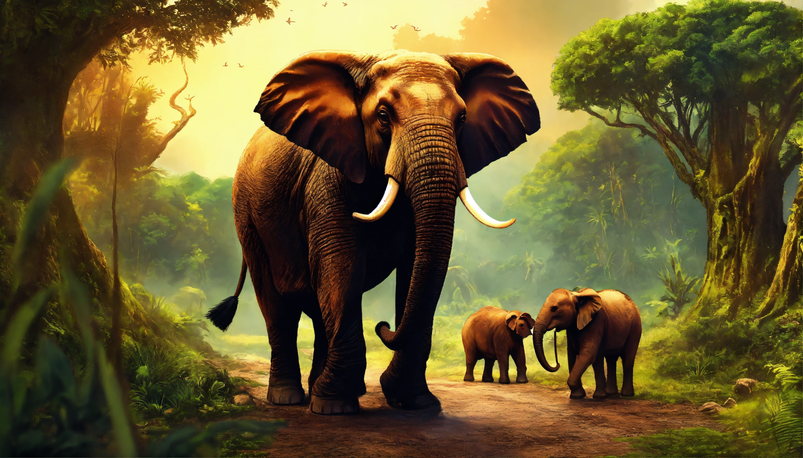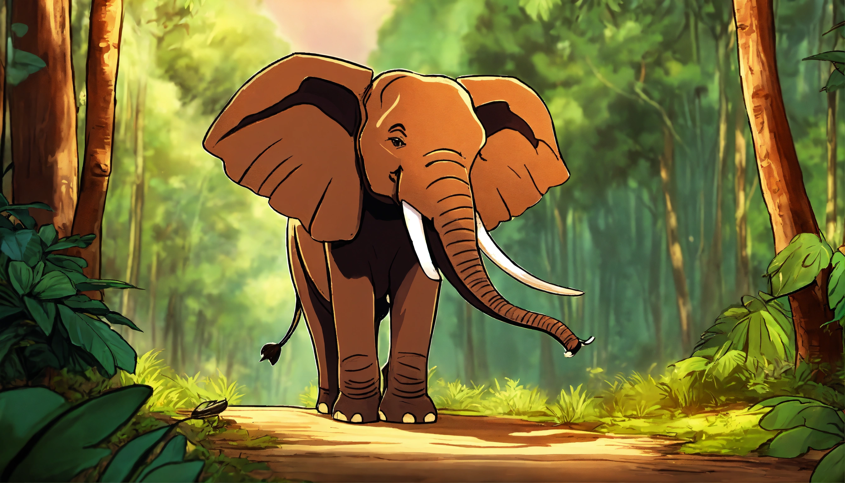 Elefante pequeño con orejas grandes en compañia de una rata y varios animales de la selva, 8k, detailed comics