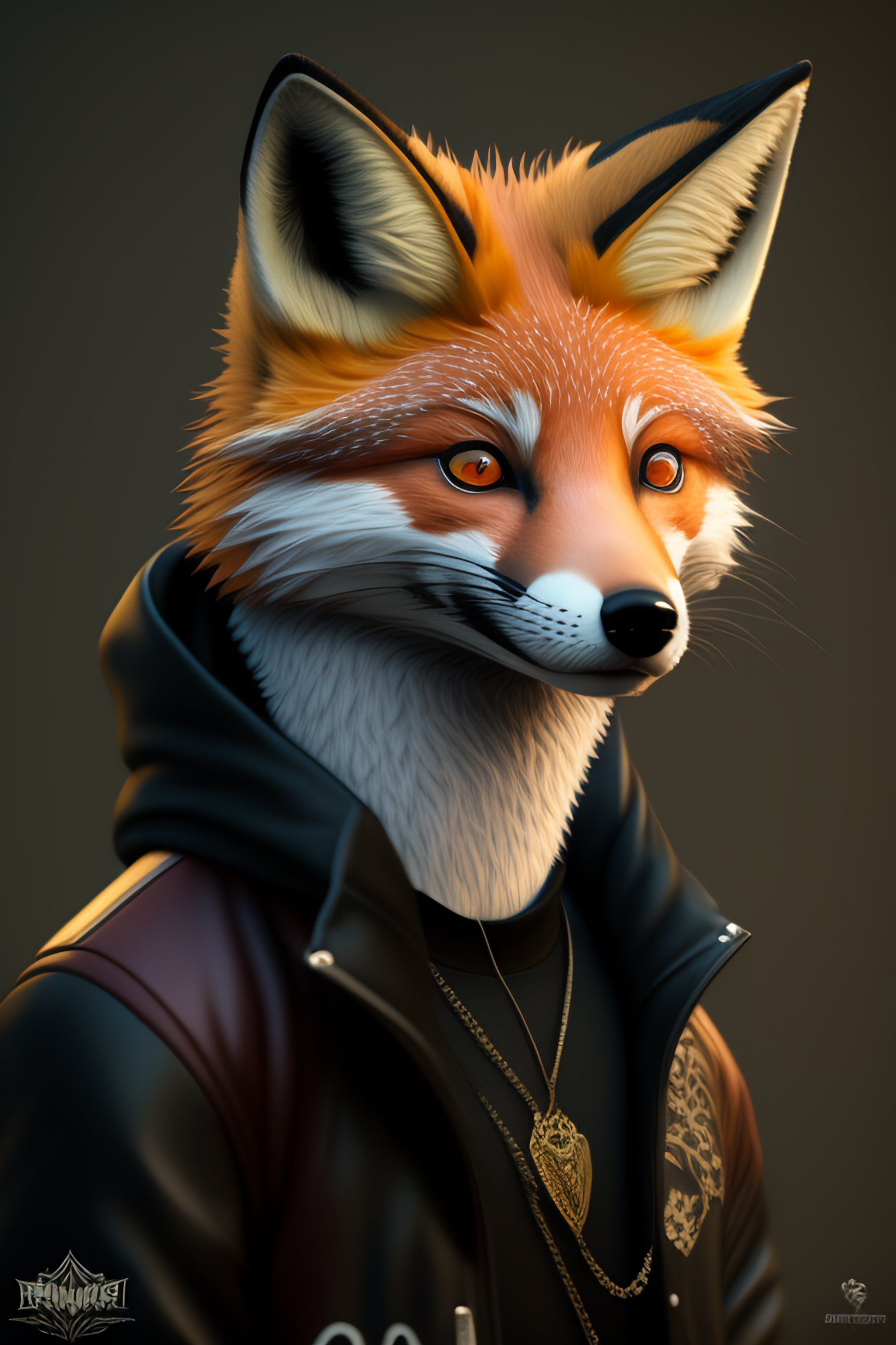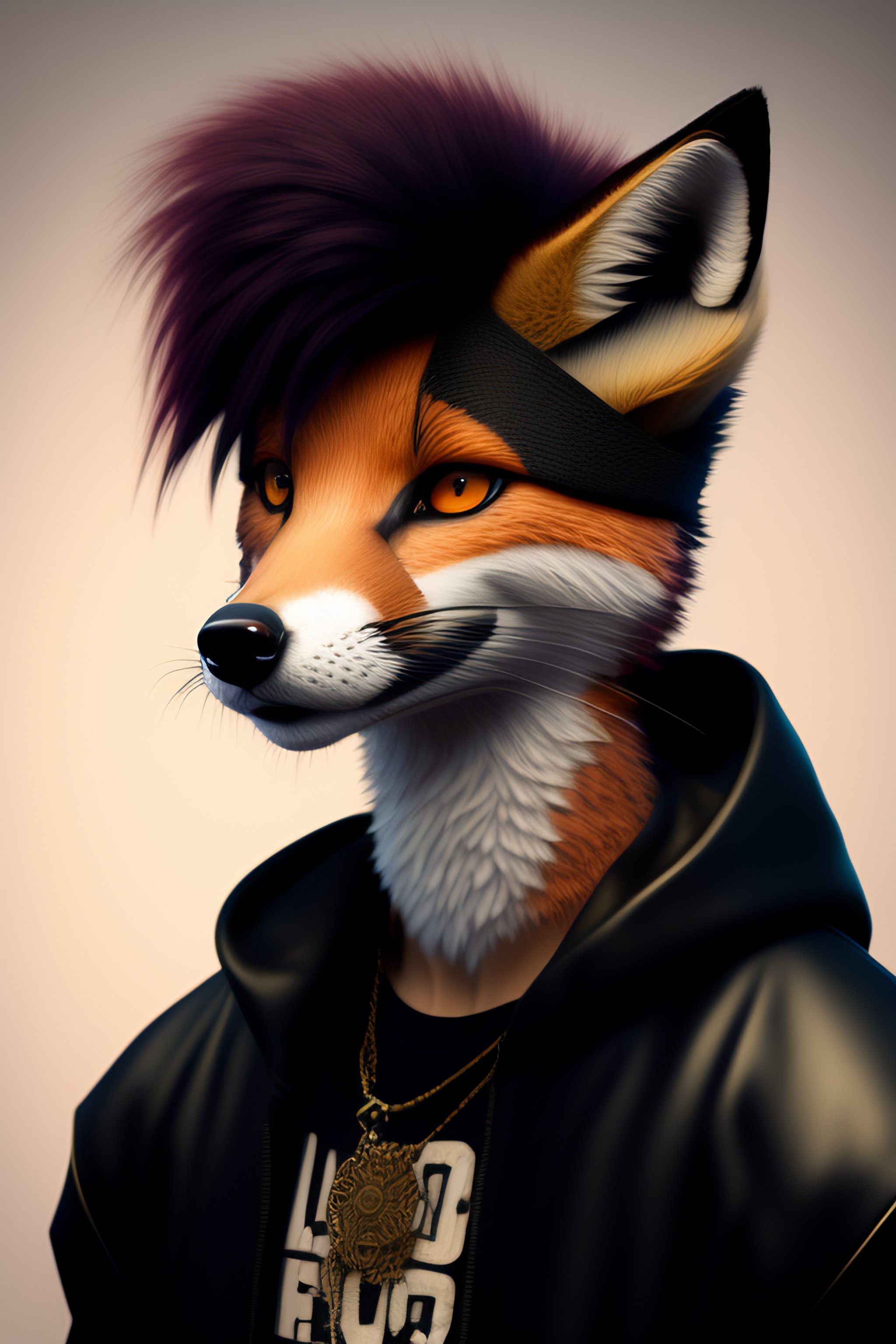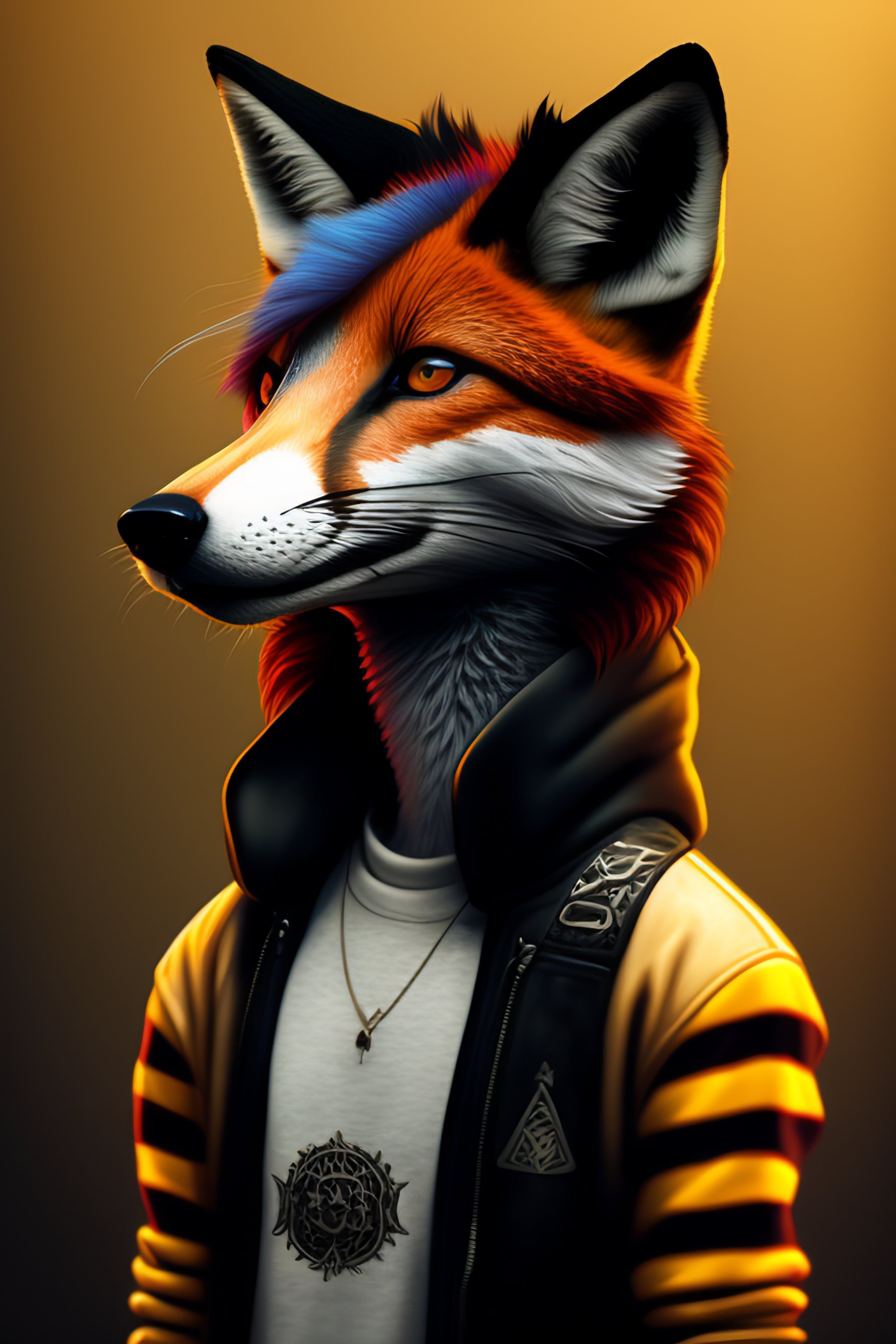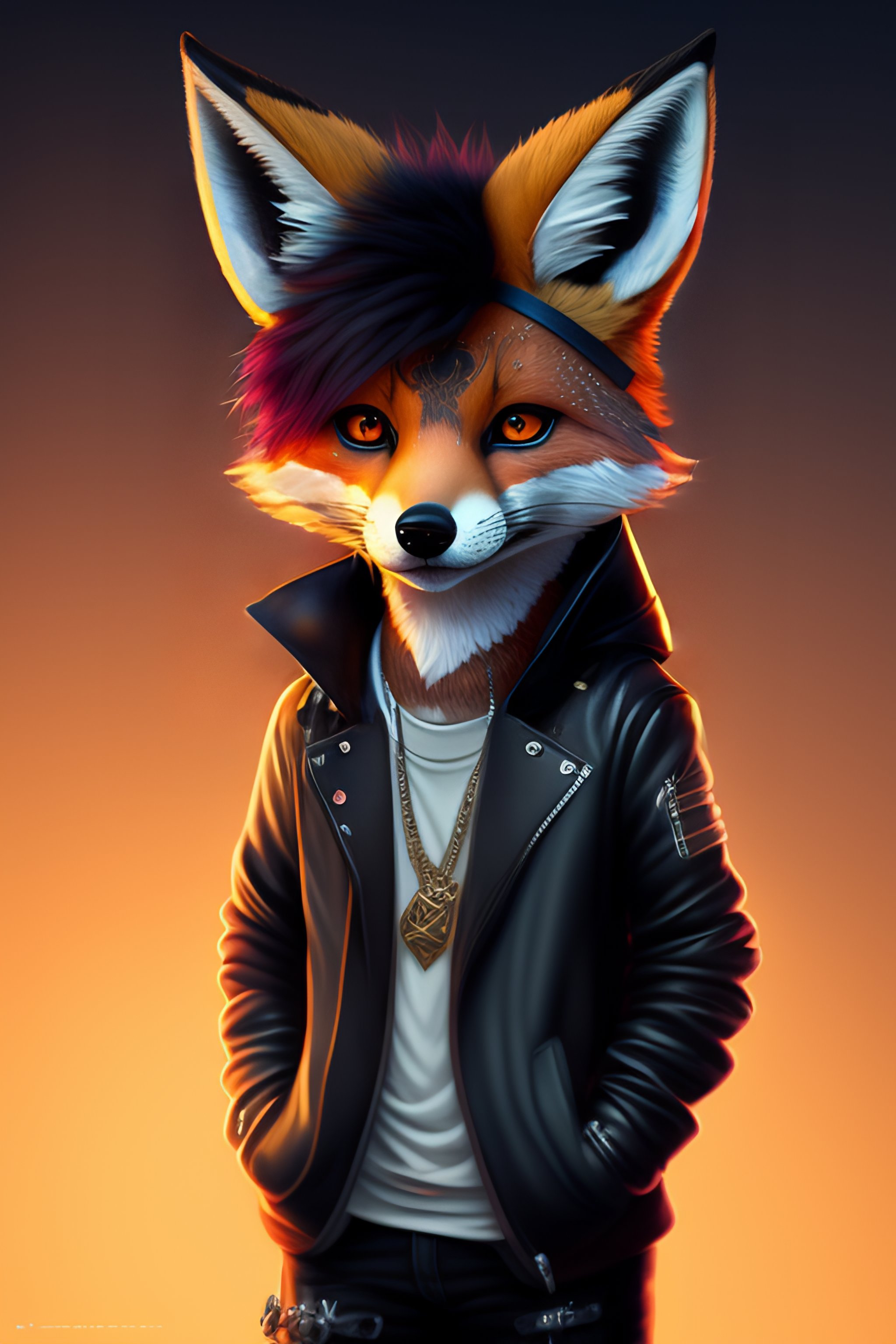 Highly detailed 2d portrait of a sewer emo punk anthropomorphic fox facing camera