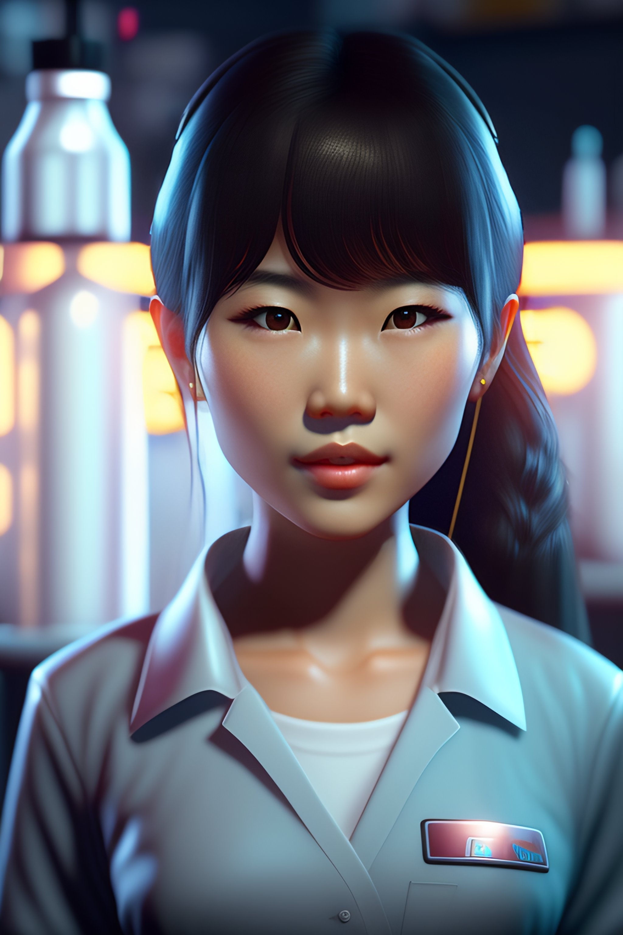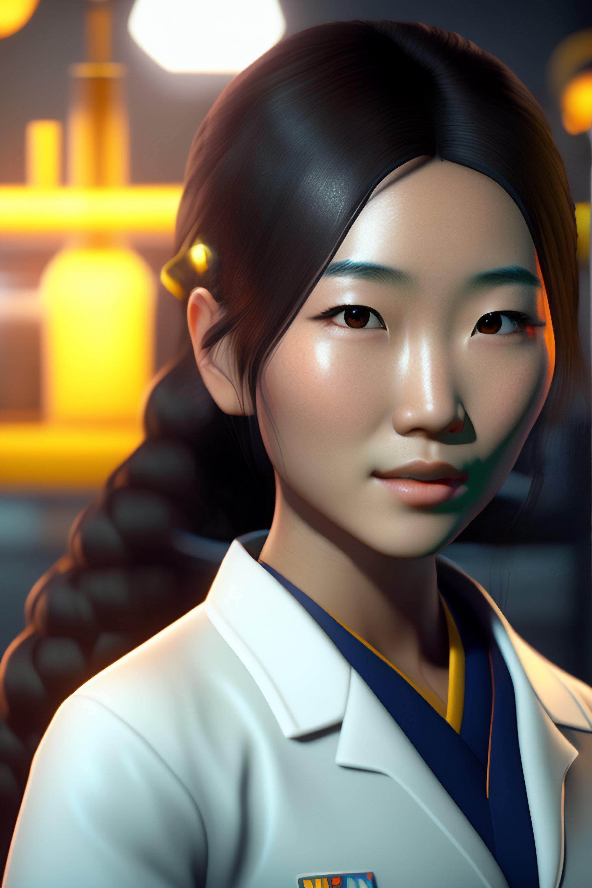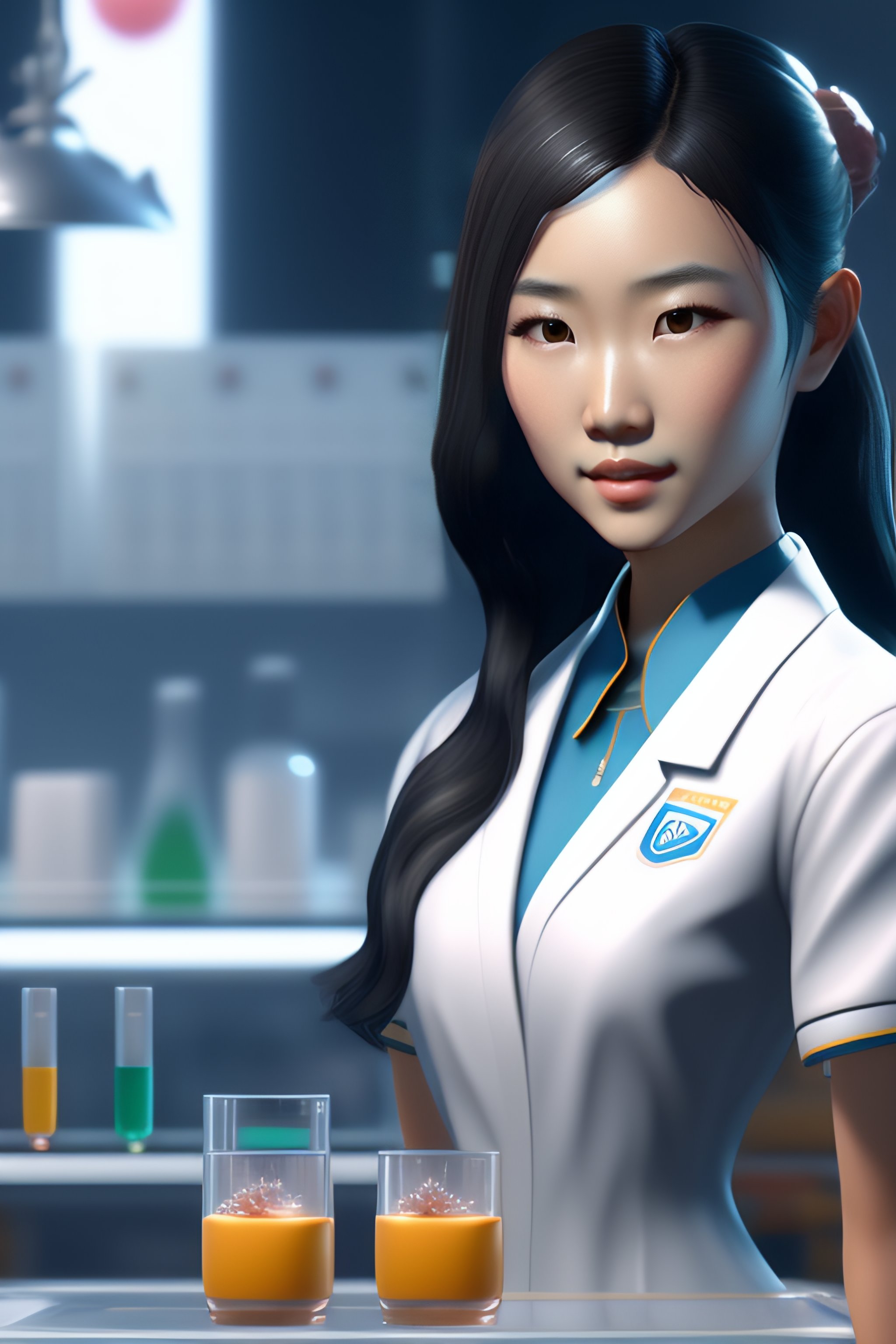 Cute girl, pretty!, young!!, asian, face of riko nagai, in a laboratory, 4k, unreal engine 5, fine details, intricate