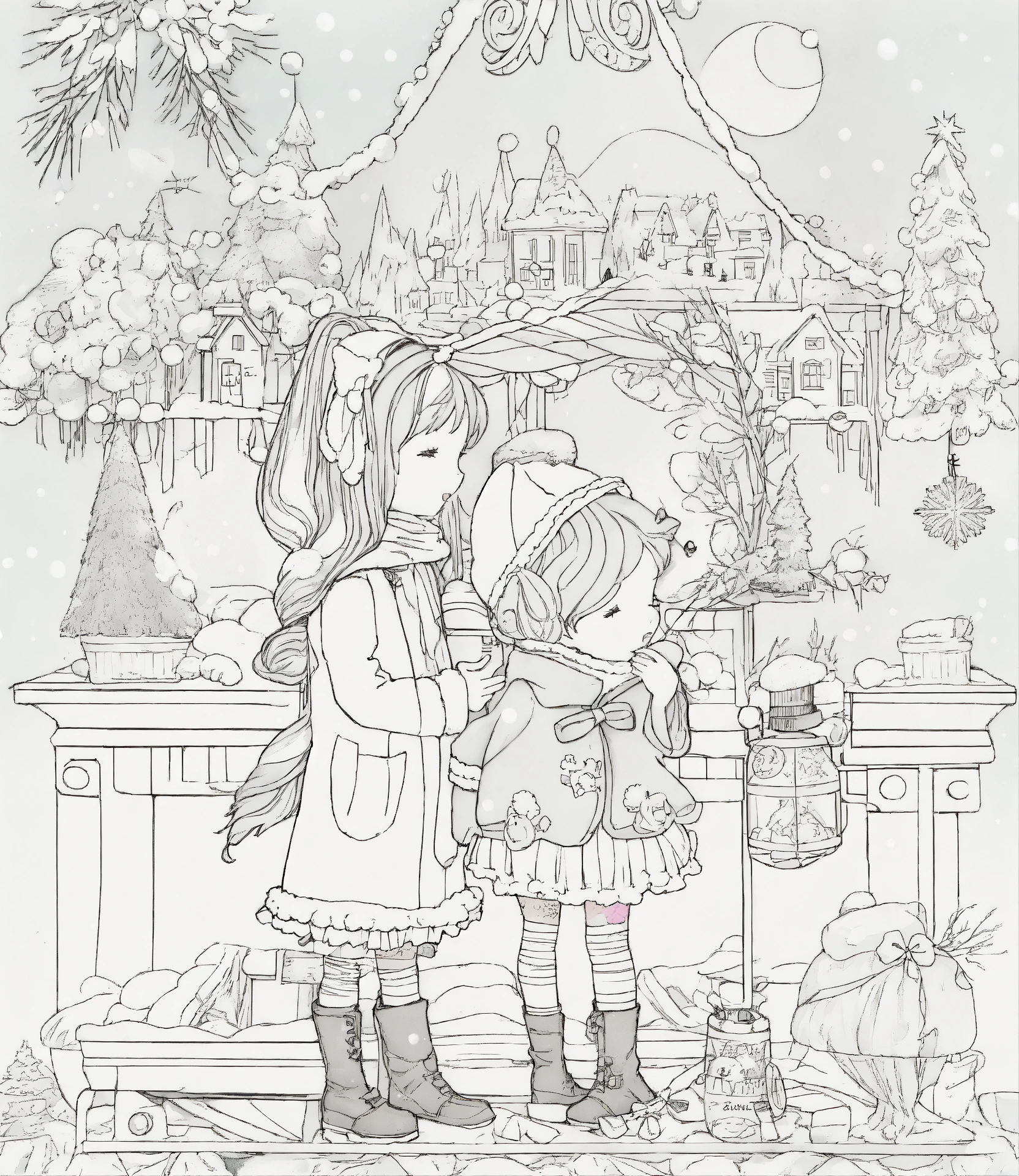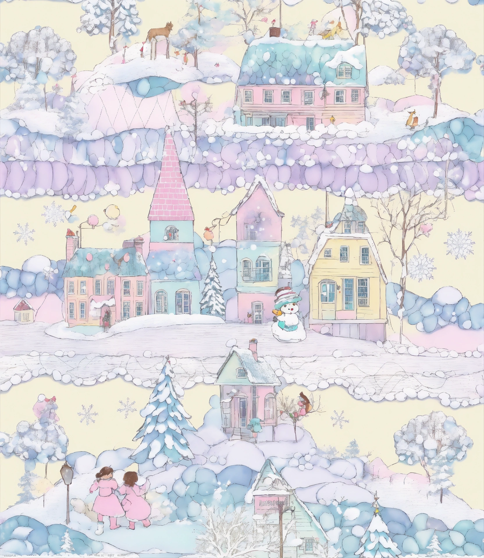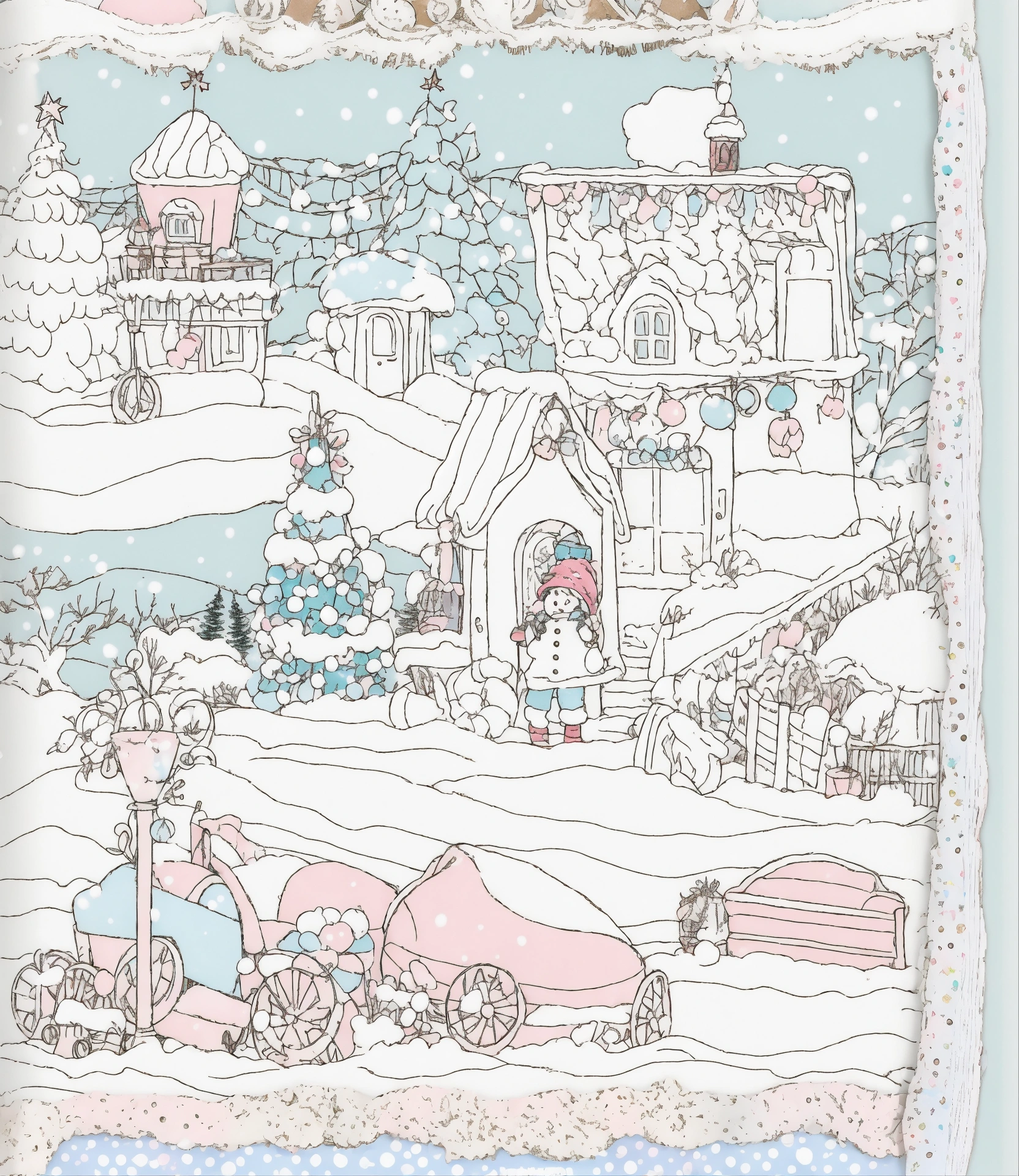 Shabby chic dreamy mist pastel colors junk journal whimsical children at snowy christmas wintertime