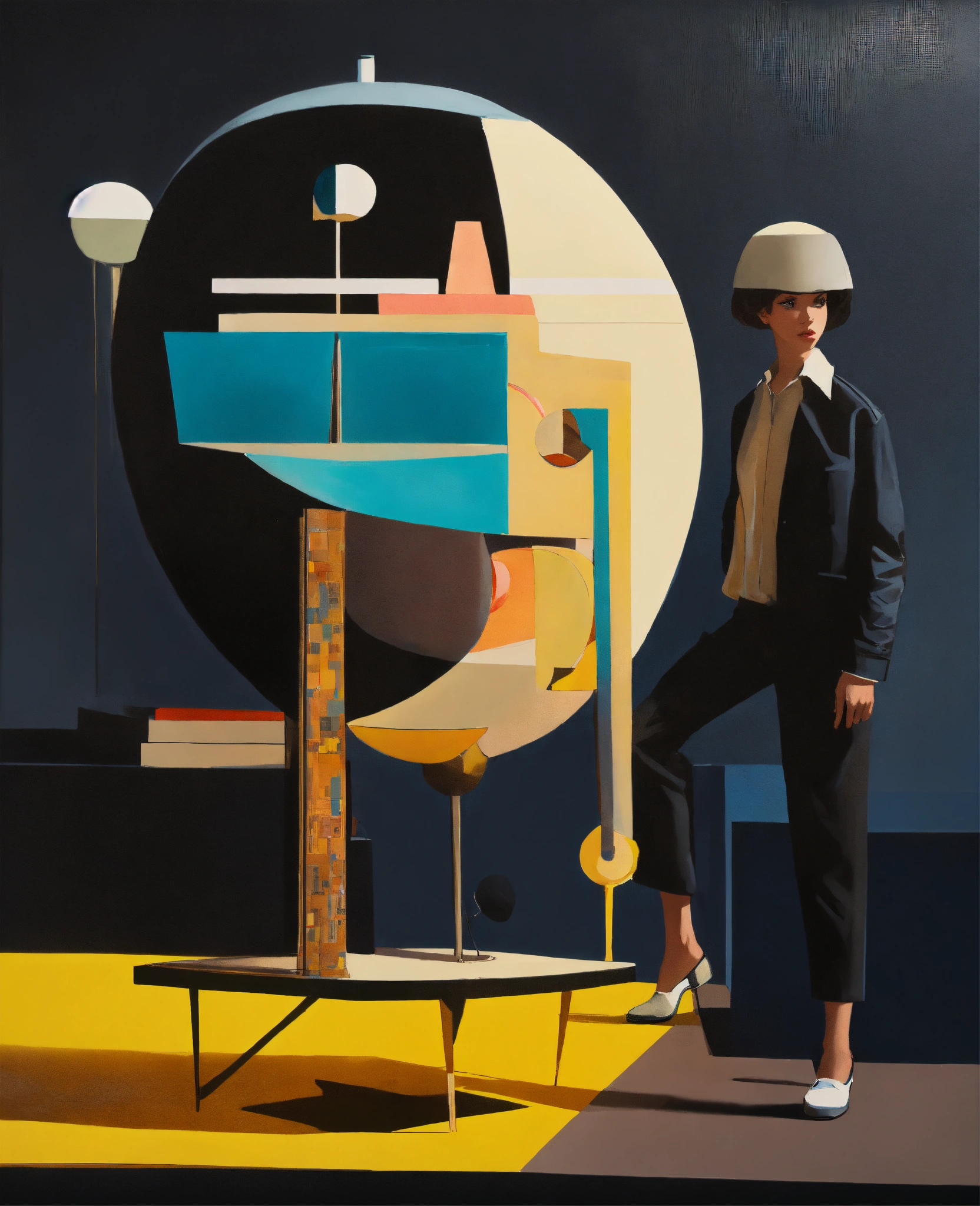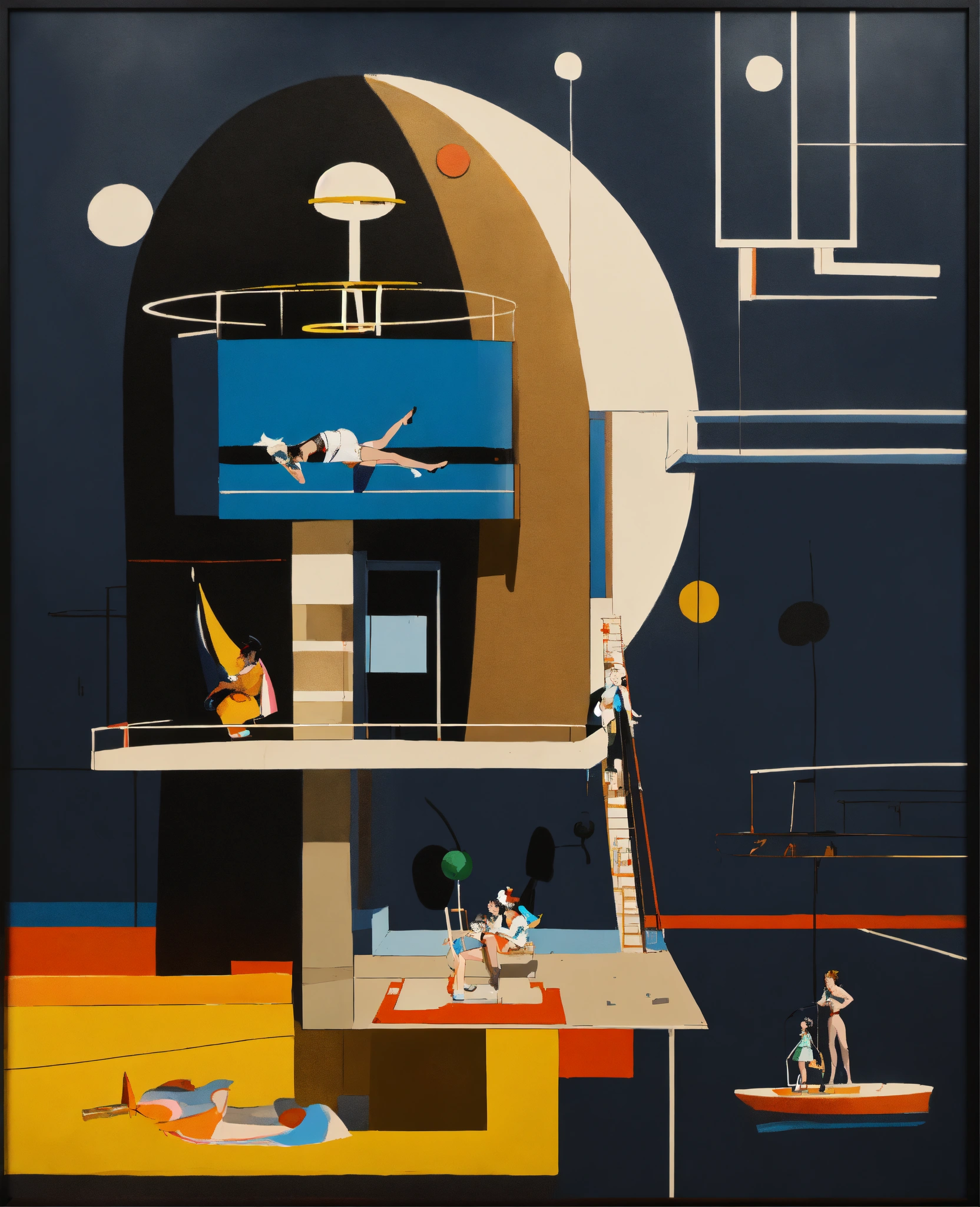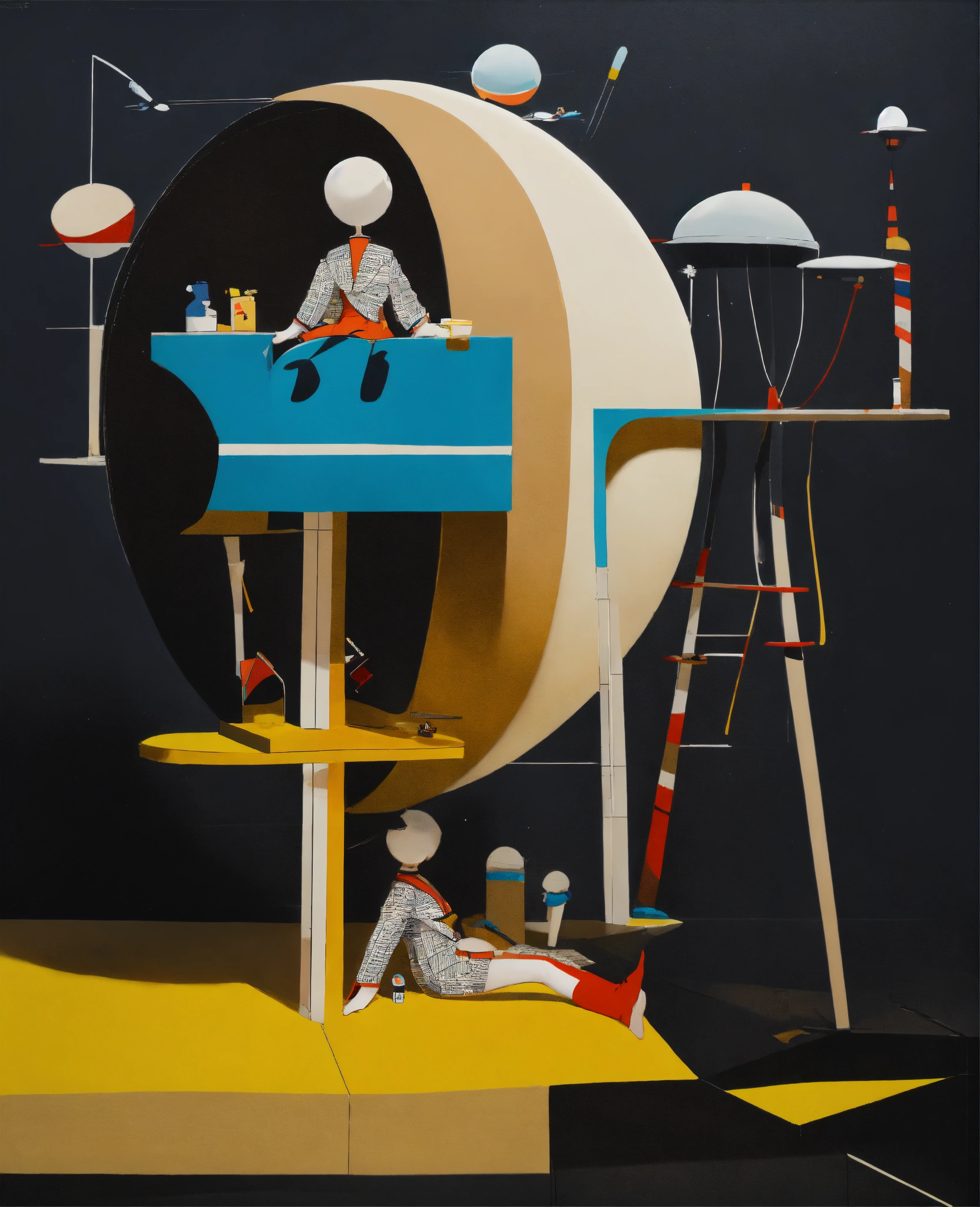 Minimal painting, perspective shift structures, stellated ((cartooned)) fine artwork in frame, canvas lettering|figurine surreal amalgamation of limbs, dynamic dancing flow, drawing masterpiece, illustration of black jetsons, bauhaus boondocks, dream “design rules everything around me” model chola american, pinup, neutral structure and overlap-sheen, cartoon futuristic, (french), twins photo of mixed and matched outfits, minimalism carousel collaged selects, nigo human made, isolated-white-cubic space creole, slate beige black, ink|smoke, surprise highlights, monochrome, sfmoma, hyperspective playboy-funnies