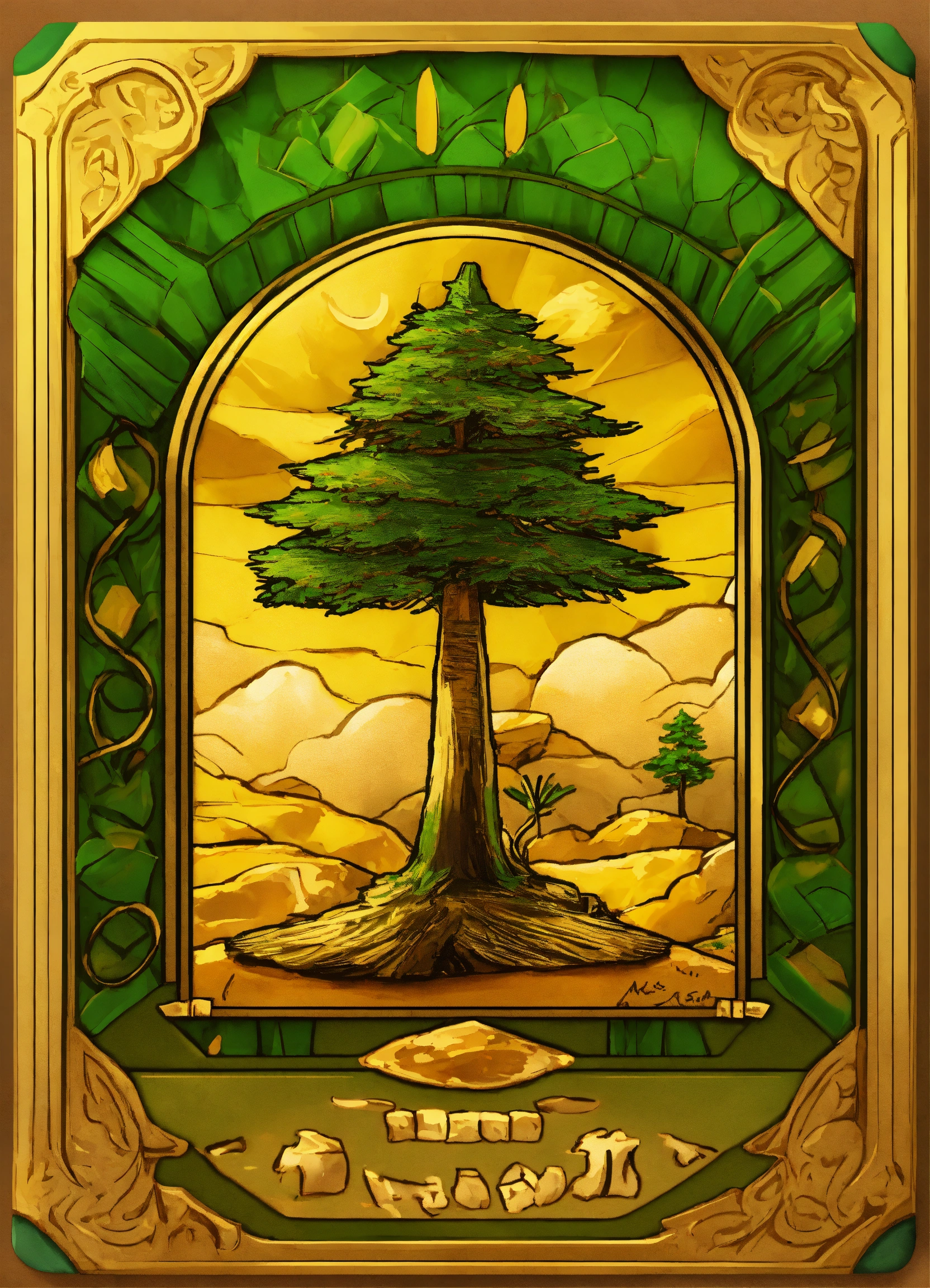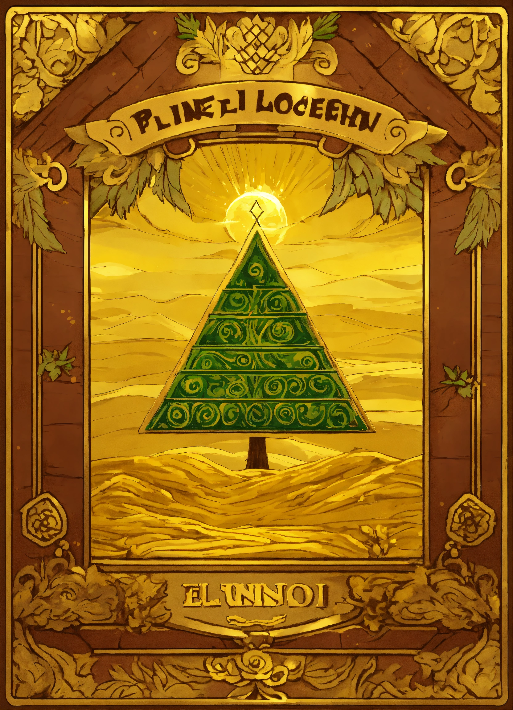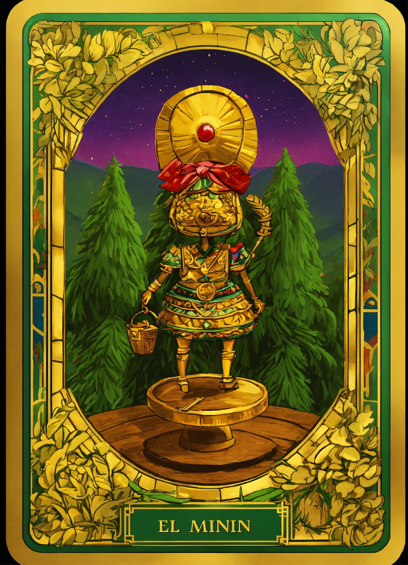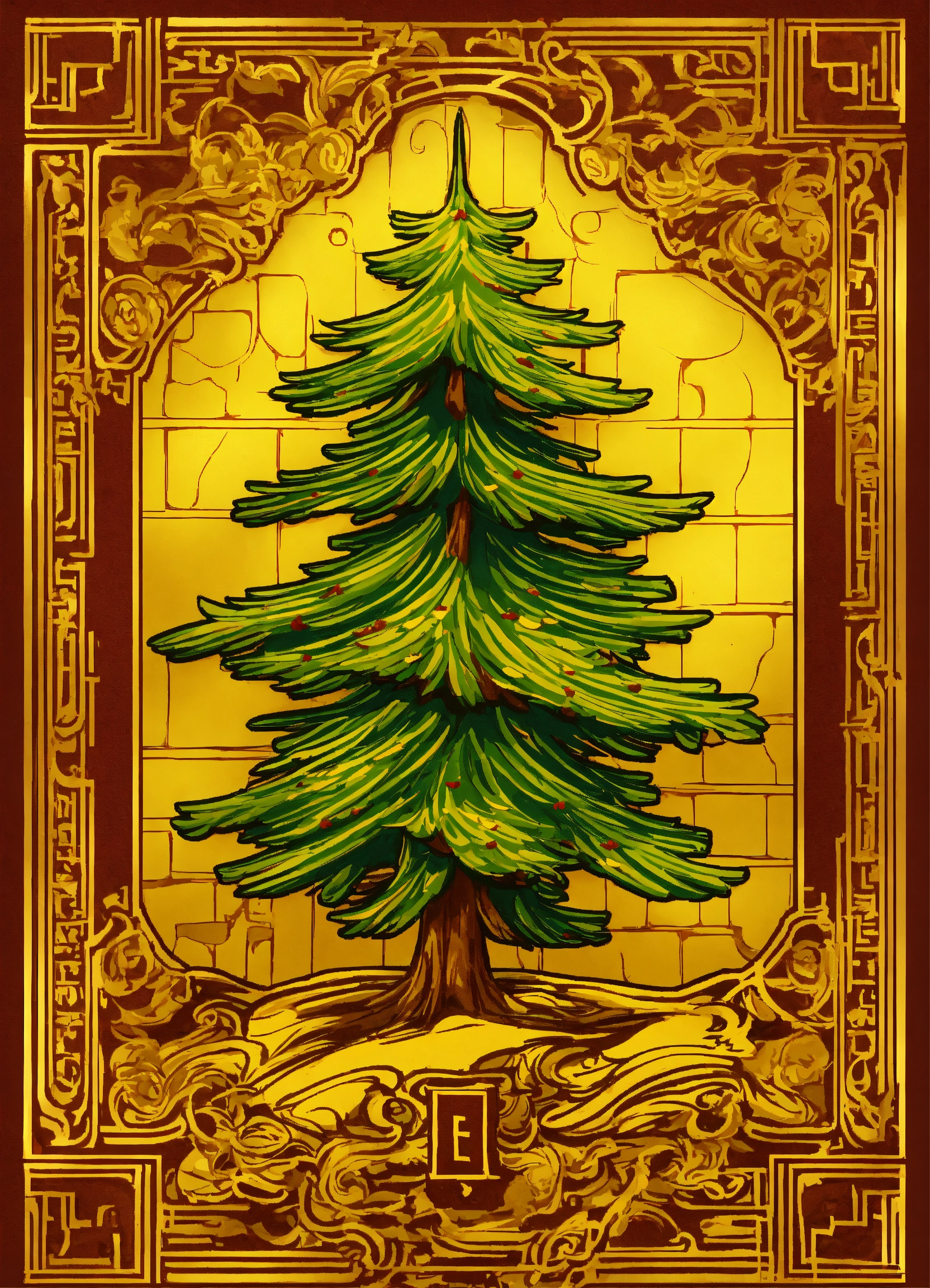 A pine based on the card "el pino" of the mexican lottery deck in anime style, gold background card styled