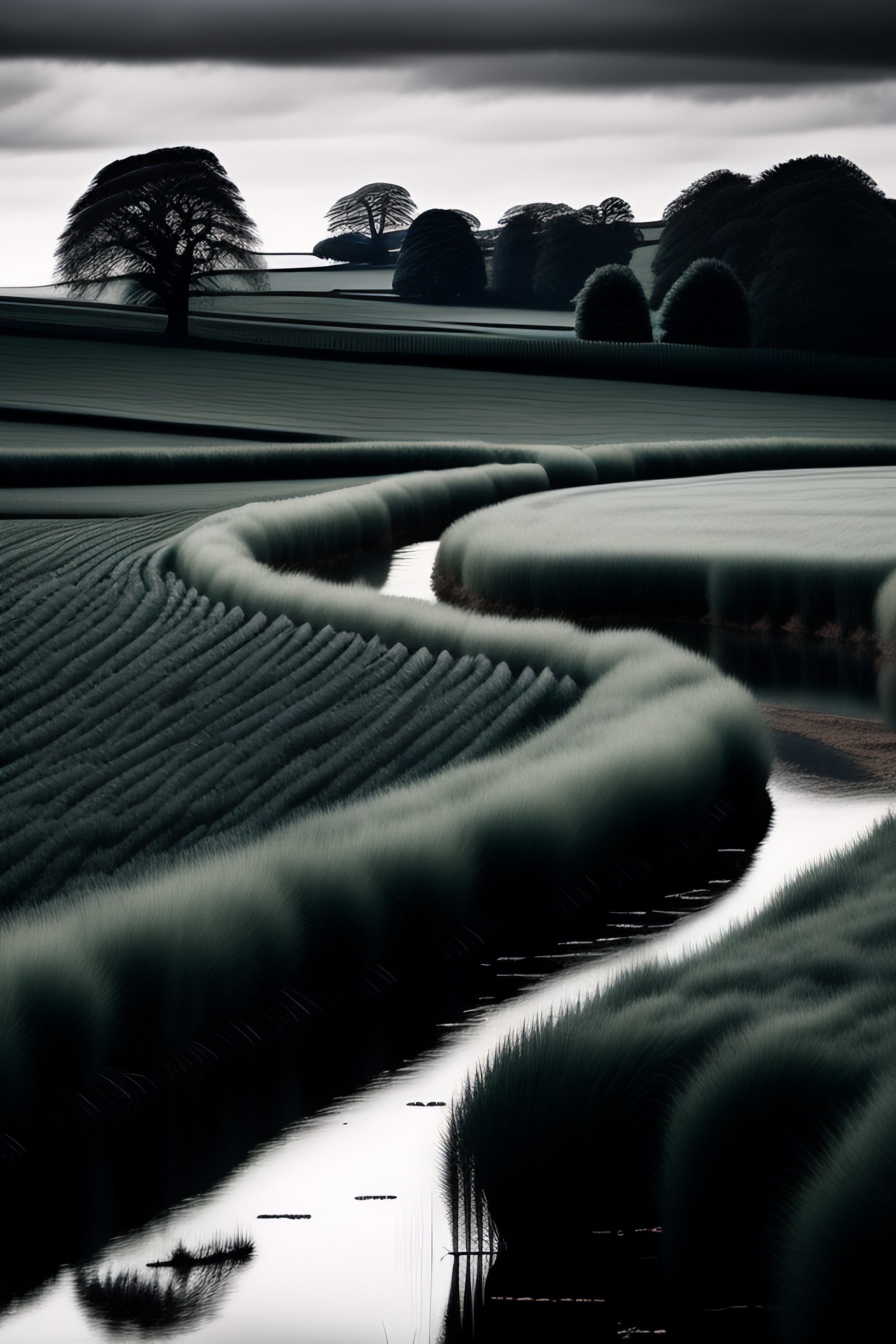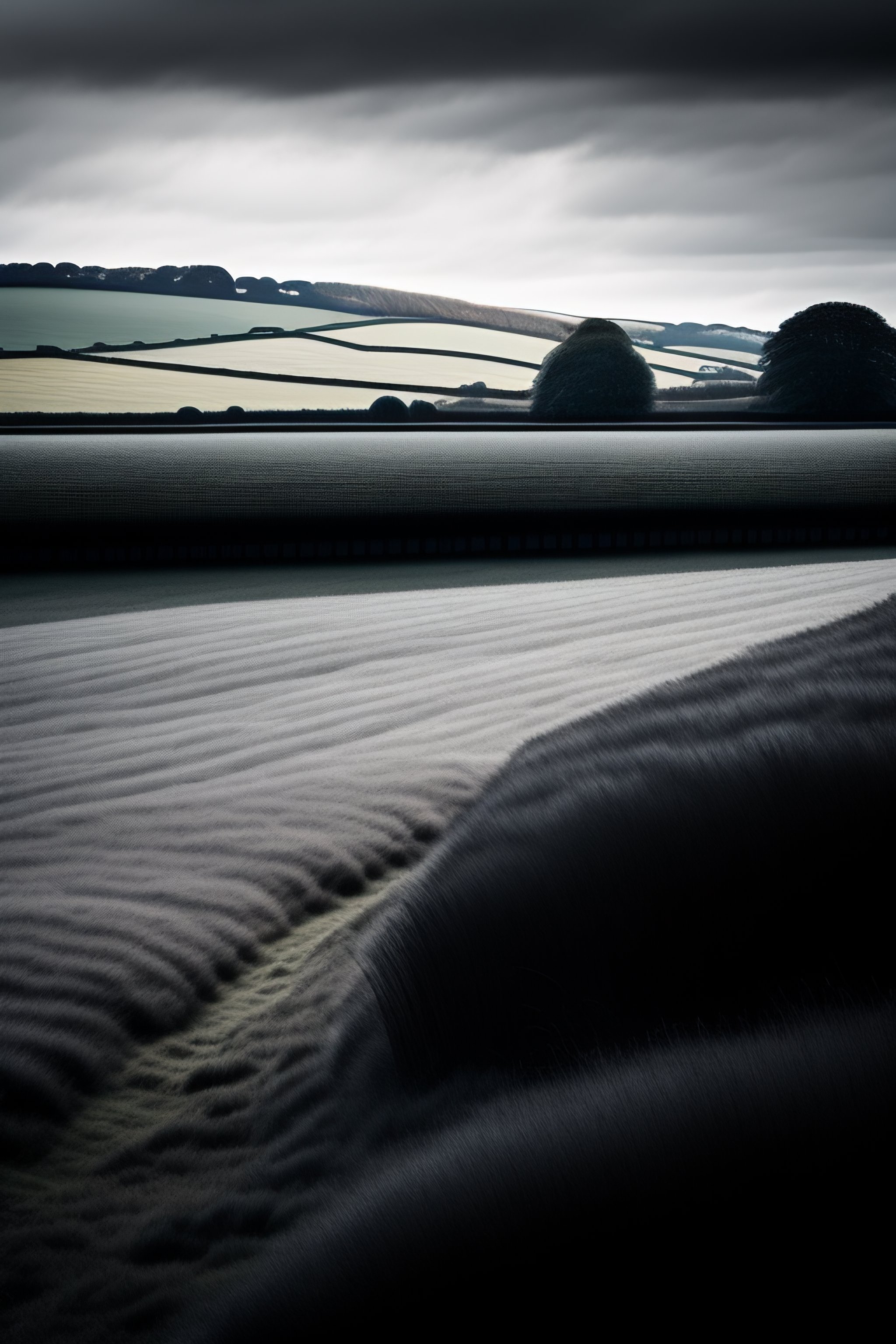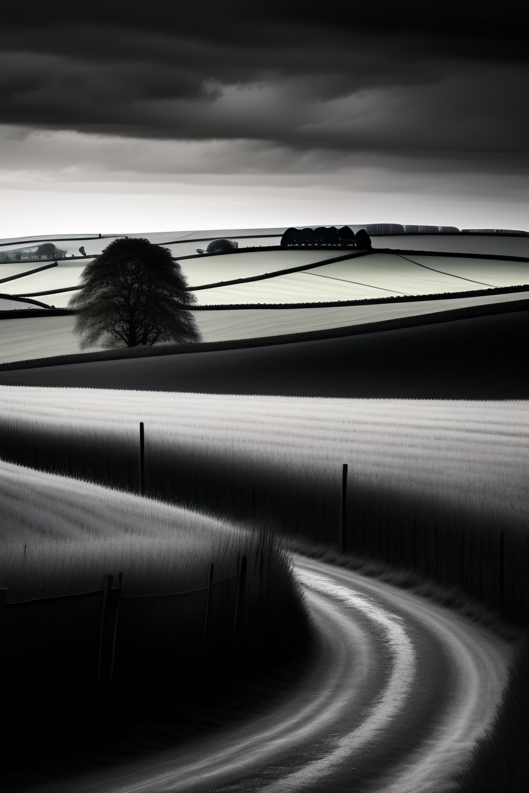 The english countryside in the style of a magnum photographer, black and white, high quality, award winning, gallery